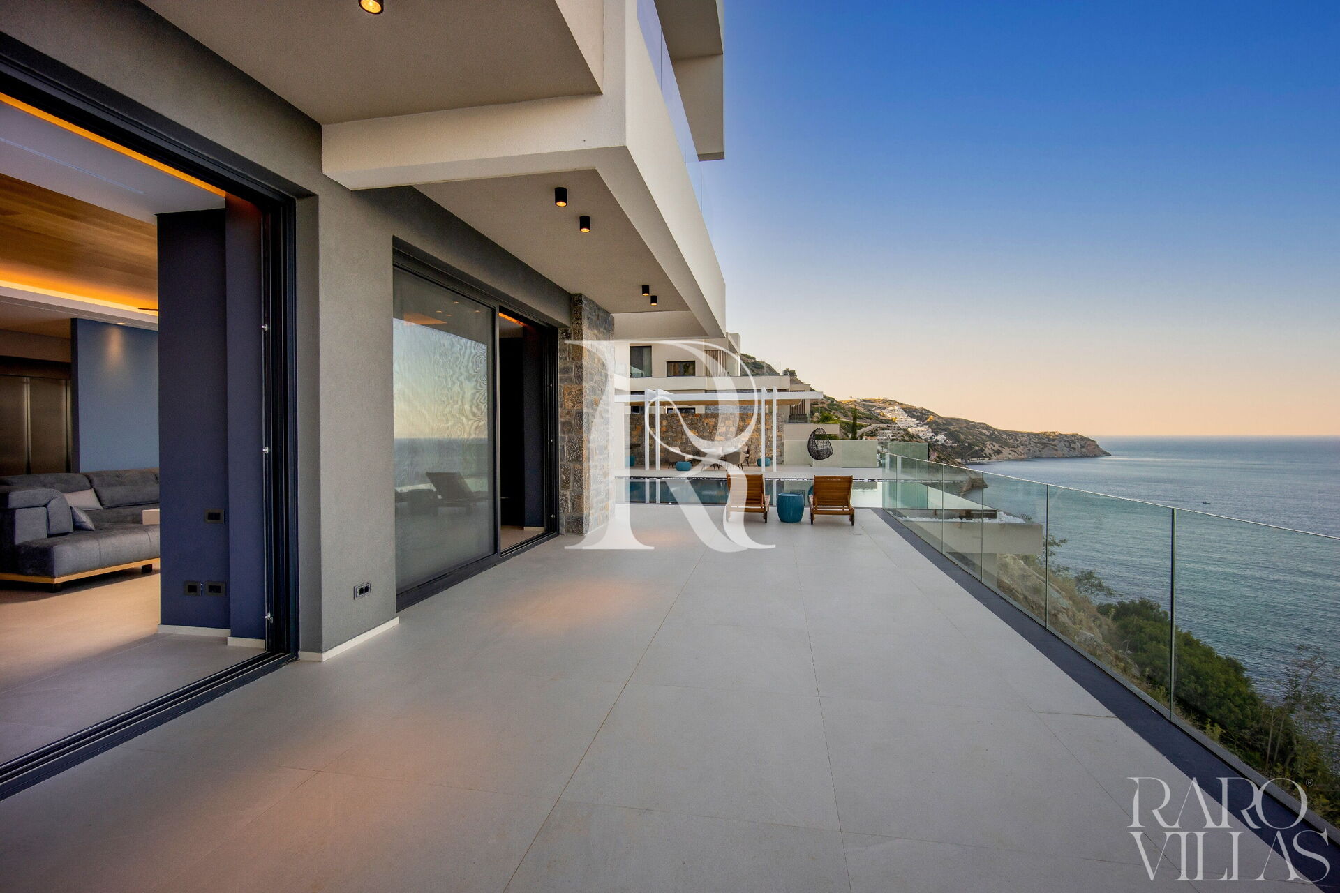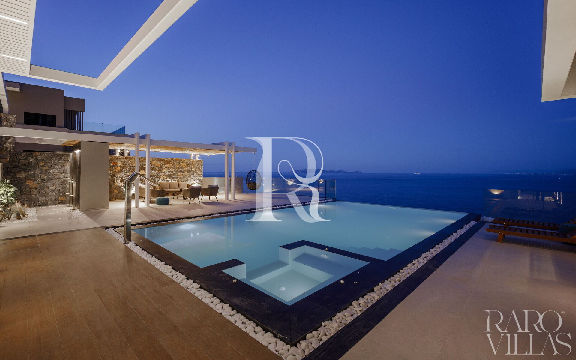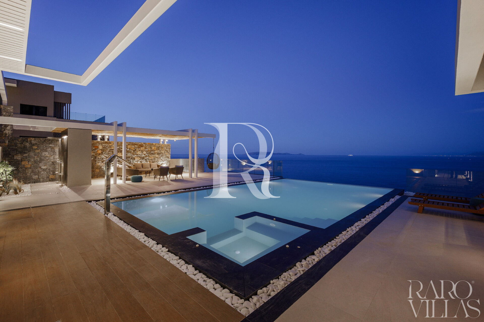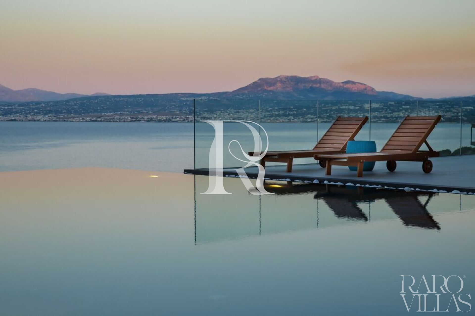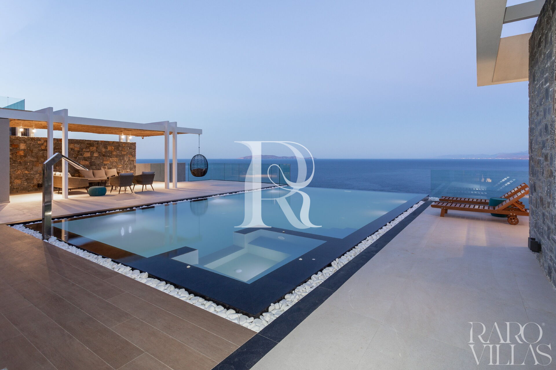 Nereid Villa, fully private, luxury 6- bedroom villa with an outdoor infinity pool, SPA & waterfall and a panoramic sea view overlooking the Cretan Sea with its fantastic sunsets.