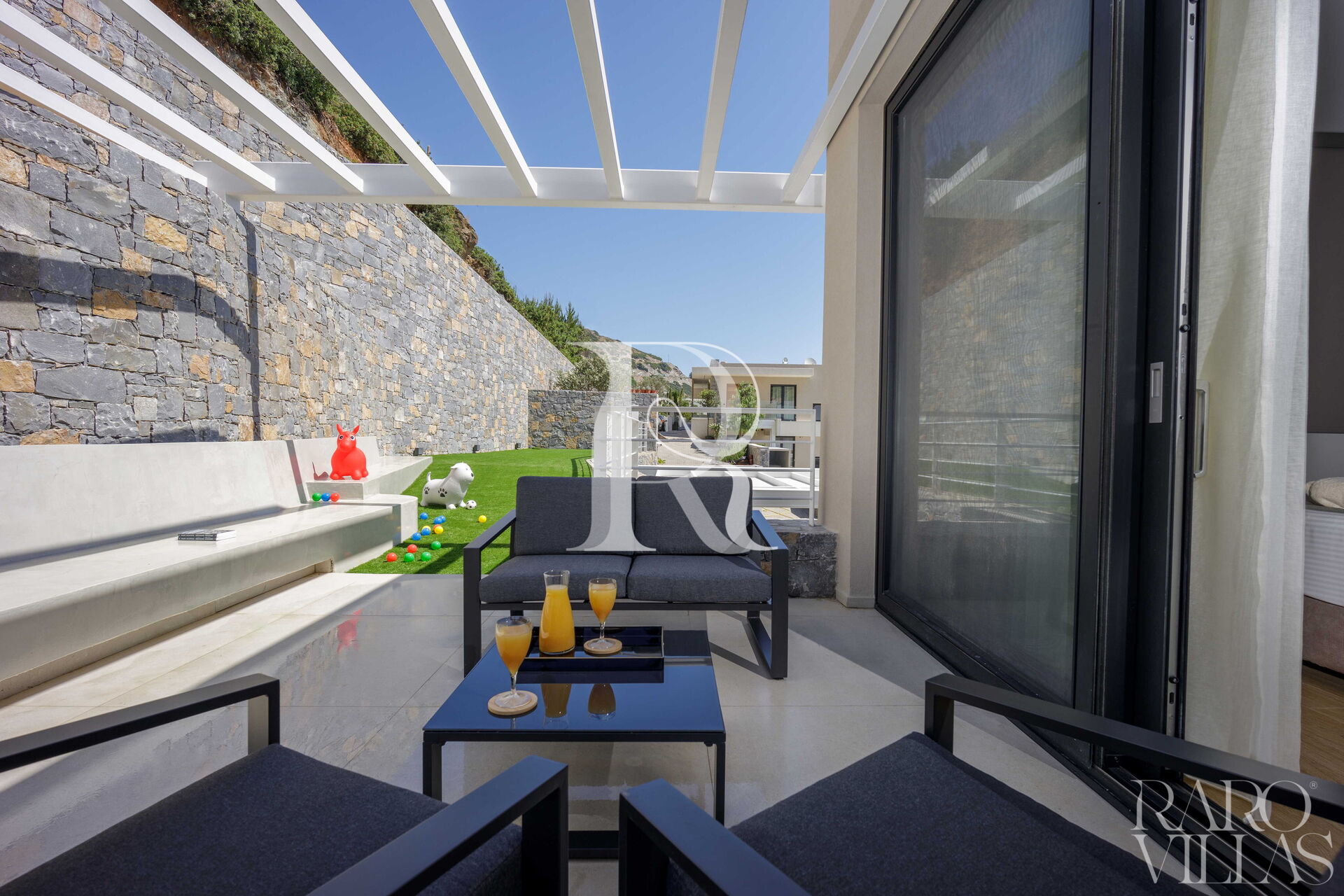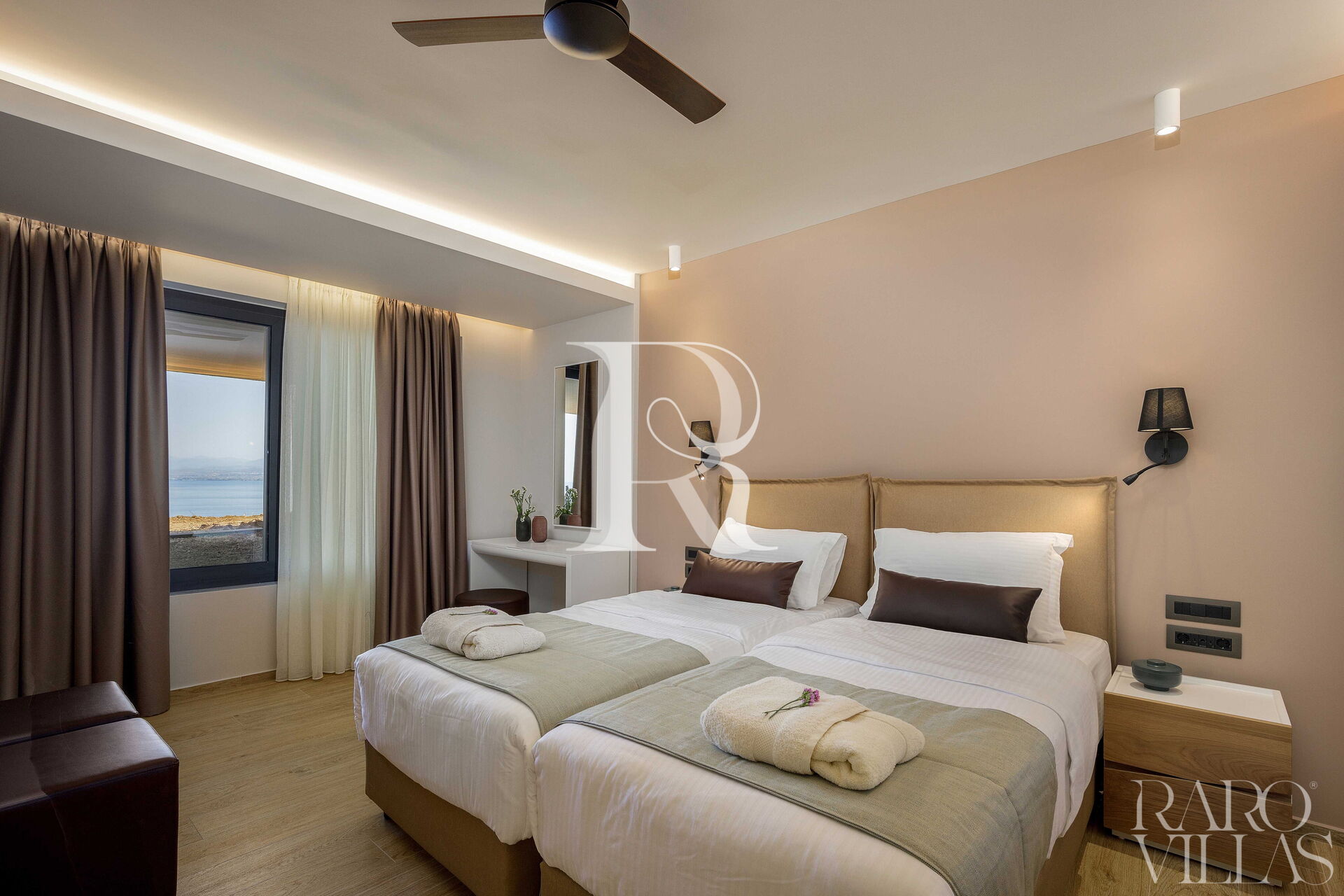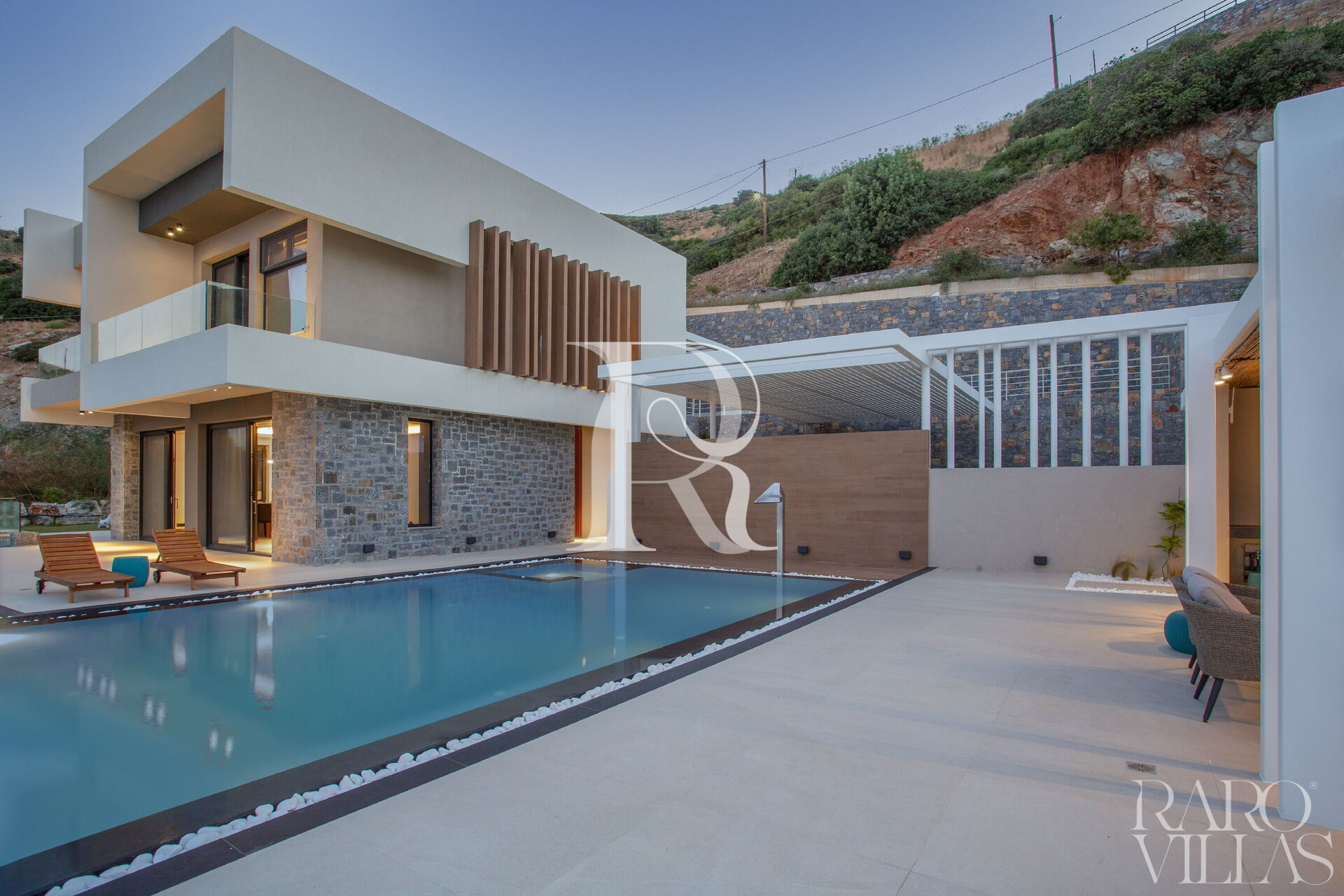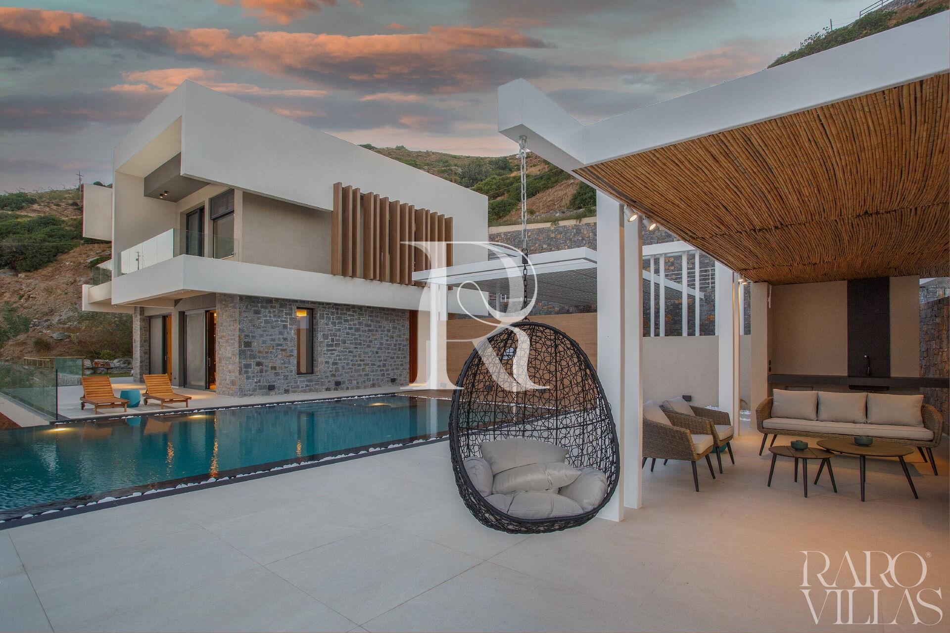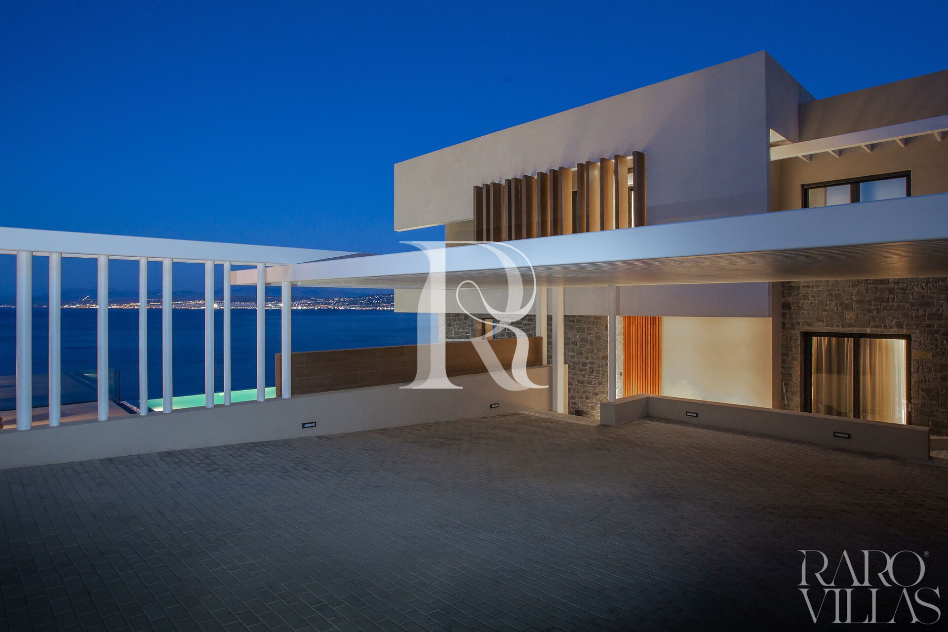 Nereid Villa, fully private, luxury 6- bedroom villa with an outdoor infinity pool, SPA & waterfall and a panoramic sea view overlooking the Cretan Sea with its fantastic sunsets.