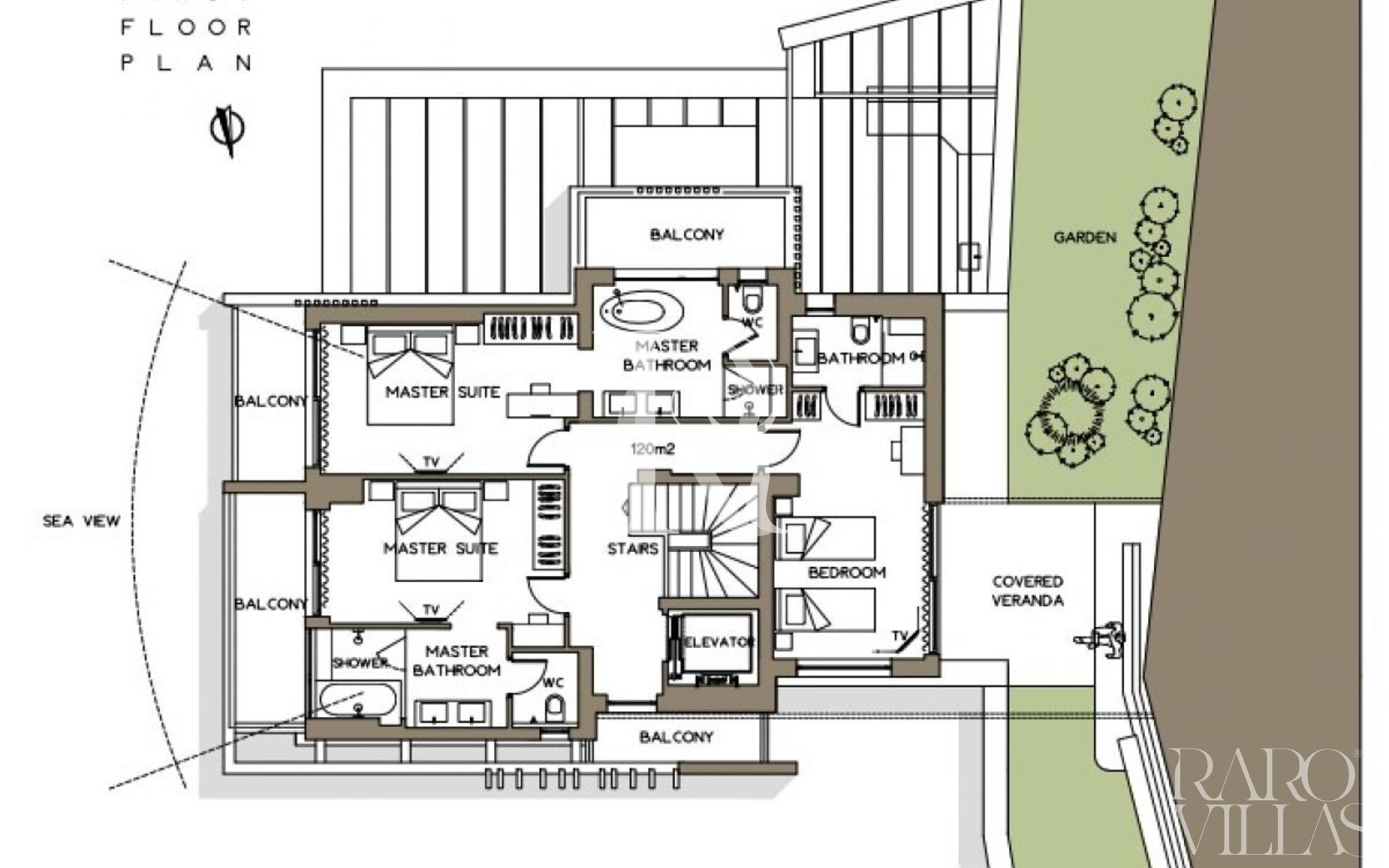 The first floor features 2 Master Bedrooms and 1 Standard Bedroom with large veranda, garden and space for a children playground.