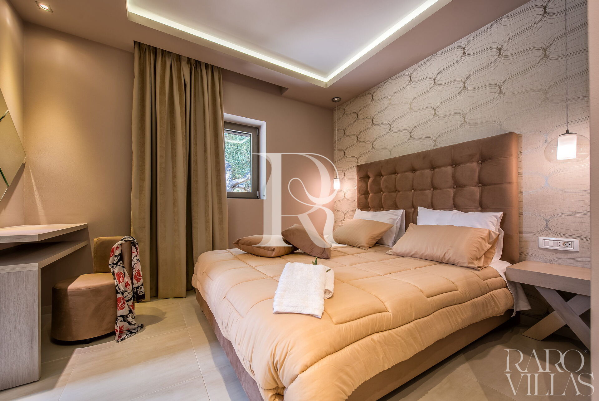 Villa Zacinto is a luxury villa for rent in Zakynthos (Greece). The newly built villa can accommodate up to 8 people and consists of 3 bedrooms with 2 en-suite bathrooms, a well-equipped kitchen opening onto the large and bright living room and a bathroom.