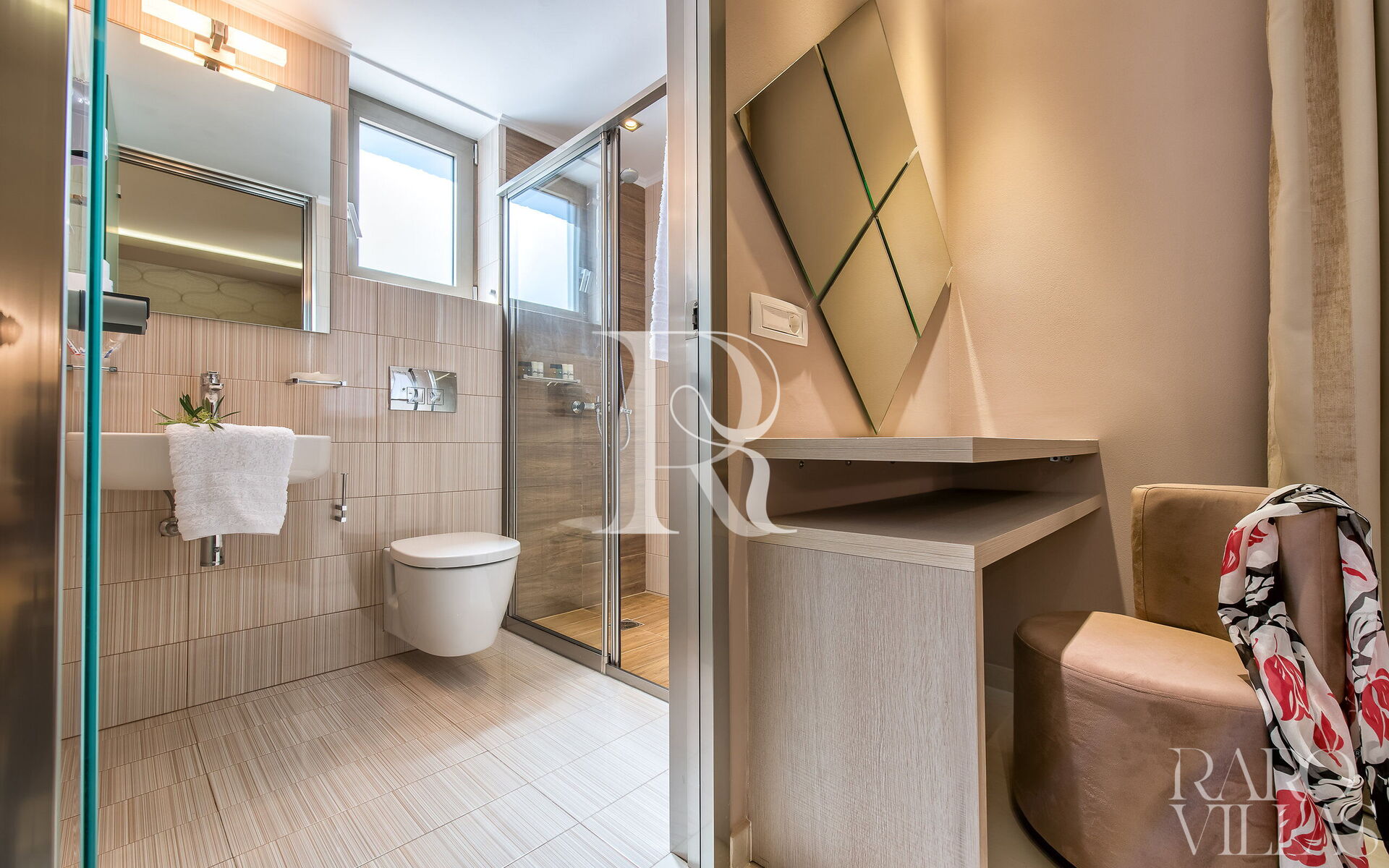 There is also a third, shared, larger bathroom in the living area.