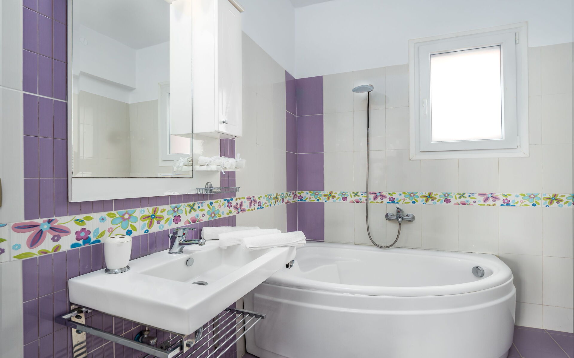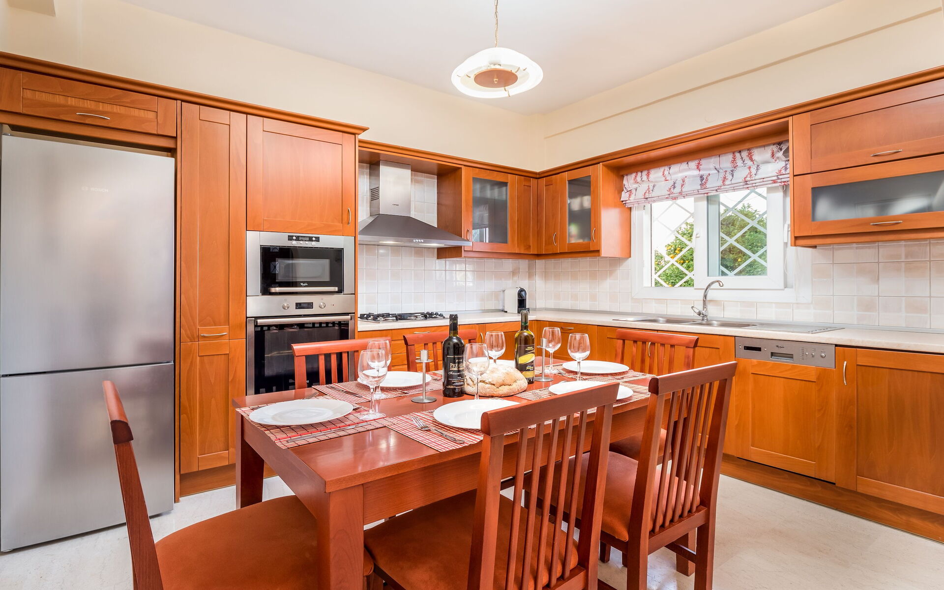 Ground floor: spacious lounge with dining area (satellite TV, DVD player), fully equipped kitchen (oven, microwave, 4 cooking rings, fridge/freezer, dishwasher, dining table), bathroom with bathtub.