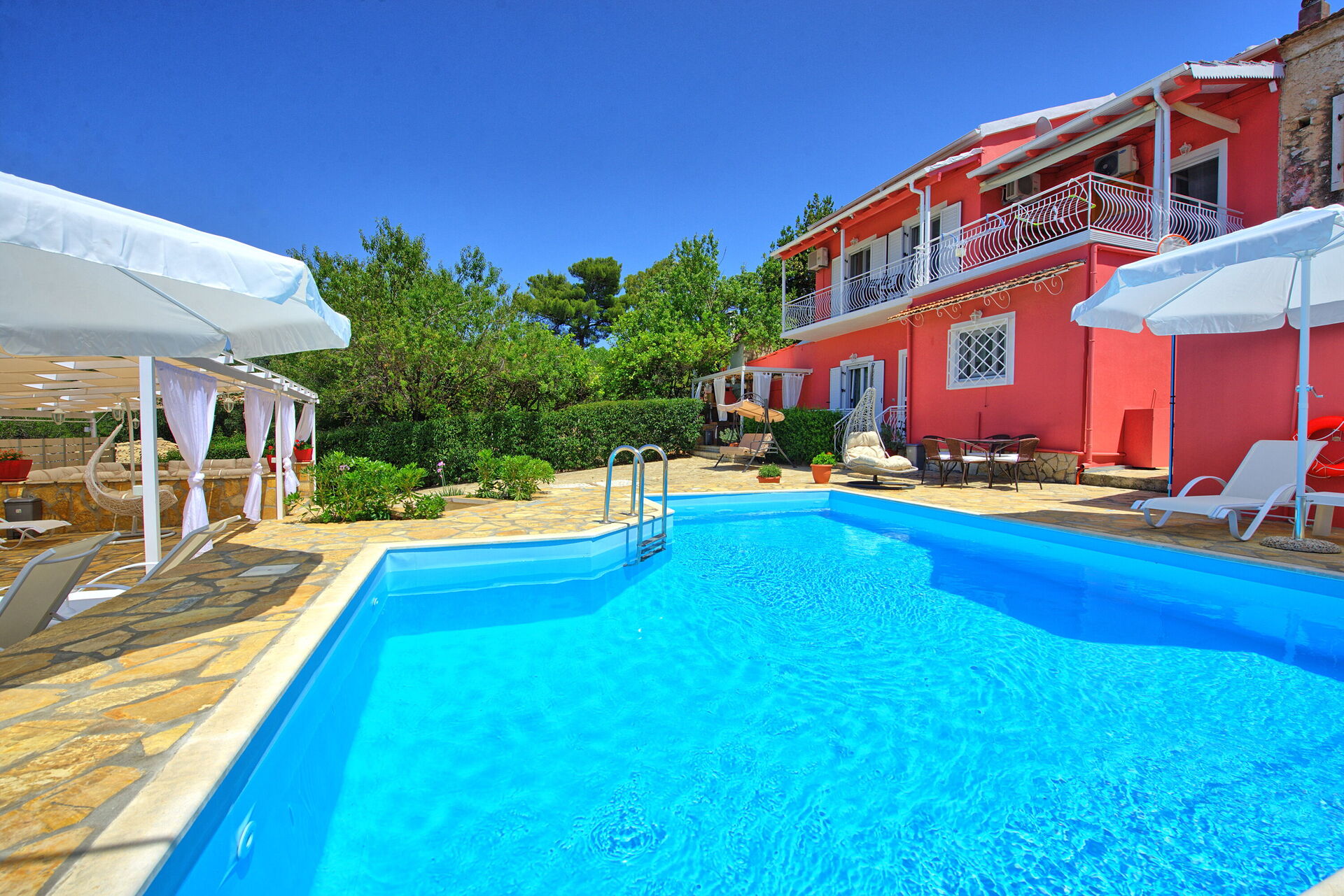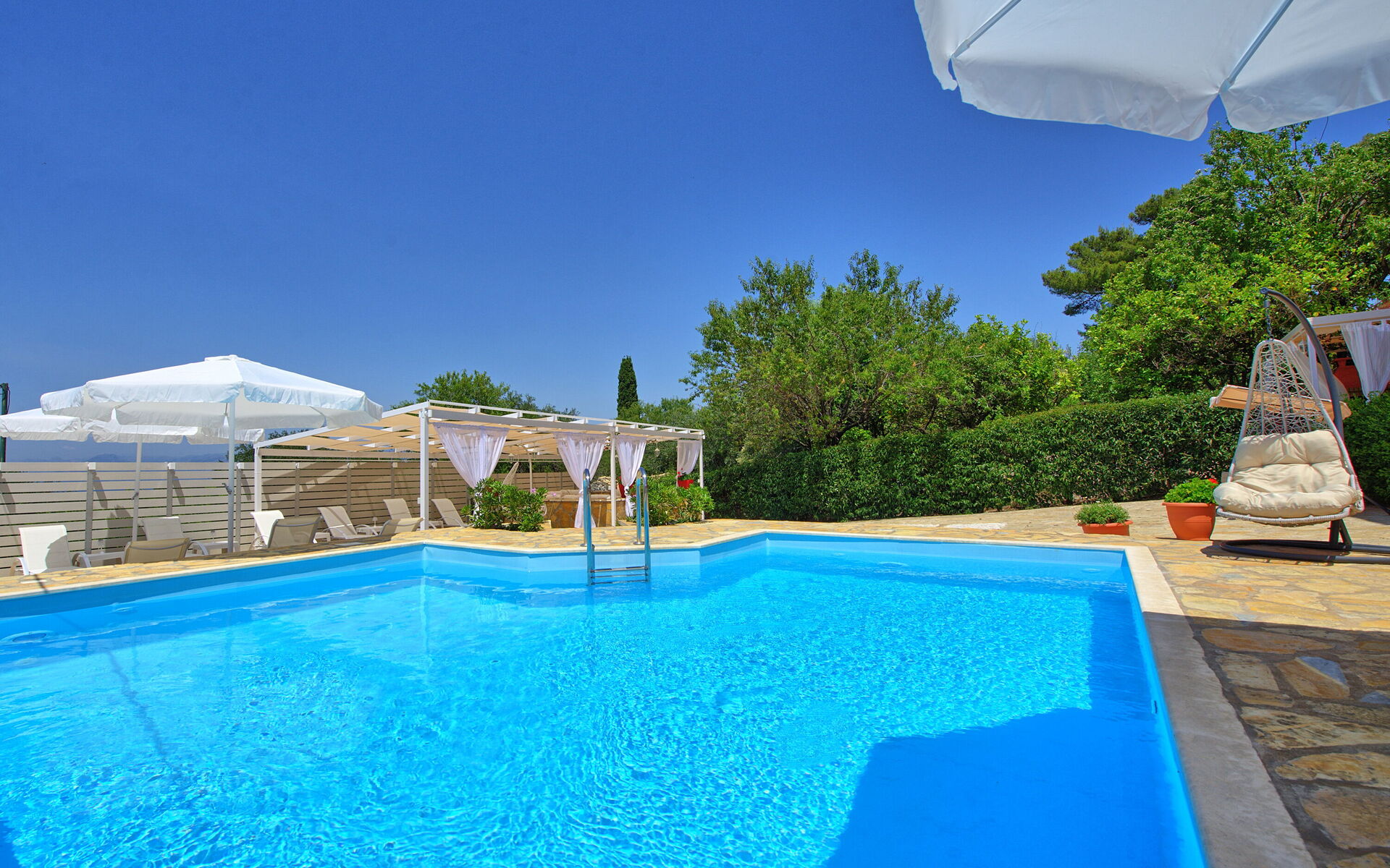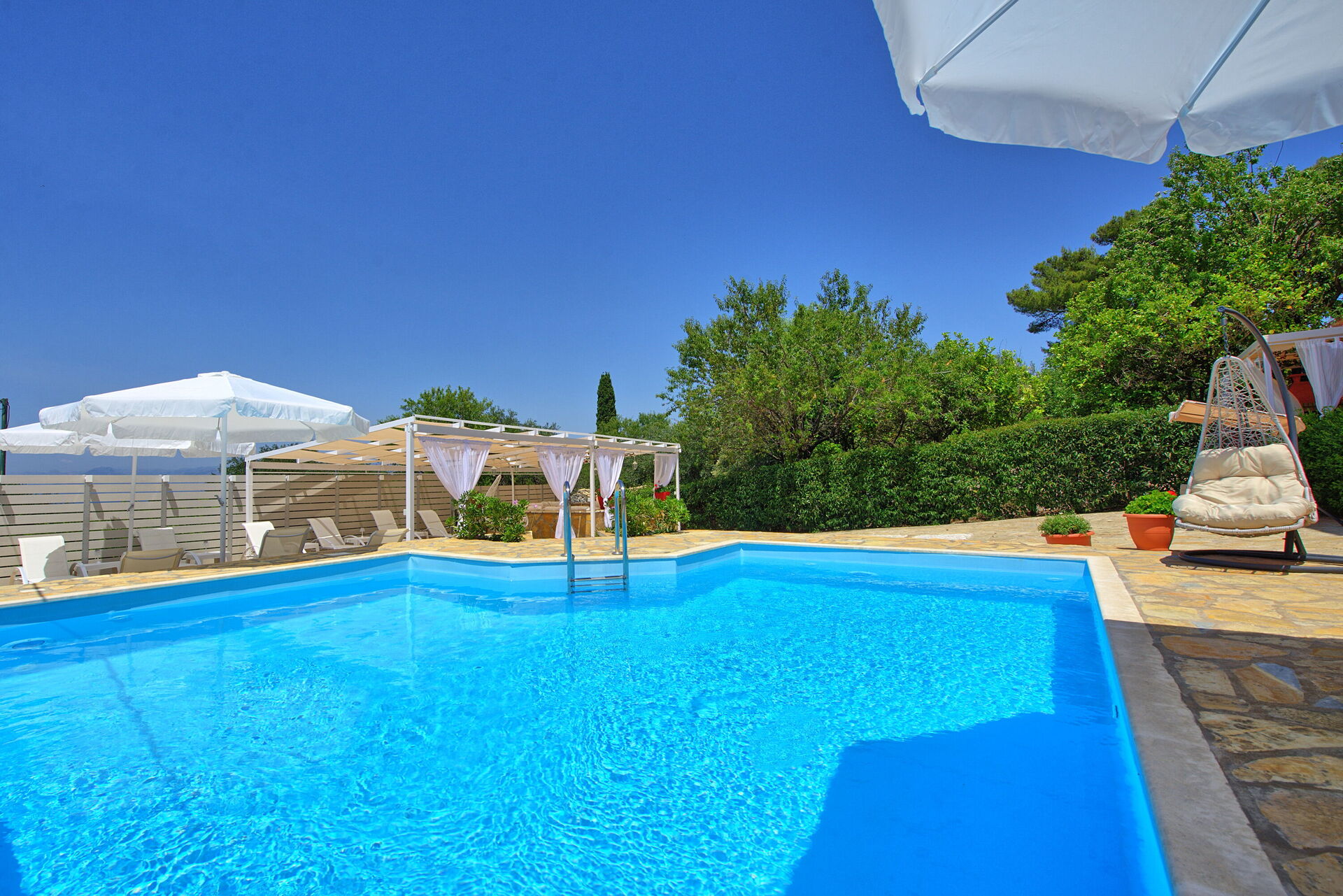 A brand new private swimming pool has been added in the 2020 to further improve the value and the quality of Villa Giador. The private pool measures 7m x 4m and depth is 1.5m. Sunbeds and parasols are provided for the guests.
