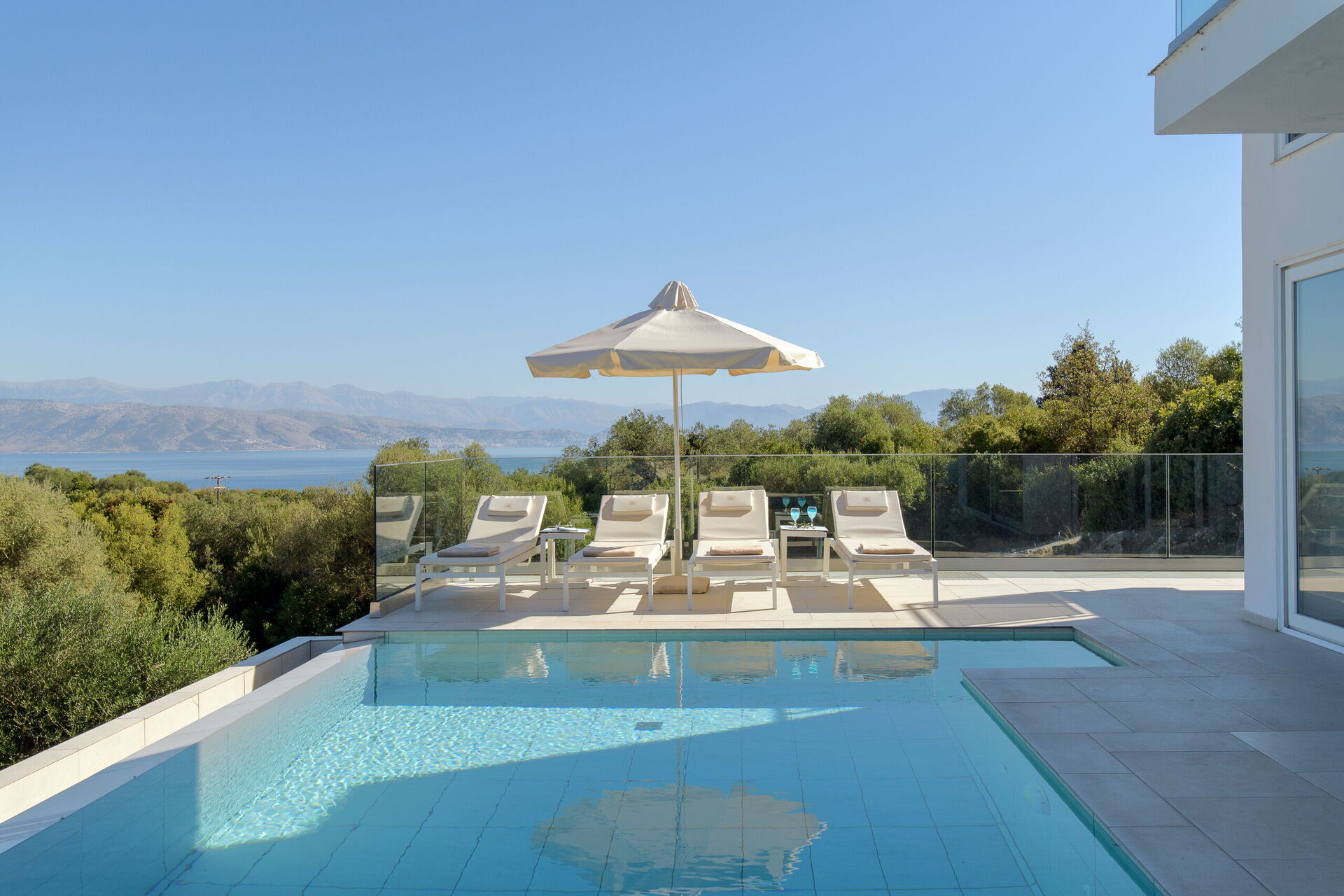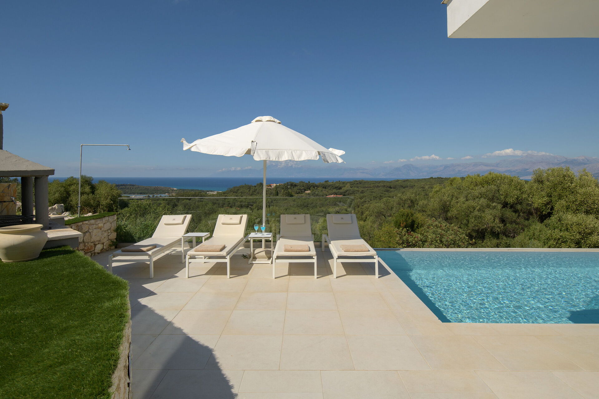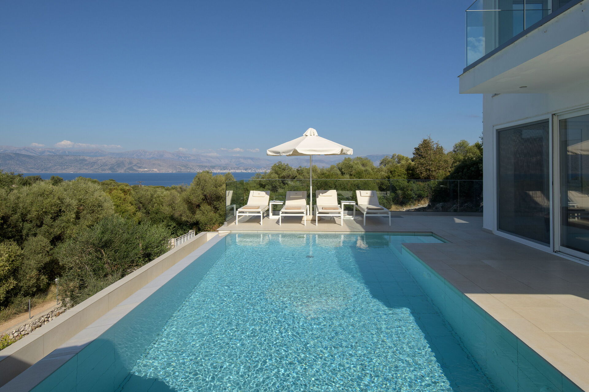 Villa Nafsika is a modern property occupying a privileged location in the area of Perithia, on the sought after North-East coast of Corfu. Part of the exclusive “Perithia View” estate, this villa has been finished to the highest standard to offer a superior holiday experience to the most demanding guests. With 4 bedrooms, 4 bathrooms, extensive lounges and patios as well as private pool, this villa ticks all the boxes. The elevated position (yet very close to amazing beaches) with 180 degrees panoramic views, offers the most amazing gift of the nature: the chance to admire, from the same property, both sunrise and sunset. In Villa Nafsika, every moment will be an experience to live and remember!