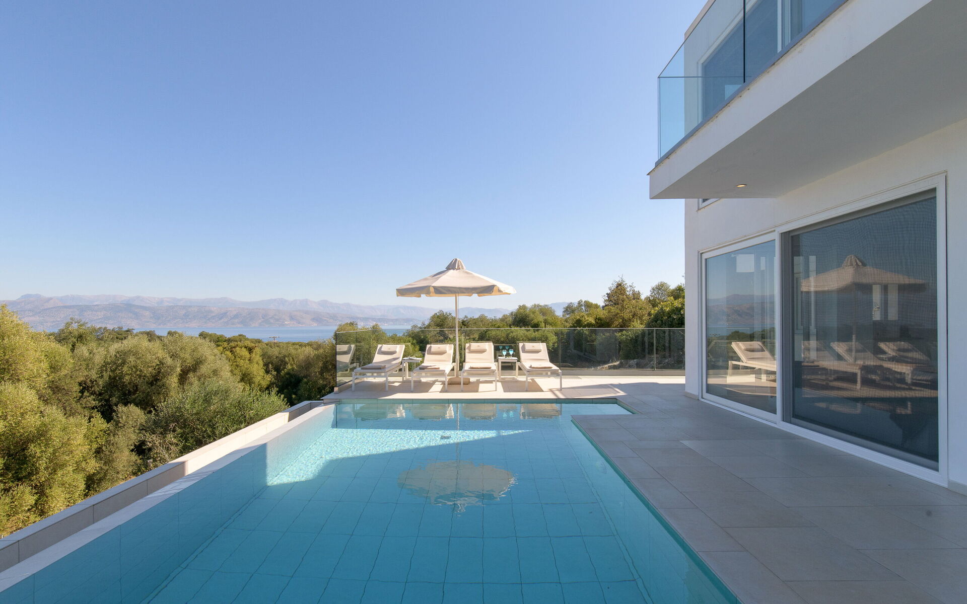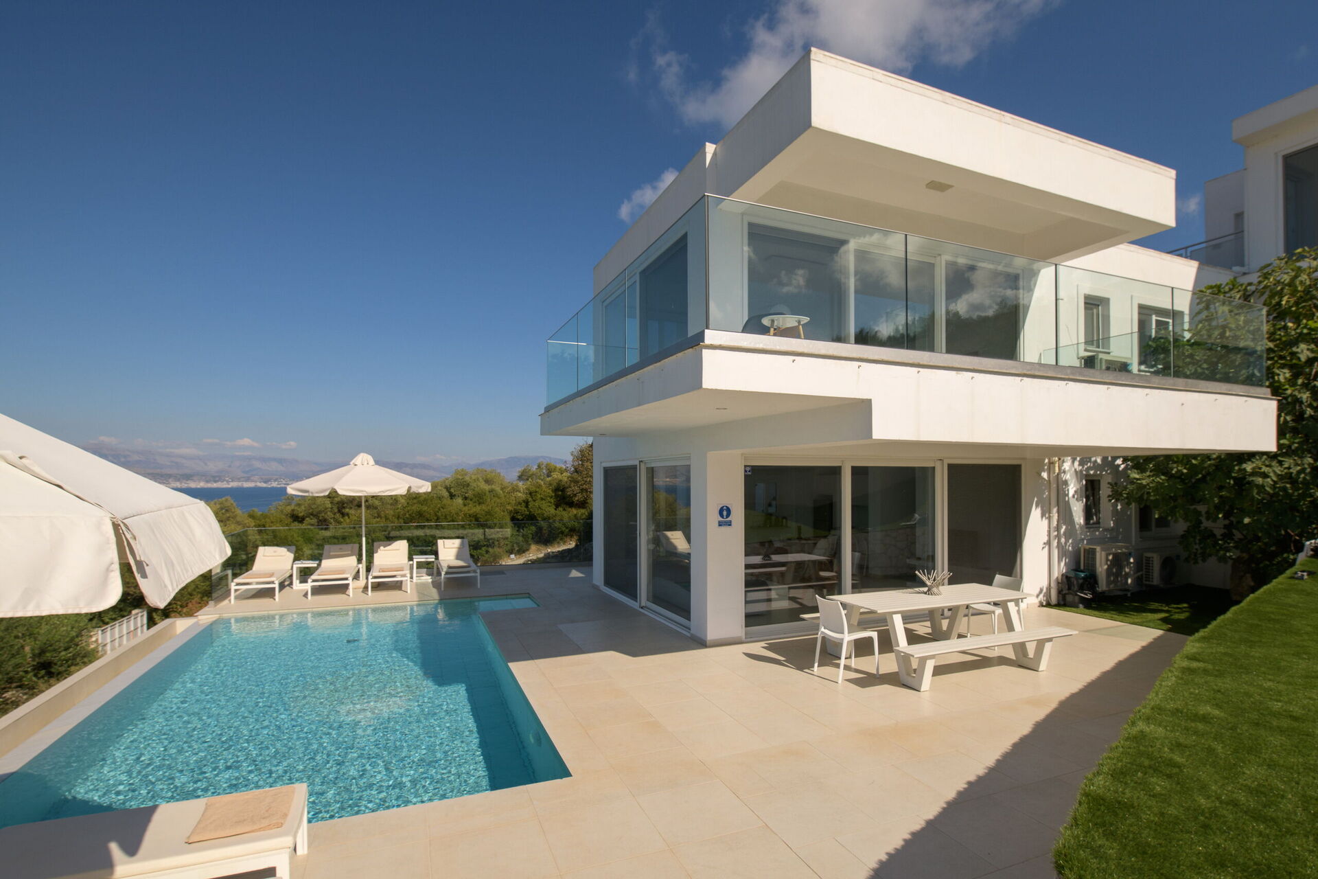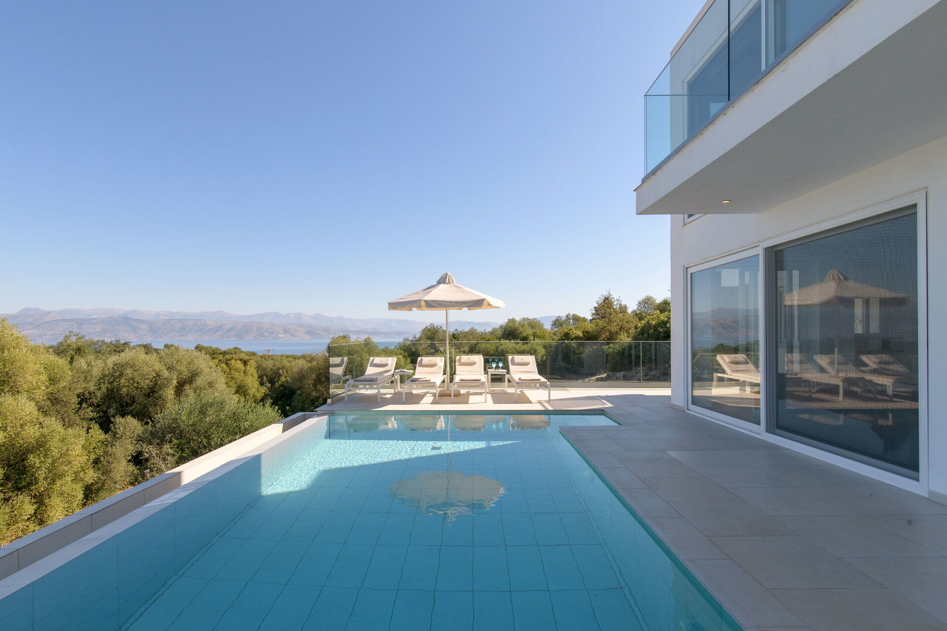 Villa Nafsika is a modern property occupying a privileged location in the area of Perithia, on the sought after North-East coast of Corfu. Part of the exclusive “Perithia View” estate, this villa has been finished to the highest standard to offer a superior holiday experience to the most demanding guests. With 4 bedrooms, 4 bathrooms, extensive lounges and patios as well as private pool, this villa ticks all the boxes. The elevated position (yet very close to amazing beaches) with 180 degrees panoramic views, offers the most amazing gift of the nature: the chance to admire, from the same property, both sunrise and sunset. In Villa Nafsika, every moment will be an experience to live and remember!