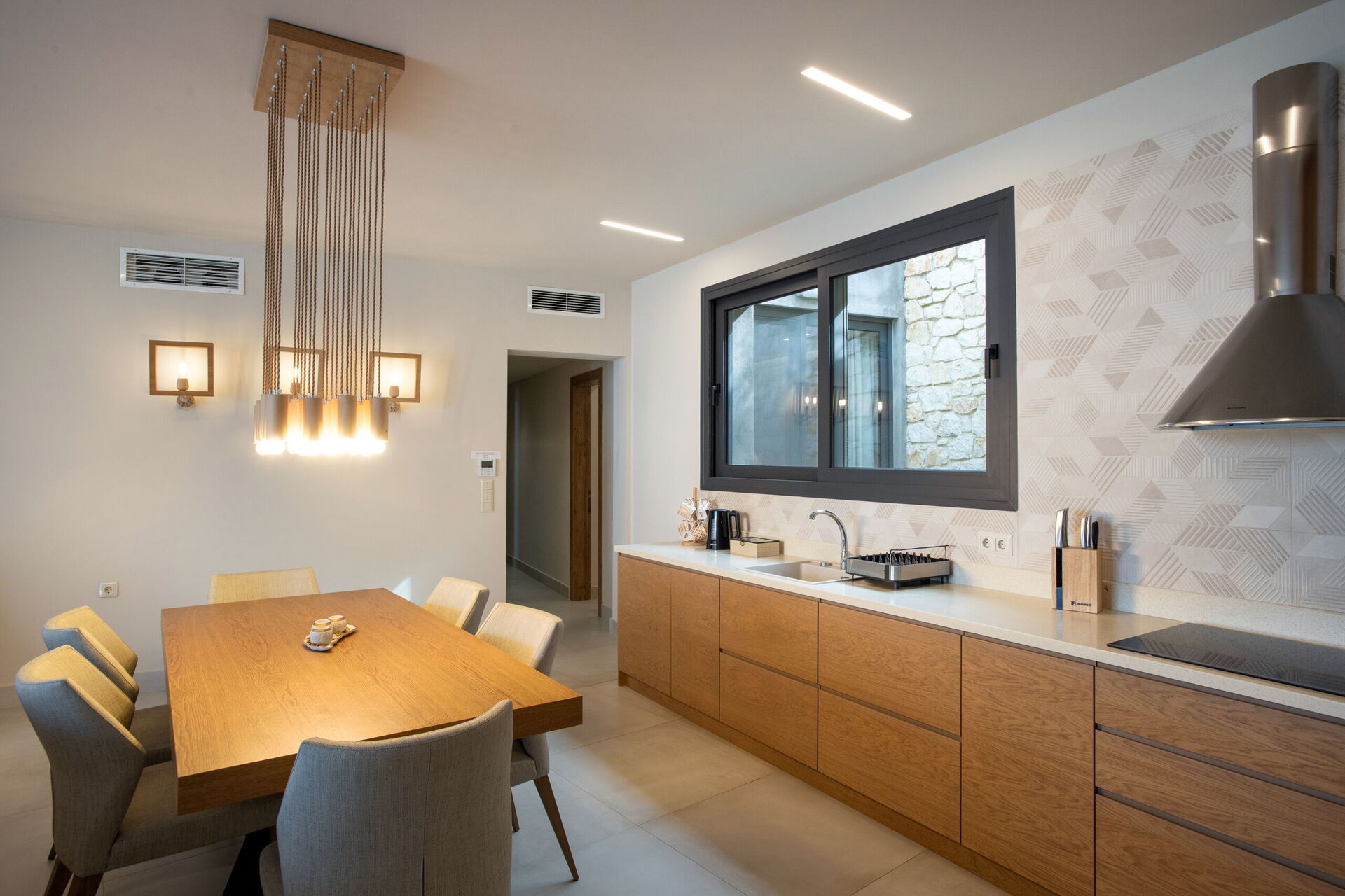 The villa offers all modern amenities and features a unique, modern design.
