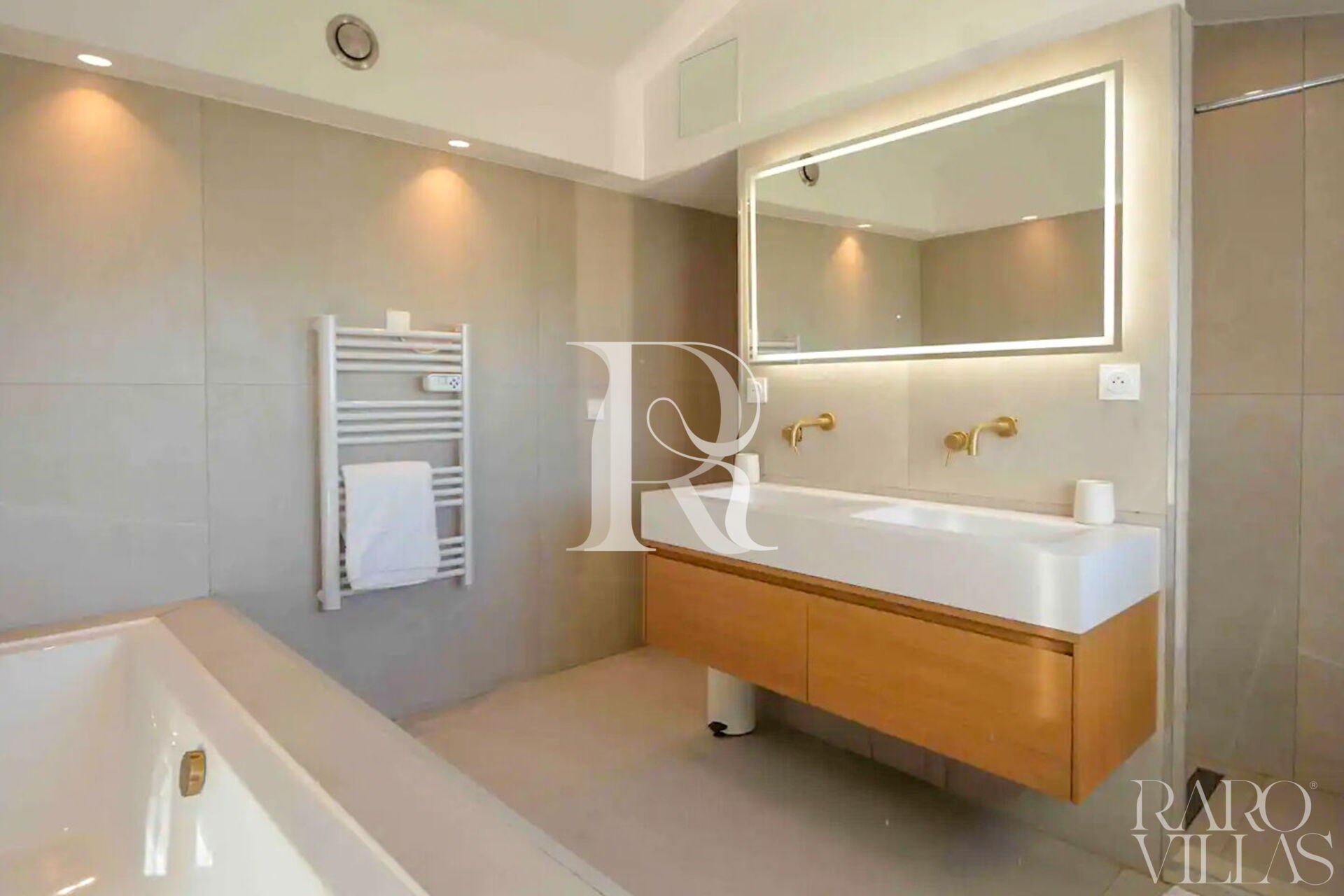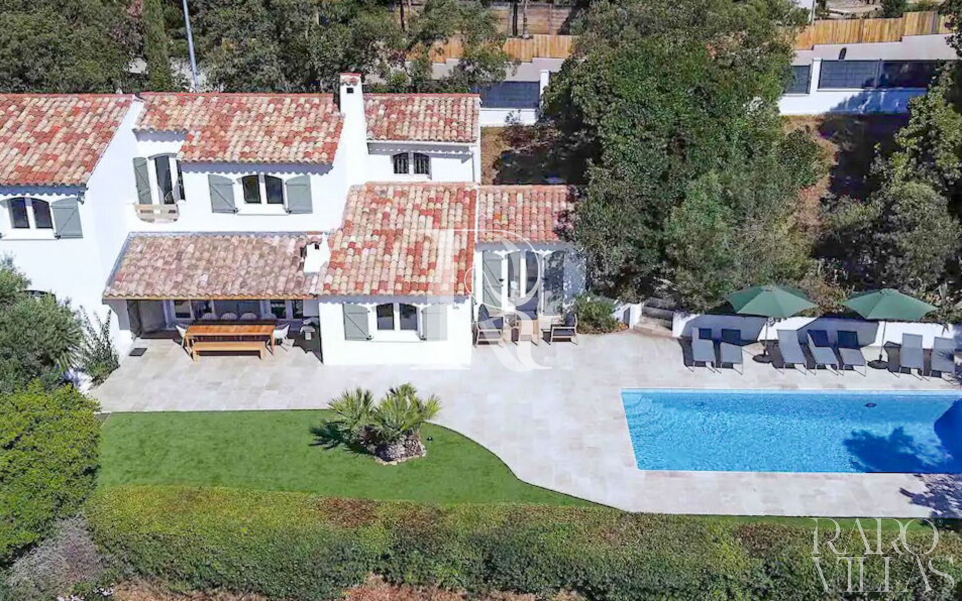 Una grande villa in costa azzurra con tutti i comfort, recentemente ristrutturata con mobili e arredi di fascia alta, composta da 5 camere da letto che possono ospitare un massimo di 12 viaggiatori, 1 sala da pranzo, 1 soggiorno con camino, 1 cucina completamente attrezzata, 4 bagni, 4 servizi igienici, 1 terrazza, 1 piscina riscaldata (a pagamento), 1 campo da bocce e un salotto estivo all'esterno.