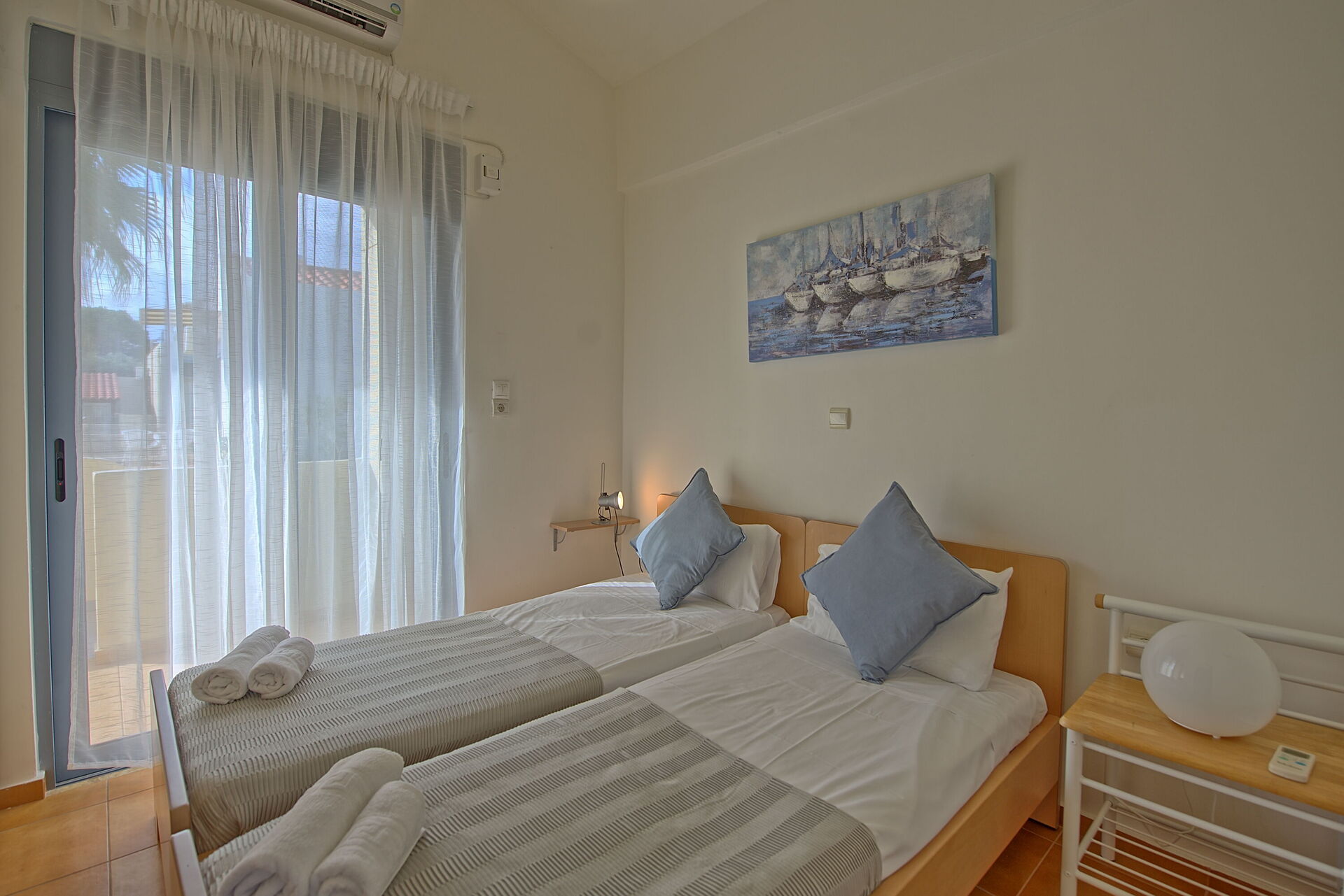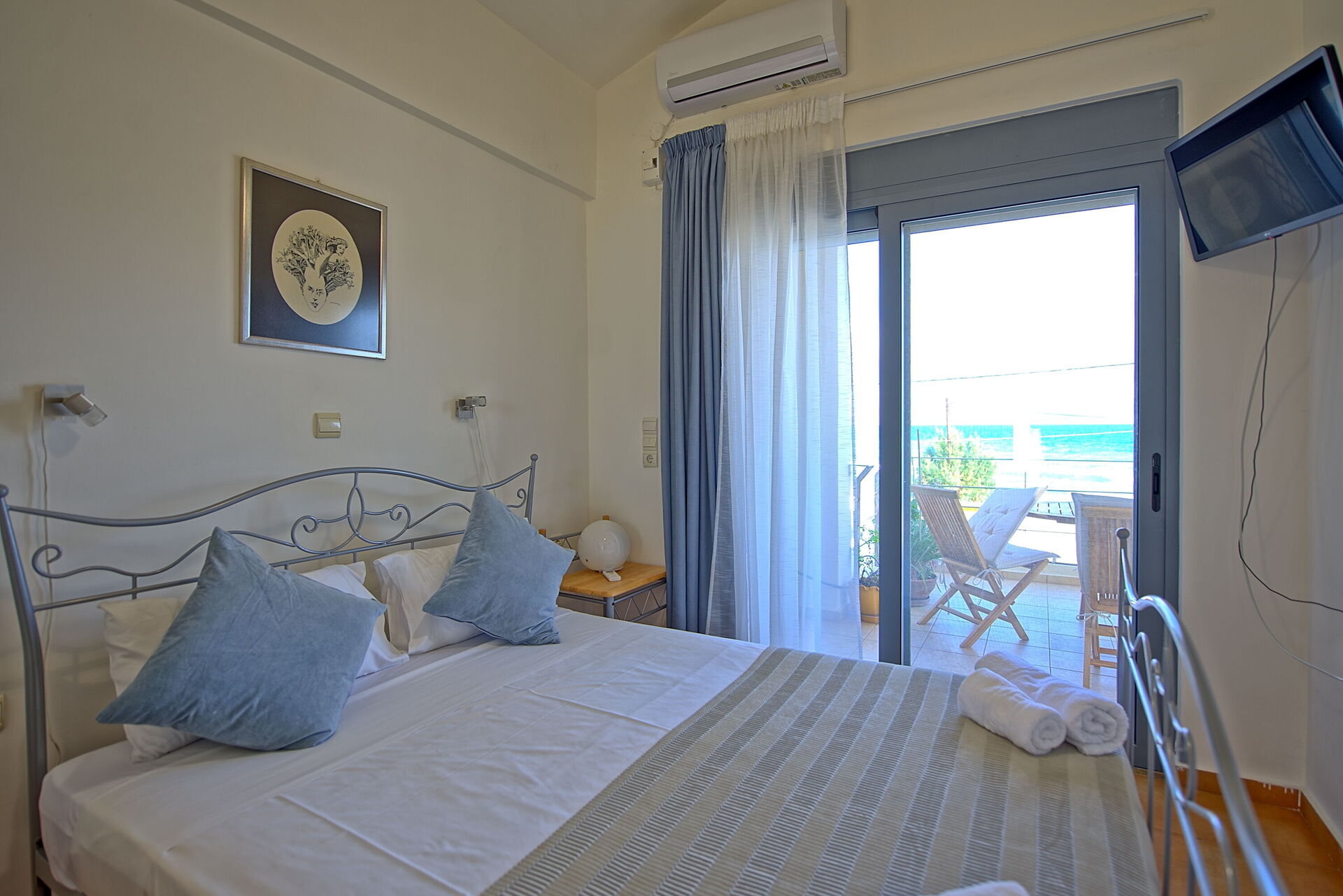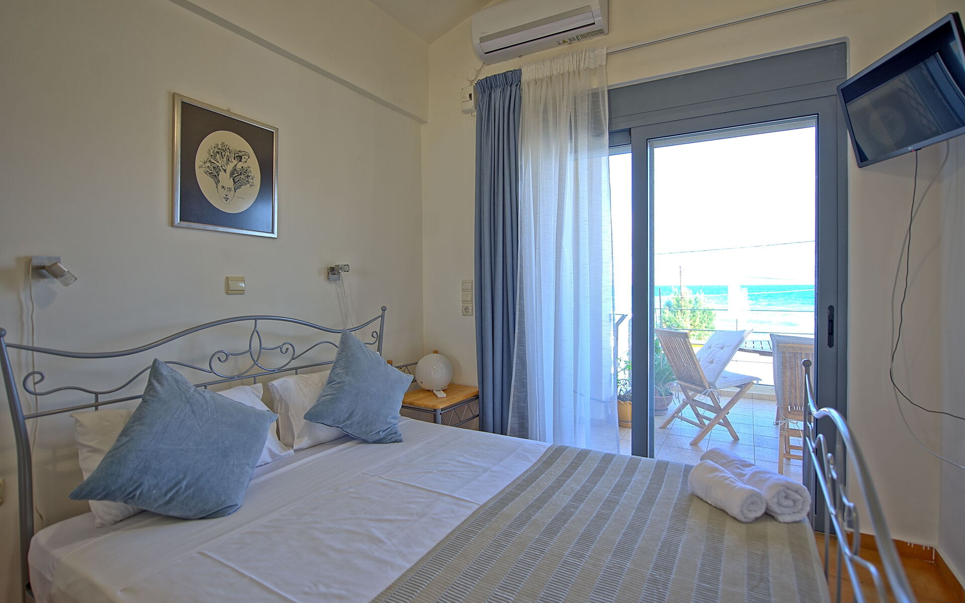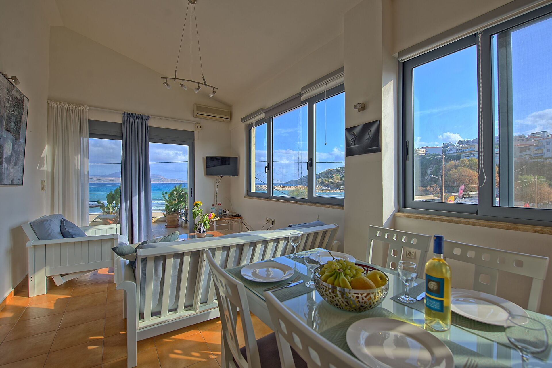 Primo piano: soggiorno (TV) con splendida vista sul mare, zona pranzo e angolo cottura (forno, freezer, lavastoviglie, microonde e macchina da caffè americano), accesso a panoramica terrazza attrezzata con tavolo, sedie e barbecue per mangiare all'aria aperta), camera matrimoniale, camera con 2 letti singoli, bagno con doccia, stanza esterna con lavatrice.