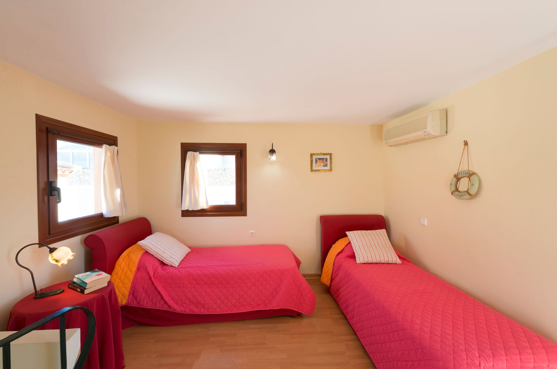 Secondo piano accessibile passando dalla camera (di passaggio) con 2 letti singoli al primo piano: camera (aperta sulla camera sottostante) con 2 letti singoli (aria condizionata, i letti possono essere uniti su richiesta), bagno con WC e lavandino, terrazza panoramica.