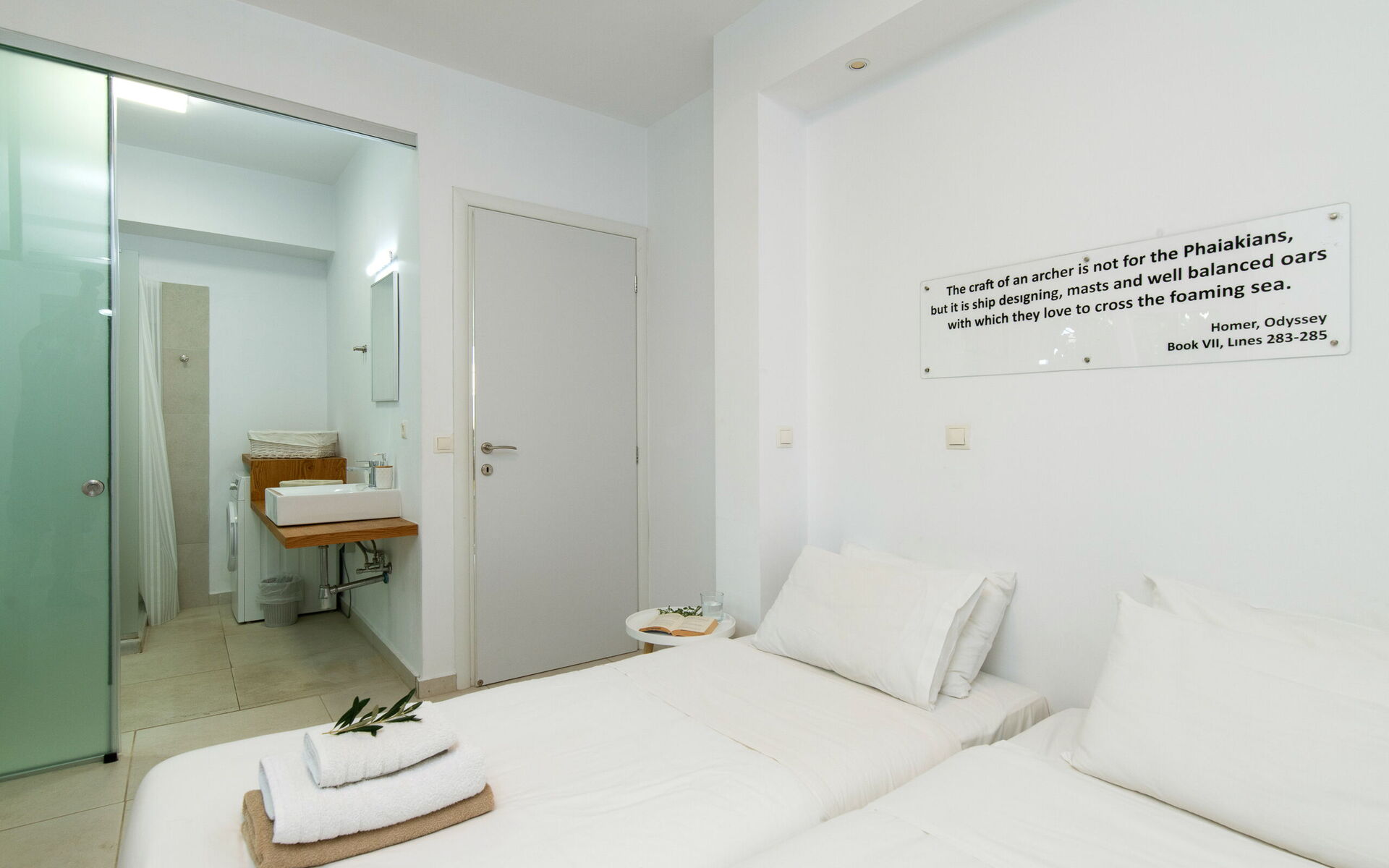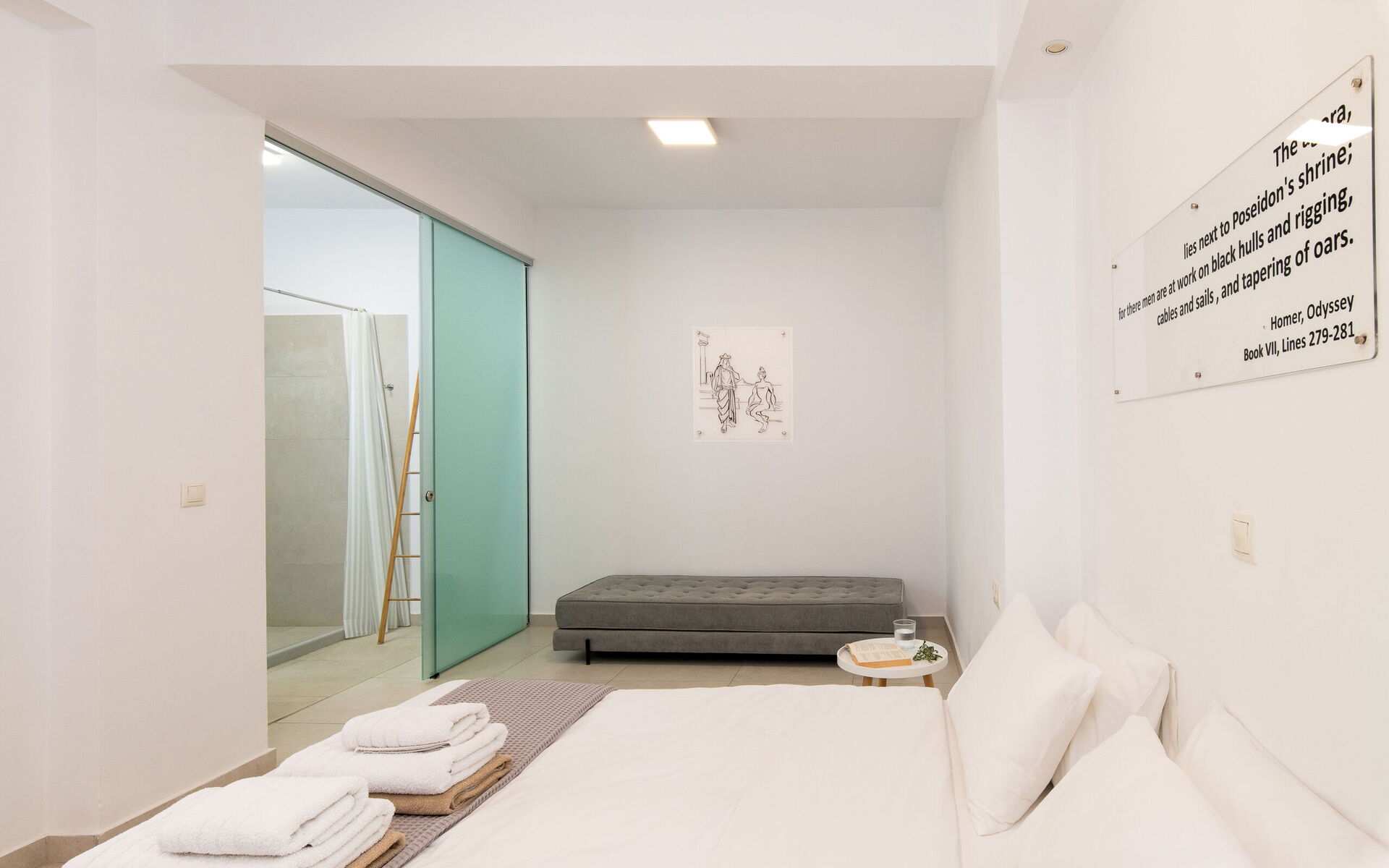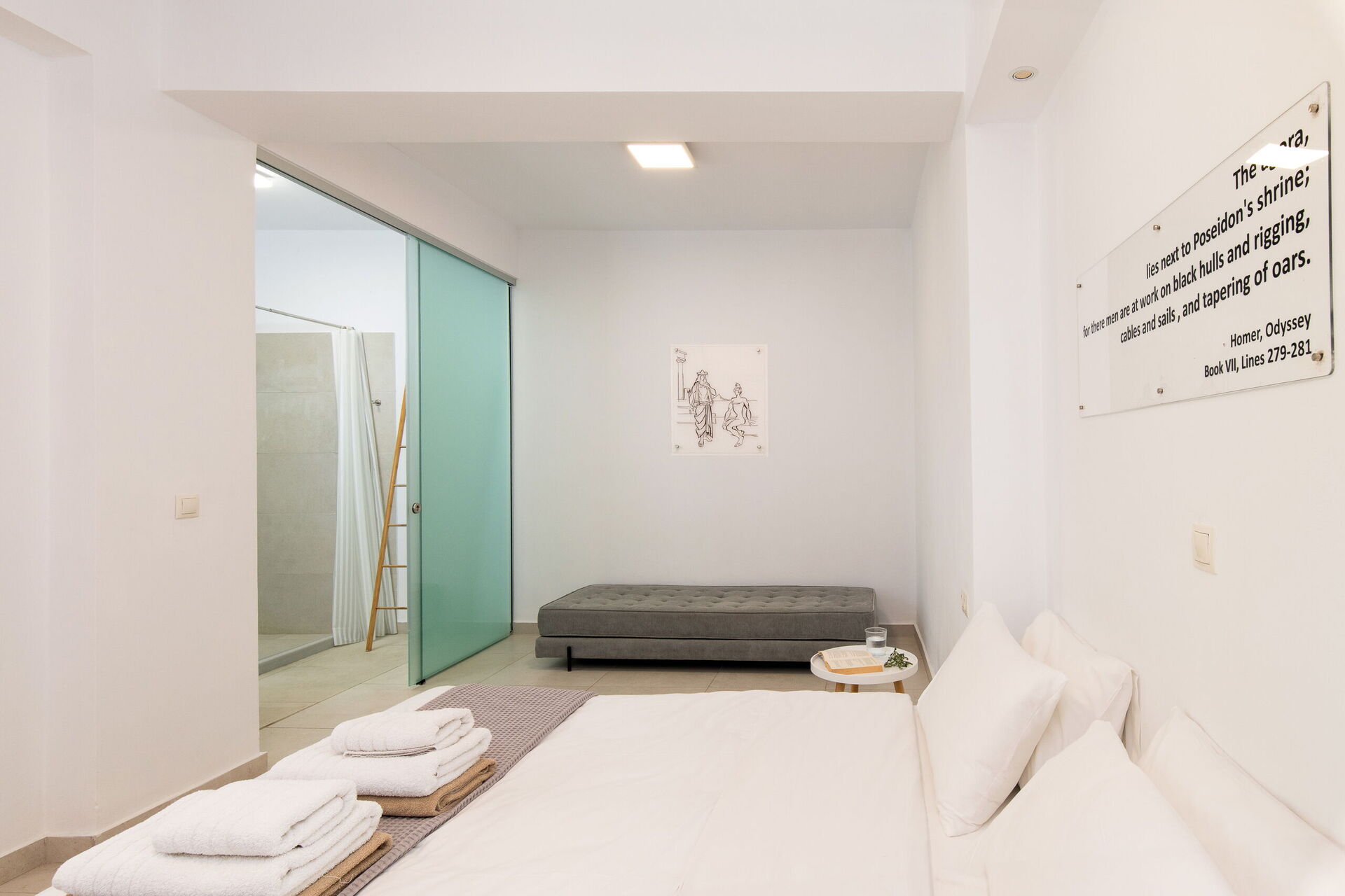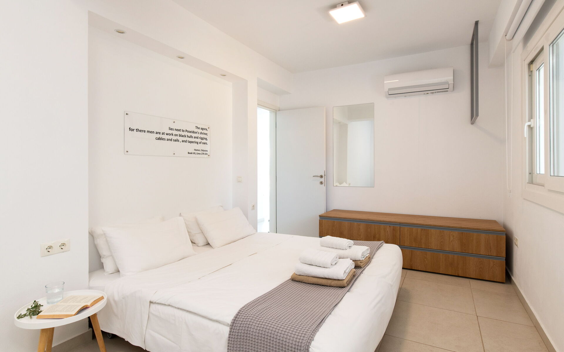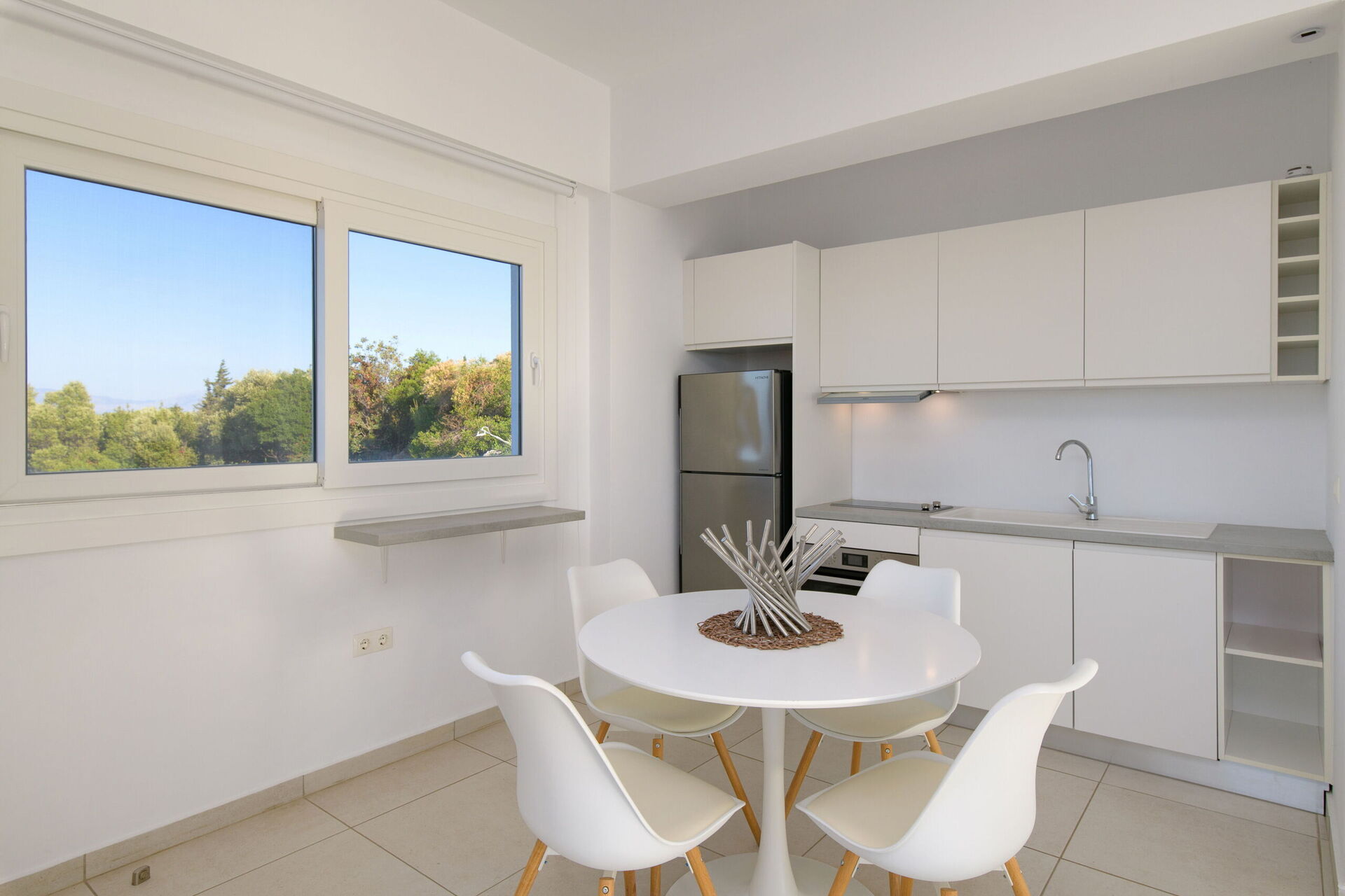 Grazie alle sue grandi vetrate Villa Athena gode di tutto il sole e la luce che la Grecia può offrire. Al piano terra c'è un ampio salone con divani, wi-fi e aria condizionata con cucina adiacente completamente attrezzata e 2 camere da letto (entrambe con bagno privato). Una camera da letto ha un letto matrimoniale + un divano (che può essere trasformato in un divano letto singolo full size) mentre l'altra camera è doppia. Il piano superiore è identico a quello inferiore, tranne per il fatto che la camera da letto principale ha solo un letto matrimoniale e non un divano letto supplementare. Ampi terrazzi su entrambi i piani offrono una vista magica sul Mar Ionio e sulla costa albanese.