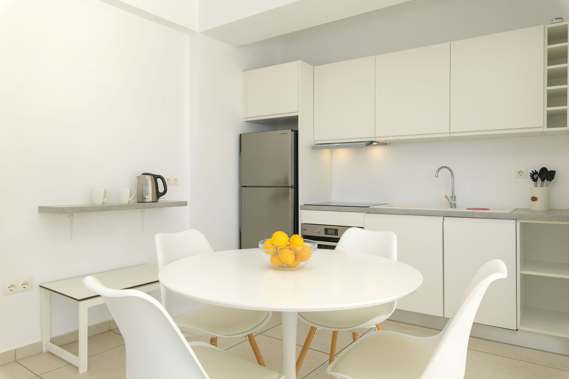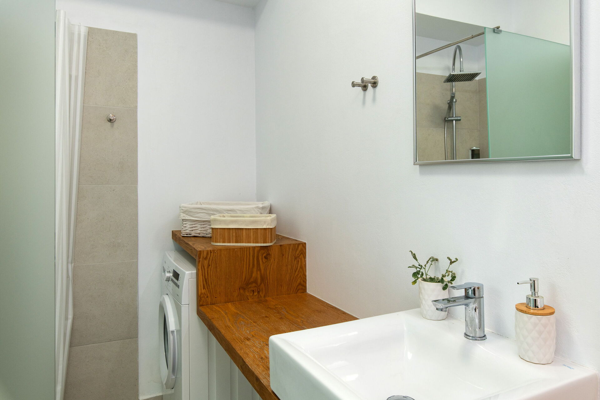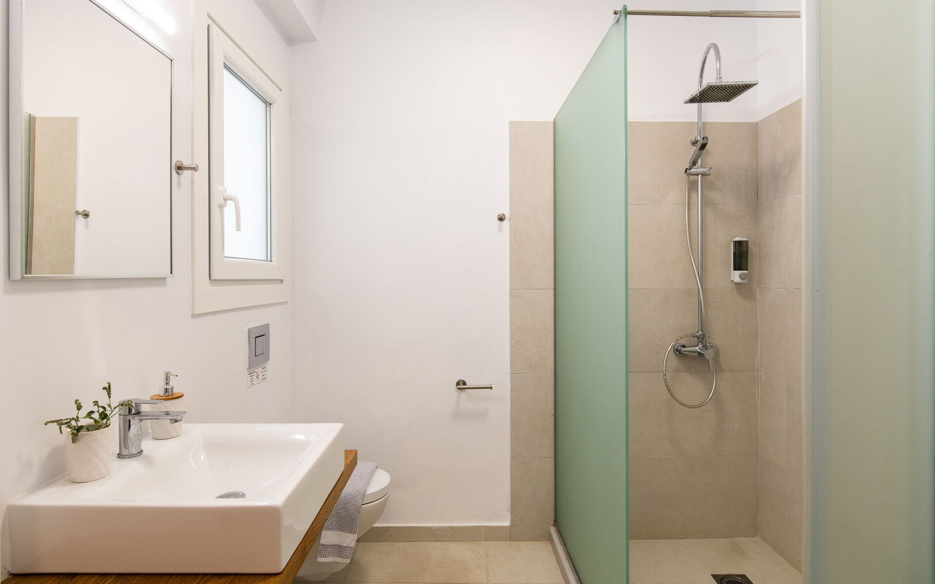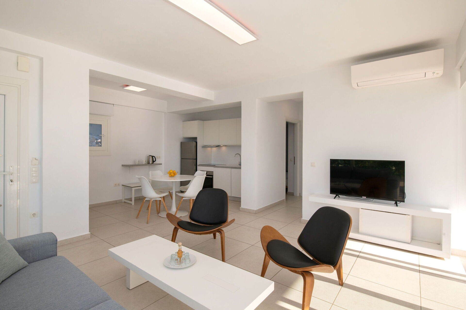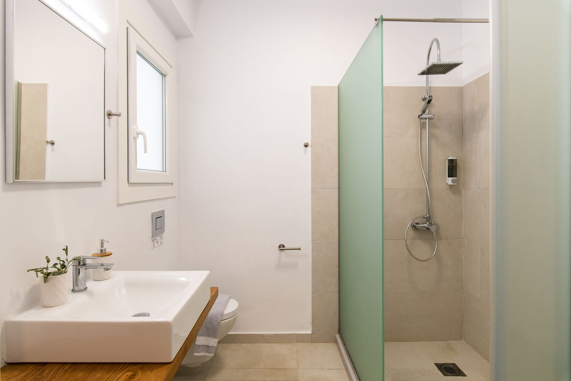 Grazie alle sue grandi vetrate Villa Athena gode di tutto il sole e la luce che la Grecia può offrire. Al piano terra c'è un ampio salone con divani, wi-fi e aria condizionata con cucina adiacente completamente attrezzata e 2 camere da letto (entrambe con bagno privato). Una camera da letto ha un letto matrimoniale + un divano (che può essere trasformato in un divano letto singolo full size) mentre l'altra camera è doppia. Il piano superiore è identico a quello inferiore, tranne per il fatto che la camera da letto principale ha solo un letto matrimoniale e non un divano letto supplementare. Ampi terrazzi su entrambi i piani offrono una vista magica sul Mar Ionio e sulla costa albanese.