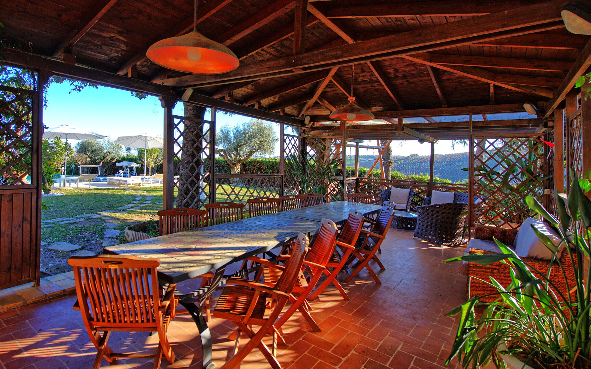 A disposizione degli ospiti: ampio giardino recintato; piscina privata riservata all'uso esclusivo degli ospiti (15 x 5 metri; profondità minima: 1 metro; profondità massima: 1,80 metri); sistema di depurazione a sale; vasca idromassaggio da 8 persone ricavata all'interno della piscina; spazio esterno attrezzato per mangiare all'aria aperta; forno a legna e grande barbecue in muratura; impianto stereo diffusione su tutta la zona piscina; 4 camere da letto; vicino al mare; collegamento ad internet wi-fi (free wi-fi); parcheggio.