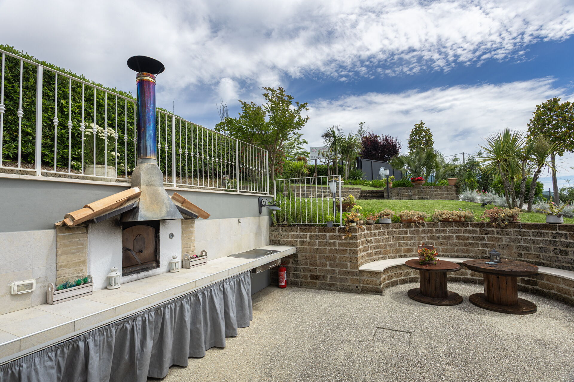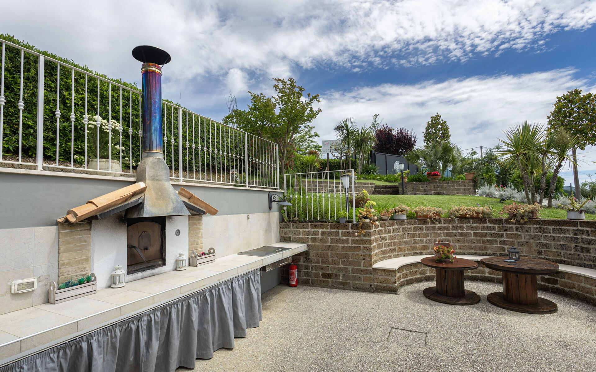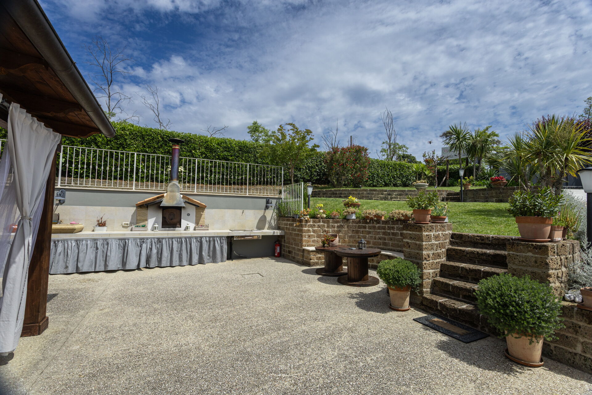 Villa Bram è dotata di un ampio giardino di circa 2000 mq a disposizione degli ospiti e di un porticato attrezzato per mangiare all'aperto.