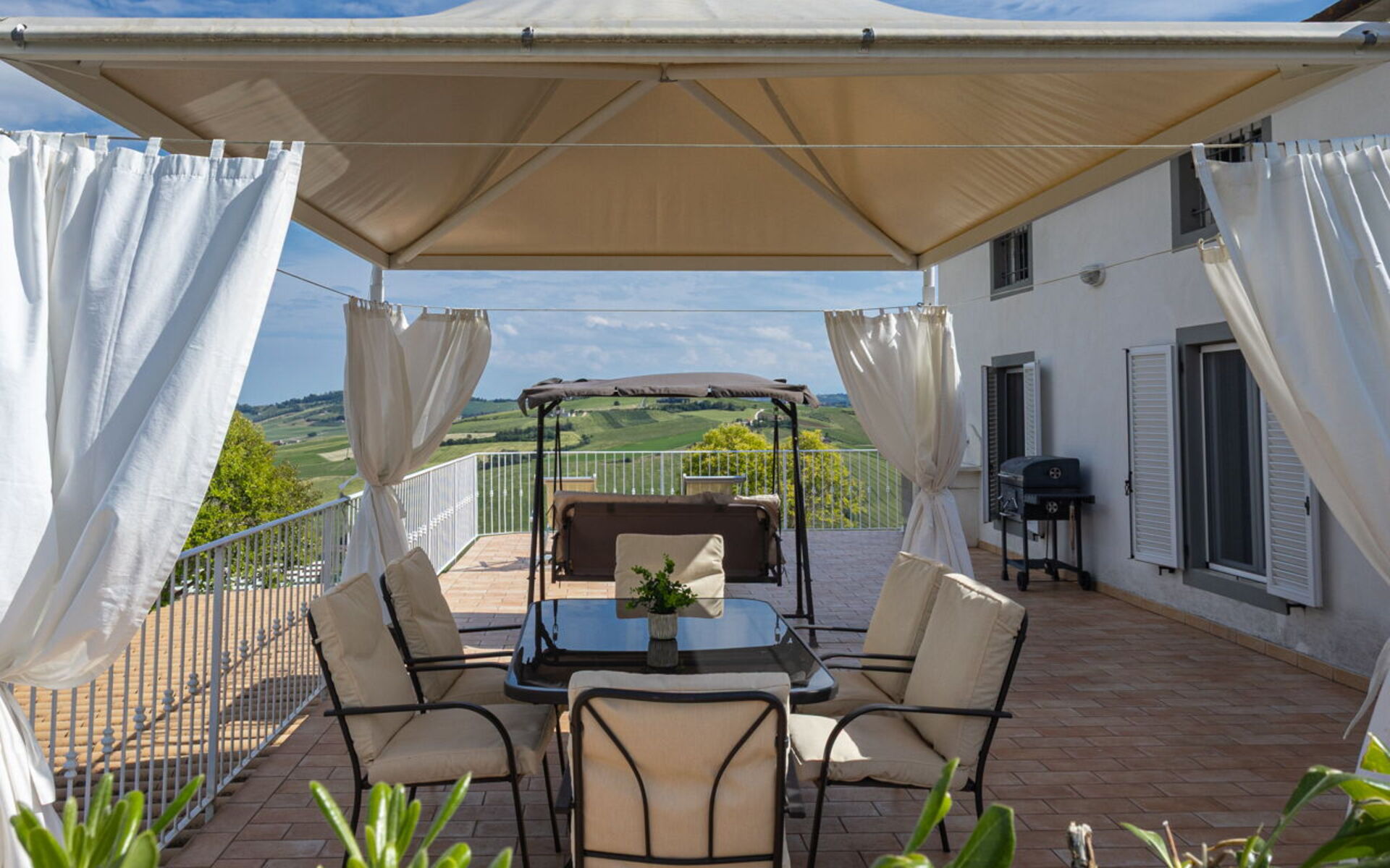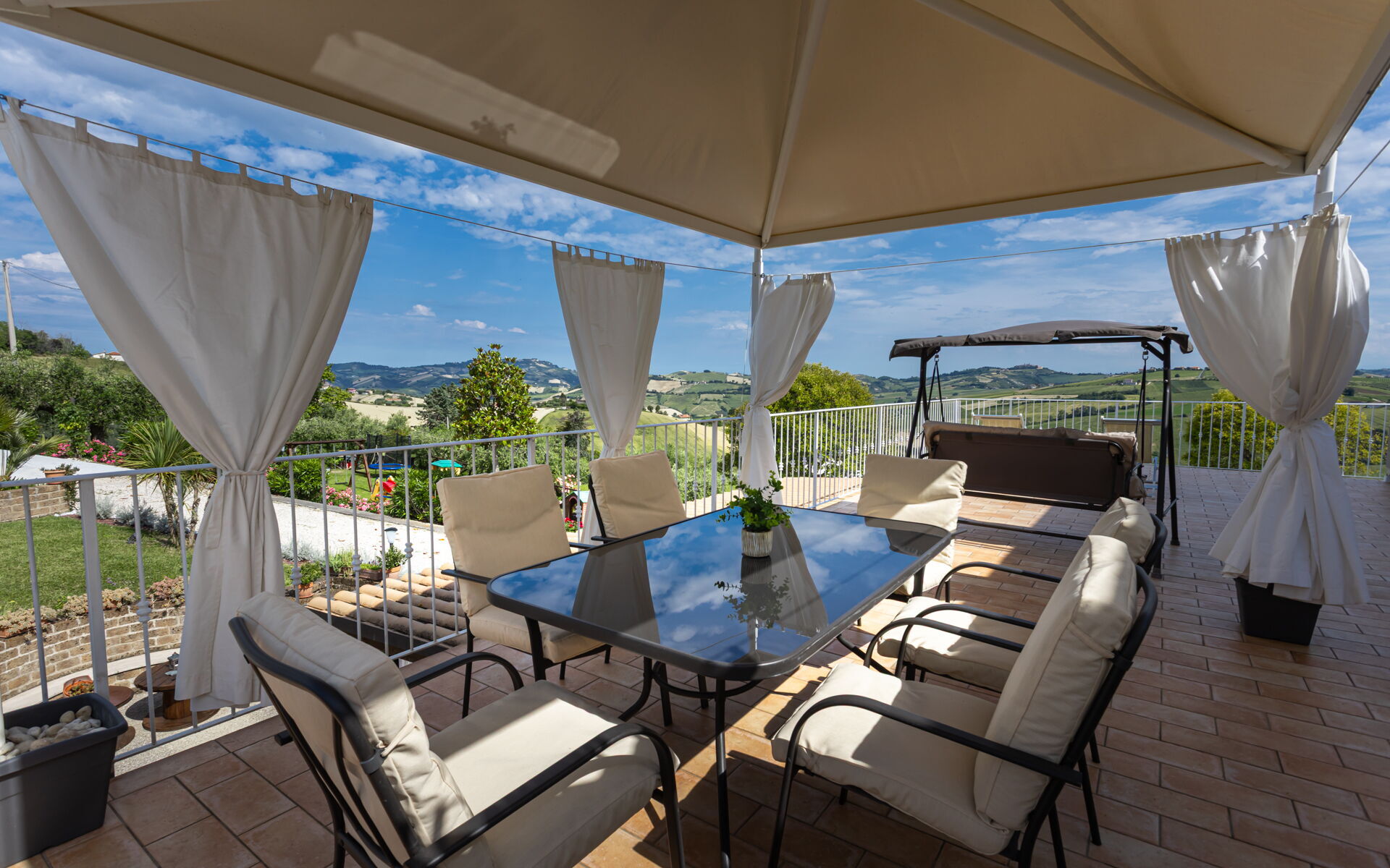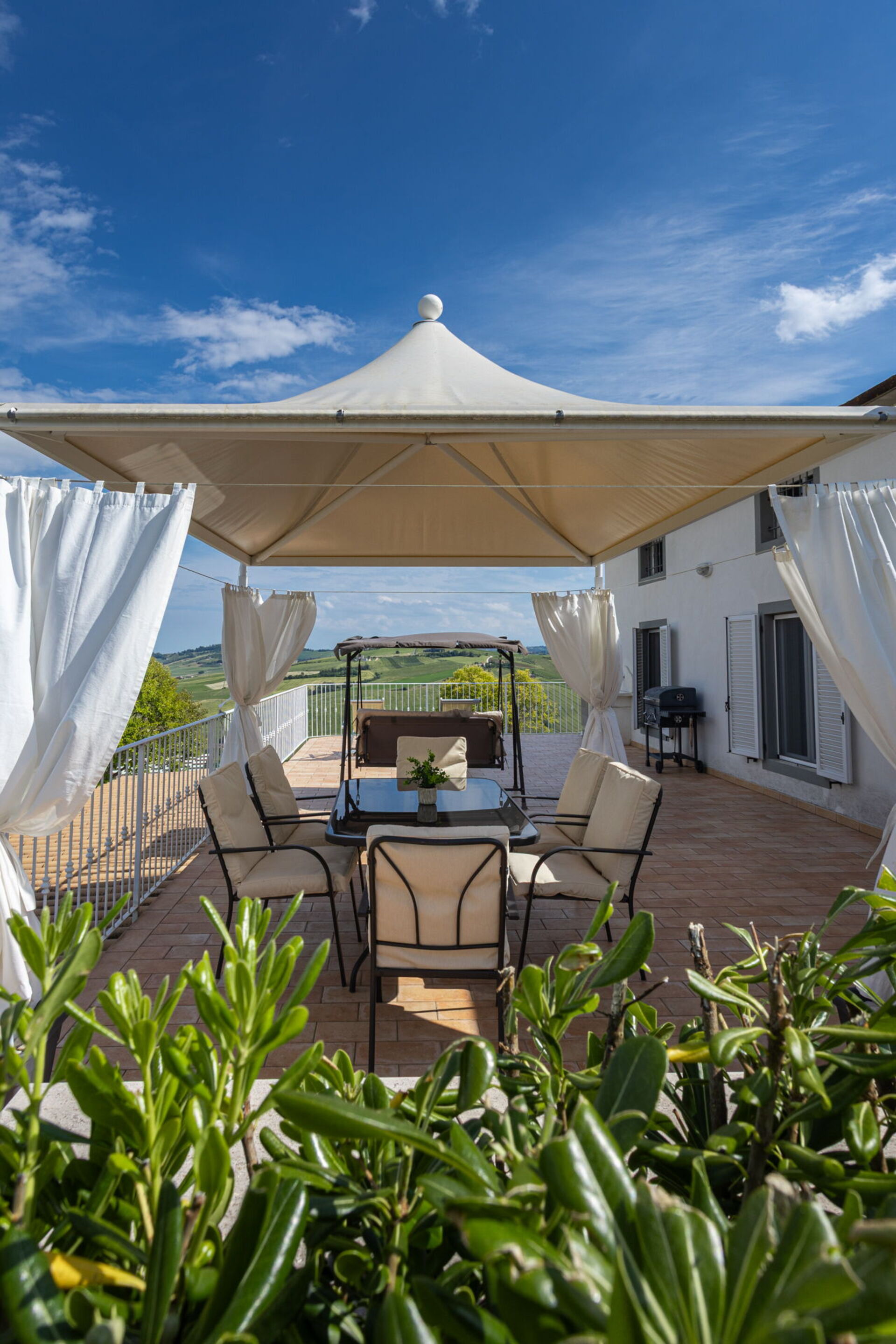 Una volta arrivato a Villa Bram troverai una splendida casa vacanze, pulita e tenuta in ottime condizioni con vista sulle montagne e sulle colline, ideale per una piacevole vacanza in Marche. Dopo una frenetica giornata ricca di shopping, concediti del tempo con famiglia e amici a bordo piscina per gustarti una bibita rinfrescante o un buon calice di vino - non c'è niente di meglio per rilassarti alla fine della giornata. Per il tuo divertimento, sul posto troverai un patio, un parco giochi, una vasca idromassaggio e un barbecue. Mangiare in compagnia di famiglia e amici è un grande aspetto della cultura italiana. Approfitta della cucina ben accessoriata per preparare pasti utilizzando prodotti locali freschi e genuini mentre ti trovi in vacanza. La cucina è provvista di macchinetta del caffè, microonde, tostapane, fornelli e frigorifero, così come un numero sufficiente di stoviglie e posate per un massimo di 11 persone. Pranza o cena all'aperto, il patio completamente accessoriato è la cornice perfetta per godersi del buon cibo, la compagnia della propria famiglia o gruppo di amici e il bellissimo clima italiano.