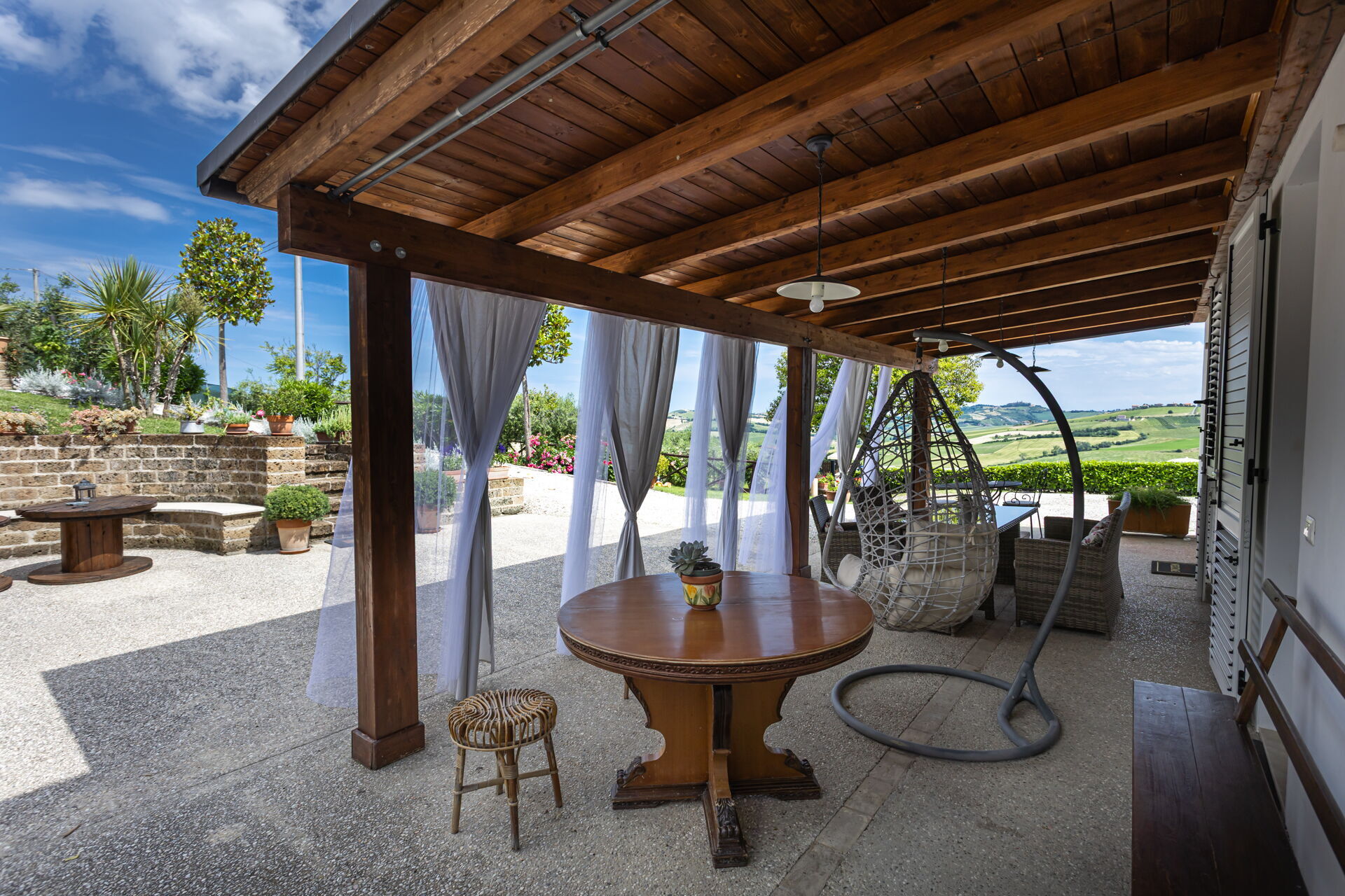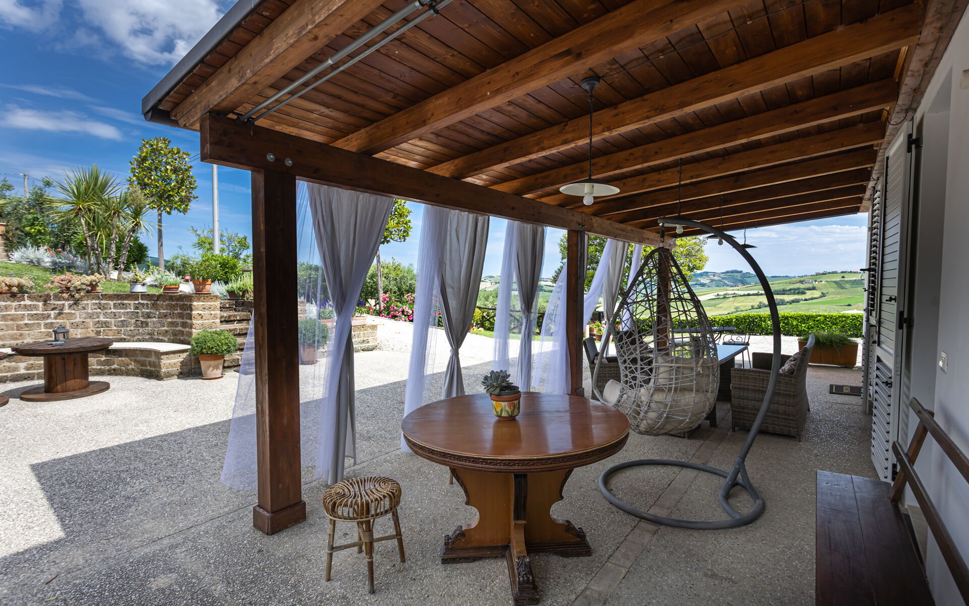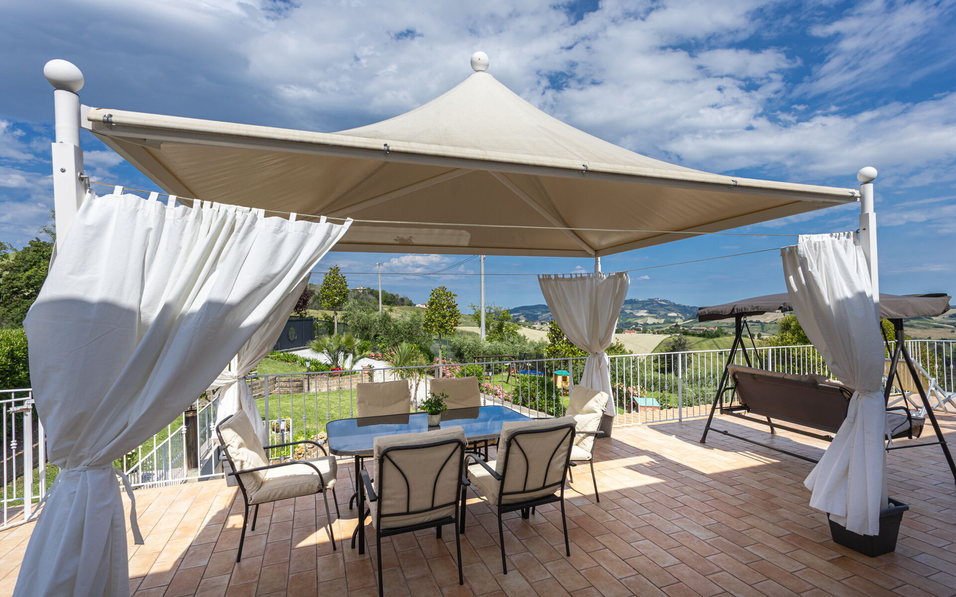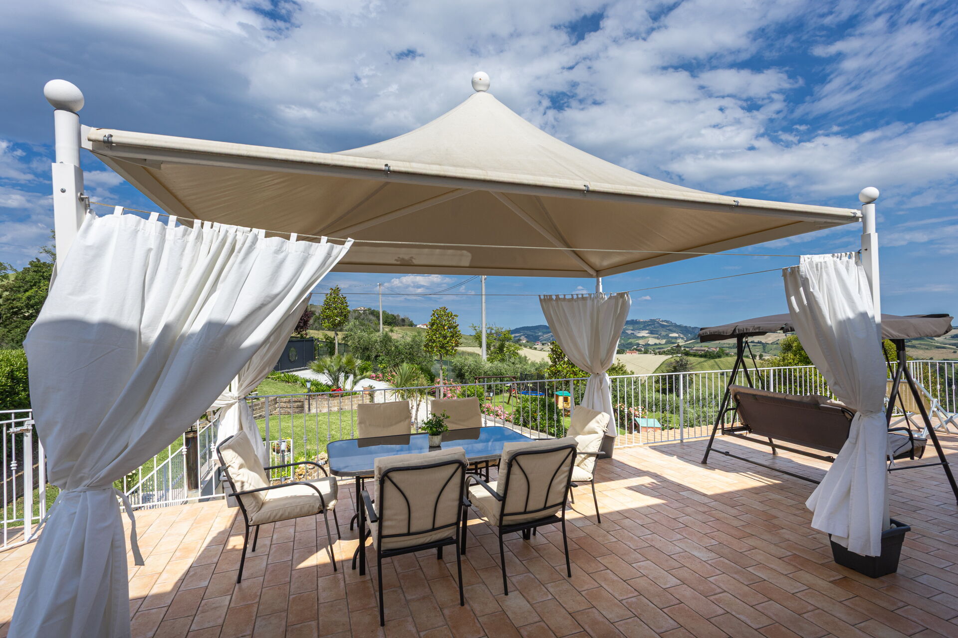 Una volta arrivato a Villa Bram troverai una splendida casa vacanze, pulita e tenuta in ottime condizioni con vista sulle montagne e sulle colline, ideale per una piacevole vacanza in Marche. Dopo una frenetica giornata ricca di shopping, concediti del tempo con famiglia e amici a bordo piscina per gustarti una bibita rinfrescante o un buon calice di vino - non c'è niente di meglio per rilassarti alla fine della giornata. Per il tuo divertimento, sul posto troverai un patio, un parco giochi, una vasca idromassaggio e un barbecue. Mangiare in compagnia di famiglia e amici è un grande aspetto della cultura italiana. Approfitta della cucina ben accessoriata per preparare pasti utilizzando prodotti locali freschi e genuini mentre ti trovi in vacanza. La cucina è provvista di macchinetta del caffè, microonde, tostapane, fornelli e frigorifero, così come un numero sufficiente di stoviglie e posate per un massimo di 11 persone. Pranza o cena all'aperto, il patio completamente accessoriato è la cornice perfetta per godersi del buon cibo, la compagnia della propria famiglia o gruppo di amici e il bellissimo clima italiano.