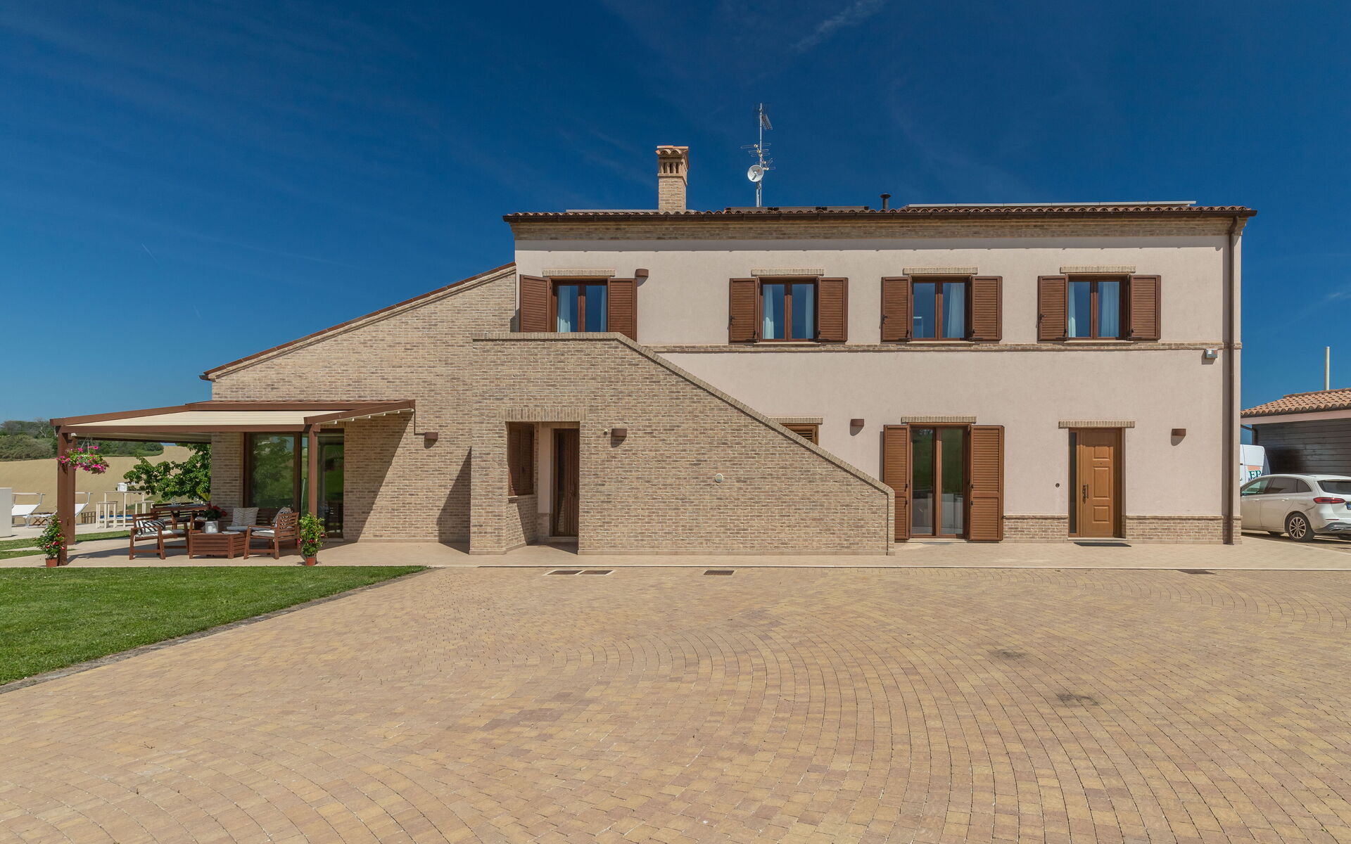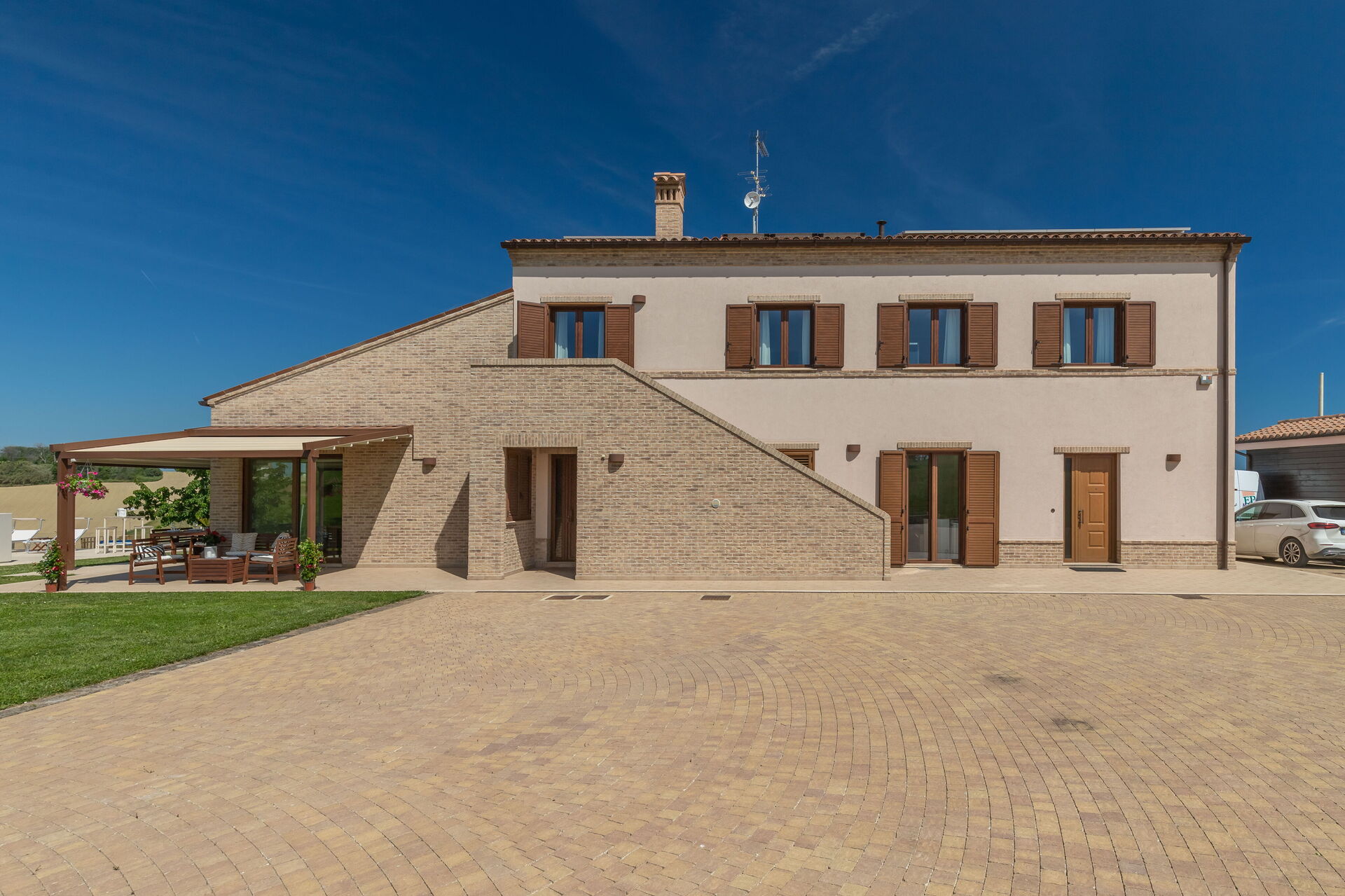 La casa vacanze Villa Vespro è una incantevole casa vacanze in pietra (200 mq) che offre piscina privata, aria condizionata e internet Wi-Fi. La proprietà può accogliere comodamente fino a 14 persone. La struttura Villa Vespro è situata a 5 km di distanza da Fermo (Italia), e solo a 38 km da Porto Recanati. Se hai sempre desiderato visitare la bellissima costa italiana, la casa vacanze si trova ad una breve distanza dal mare (7 km).