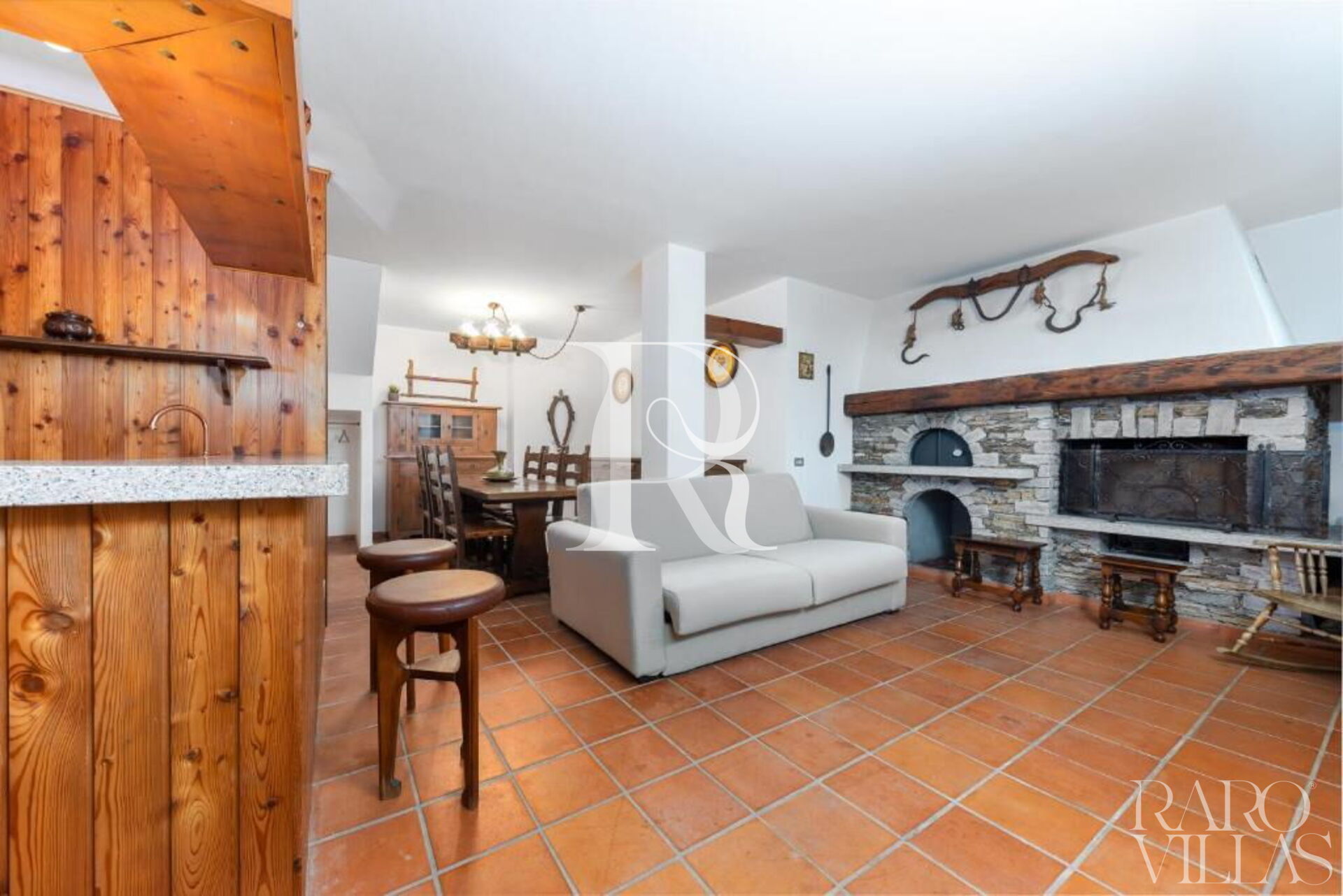 Cucina - soggiorno: aria condizionata, caminetto, cucina ben attrezzata, divano, freezer, frigo, internet WIFI, lavastoviglie, macchina da caffè (italiana), microonde, tavolo da pranzo, tv satellitare, uscita sul giardino.