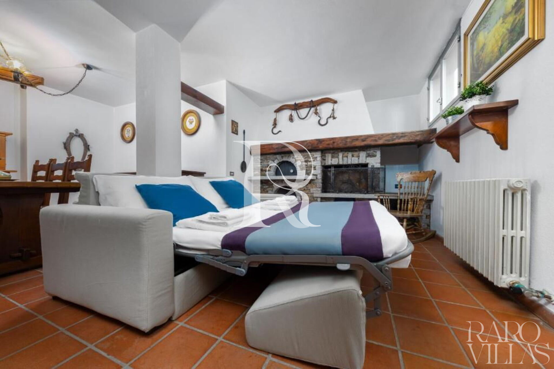 Open space: aria condizionata, caminetto, divano, internet WIFI, tv satellitare, uscita sul giardino.