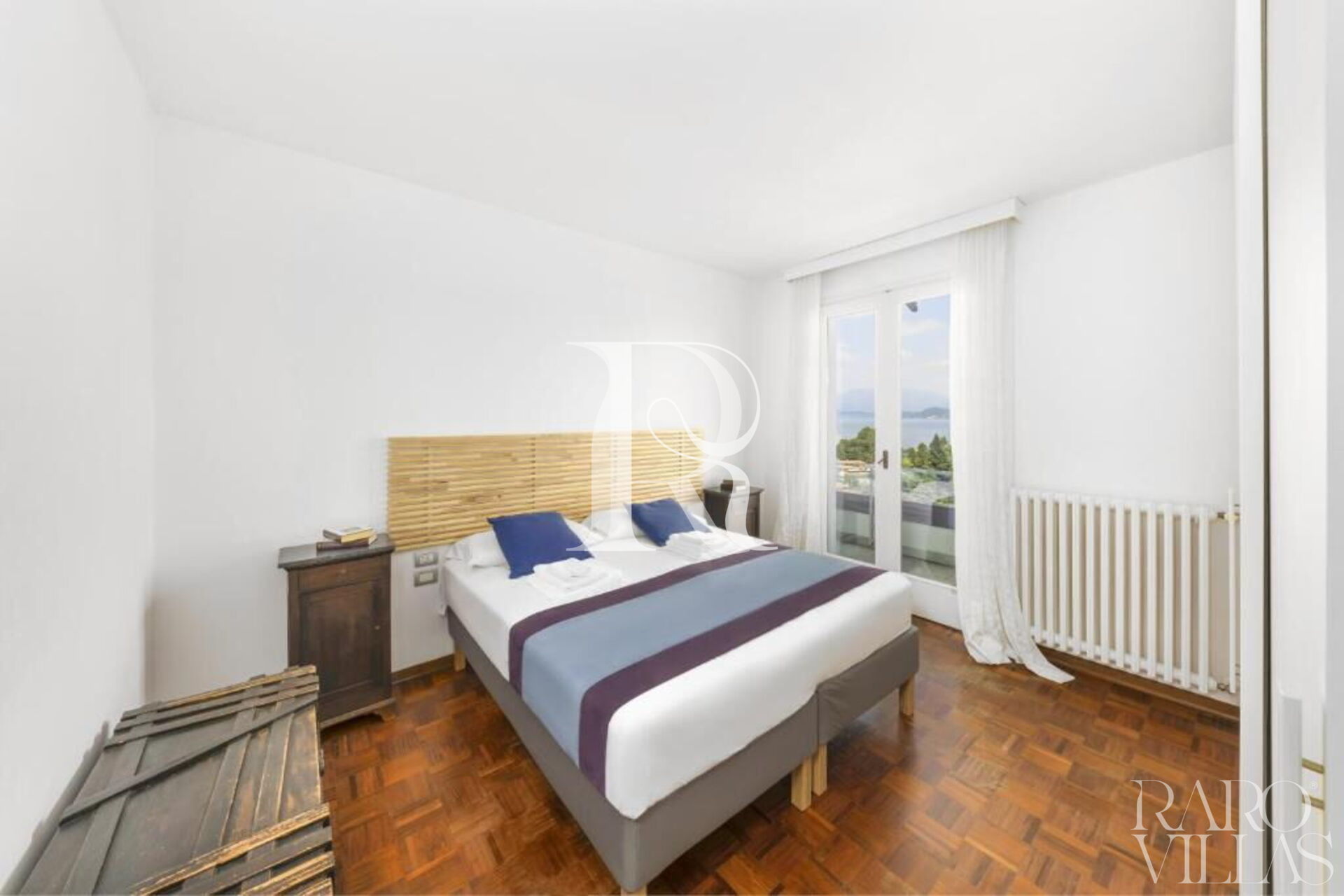 Villa Desira sorge a Meina, di fronte al blu più autentico del Lago Maggiore. La sua ubicazione e i tanti comfort di cui dispone rendono questa casa la soluzione ideale per un soggiorno all’insegna del relax e del divertimento. La casa, che domina la spiaggia con approdo di barche e barchini, offre una vista incantevole: si può ammirare il lago da ogni ambiente, con una vista a 180 gradi. Sullo sfondo, oltre allo specchio d’acqua, si ammira anche la Rocca di Angera, punto di riferimento per i romantici, e raggiungibile con pochi minuti di navigazione. Questa villa è circondata da un giardino esclusivo, su più livelli e curato in ogni centimetro. La parte più ampia del giardino si trova tra la zona pranzo e il lago, cosparso di erba, riposante e al tempo stesso energizzante. La parte inferiore del giardino, posta in posizione rialzata per garantire anche da qui la vista lago, dispone di una zona solarium e di un’area barbecue. Gli interni della casa sono ricercati, essenziali e dinamici. Il colore predominante è il bianco, che contrasta il colore del pavimento e che infierisce una sensazione di rilassatezza e pace dei sensi. Ad ogni piano è collocato un grande terrazzo o dei romantici balconi, con vista diretta sul lago. Il soggiorno, volutamente spoglio di quadri e altri oggetti che possano sottrarre attenzione, è munito di un’immensa vetrata sul lago, che pare un quadro che cambia i propri colori a seconda dell’ora del giorno. Al piano del soggiorno, oltre al terrazzo che fiancheggia la casa, è posta anche una camera da letto matrimoniale con bagno. Salendo di un piano si trova poi una delle altre zone notti, con tre camere da letto e due bagni, oltre al terrazzo. All’ultimo piano, salendo un’altra rampa di scale, è poi posta la suite imperiale con bagno interno, camino, zona lettura, due balconcini e tre posti letto. Scendendo tutte le scale, al primo livello della casa, si trova la cucina, con la sala da pranzo che affaccia su lago e giardino e un bagno (anch’esso munito di doccia). Nei pressi del cancello d’ingresso si trova un’autorimessa di grandi dimensioni ad uso esclusivo. Di fronte alla villa è inoltre presente un’area di sosta privata, anch’essa ad uso esclusivo, con possibilità di posteggiare fino a 4 auto all’aperto. A disposizione degli ospiti è presente una dotazione domestica completa, che comprende: wifi illimitato, smart tv, lavatrice. La massima privacy degli ospiti è garantita da infissi con doppi vetri e siepi che circondano il giardino. Gli animali domestici sono i benvenuti.
