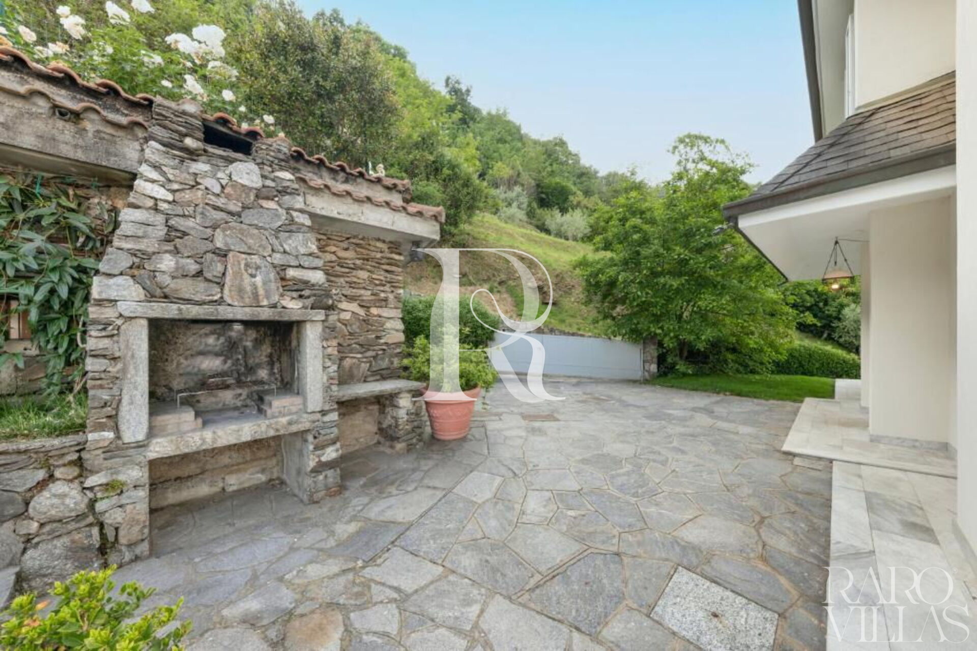 E’ circondata da un immenso giardino, luogo ideale per pranzi all’aperto, con barbecue e solarium.