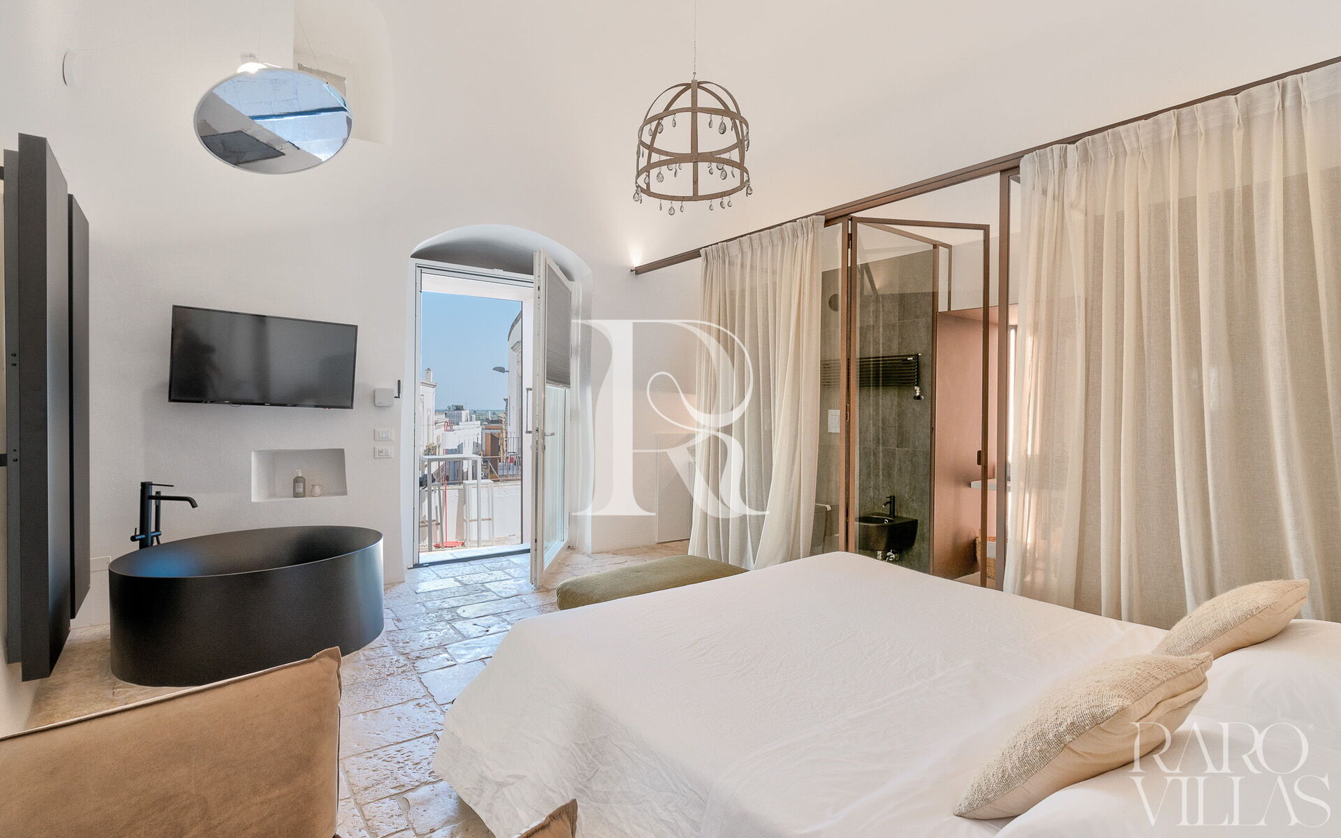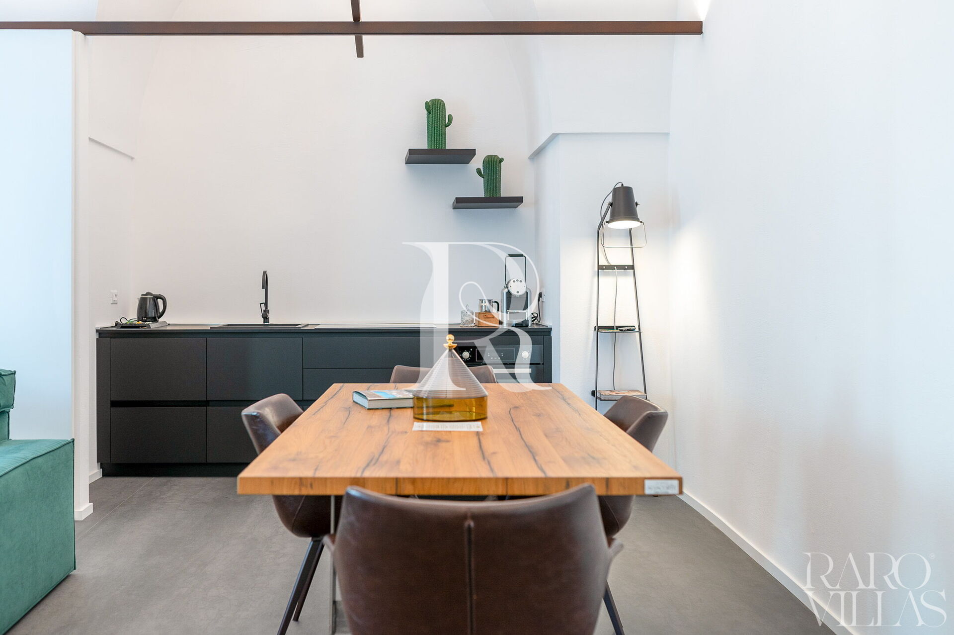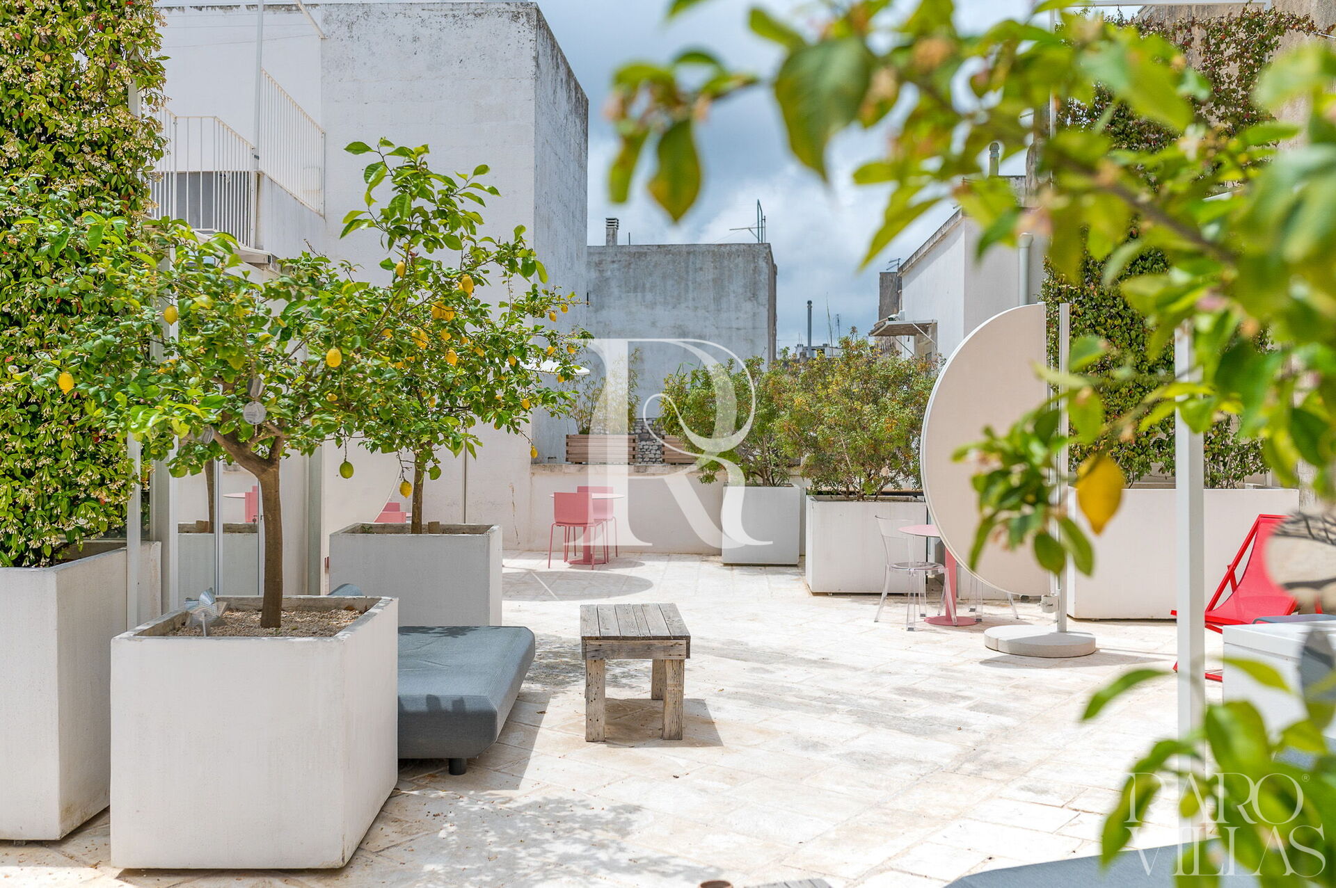 Il Palazzo è parte di una torre medievale dove gli ambienti restaurati con cura dalle sapienti mani degli artigiani locali della pietra hanno esaltato l’architettura pre-esistenza con arredi moderni e contemporanei in stile pugliese.