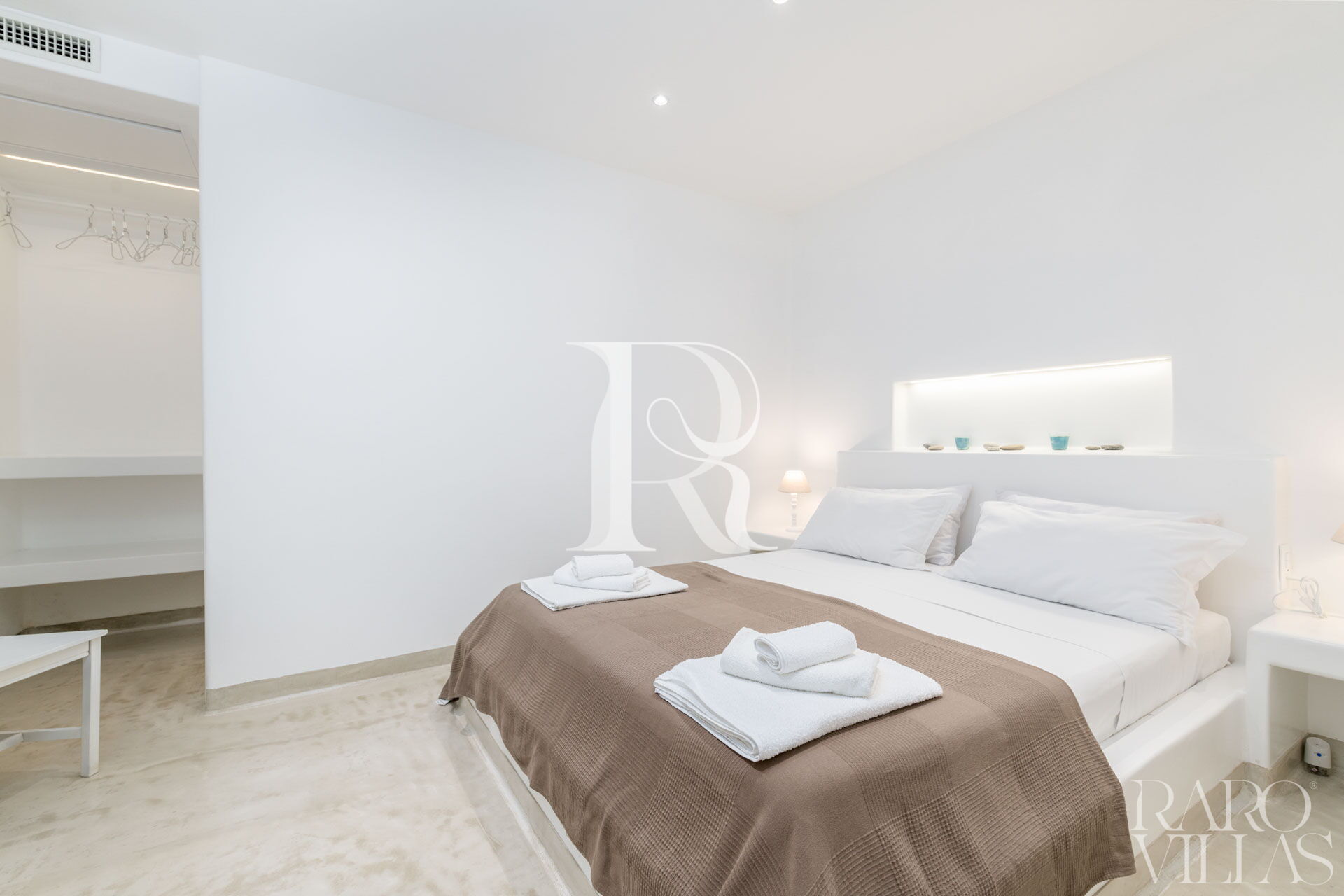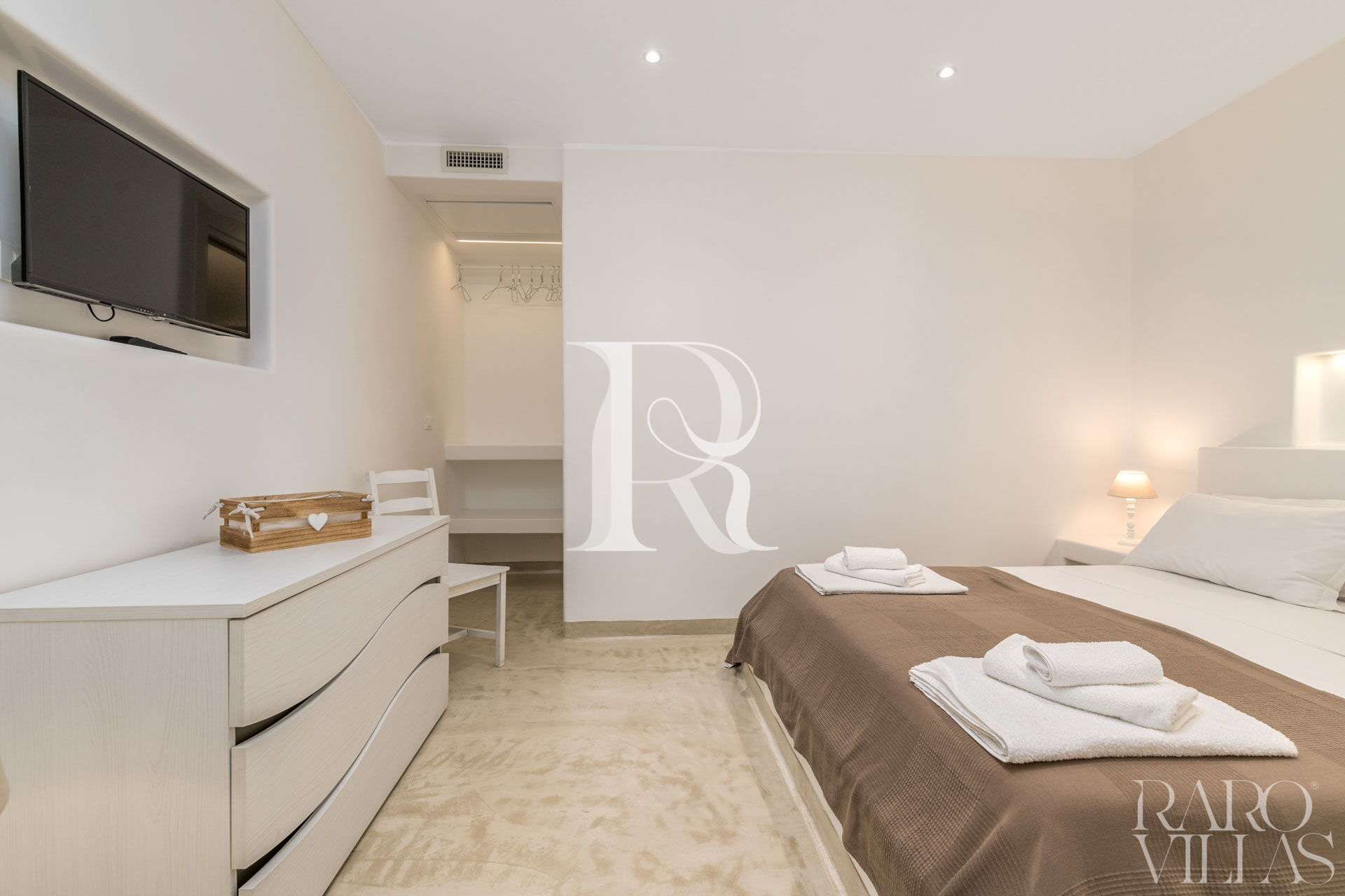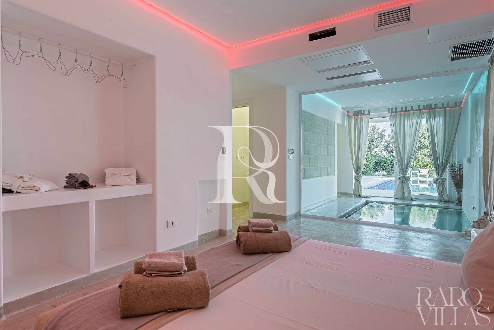 La zona notte è divisa in due parti, dal soggiorno si raggiunge sia Master Suite Clò sulla sinistra e sulla destra le restanti tre camere Suite: Suite Ni, Suite Ra e Suite Mi. Nella dependance esterna ci sono altre due camere da letto con due bagni. Tutti gli ambienti sono dotati di illuminazione a led e di aria condizionata canalizzata.