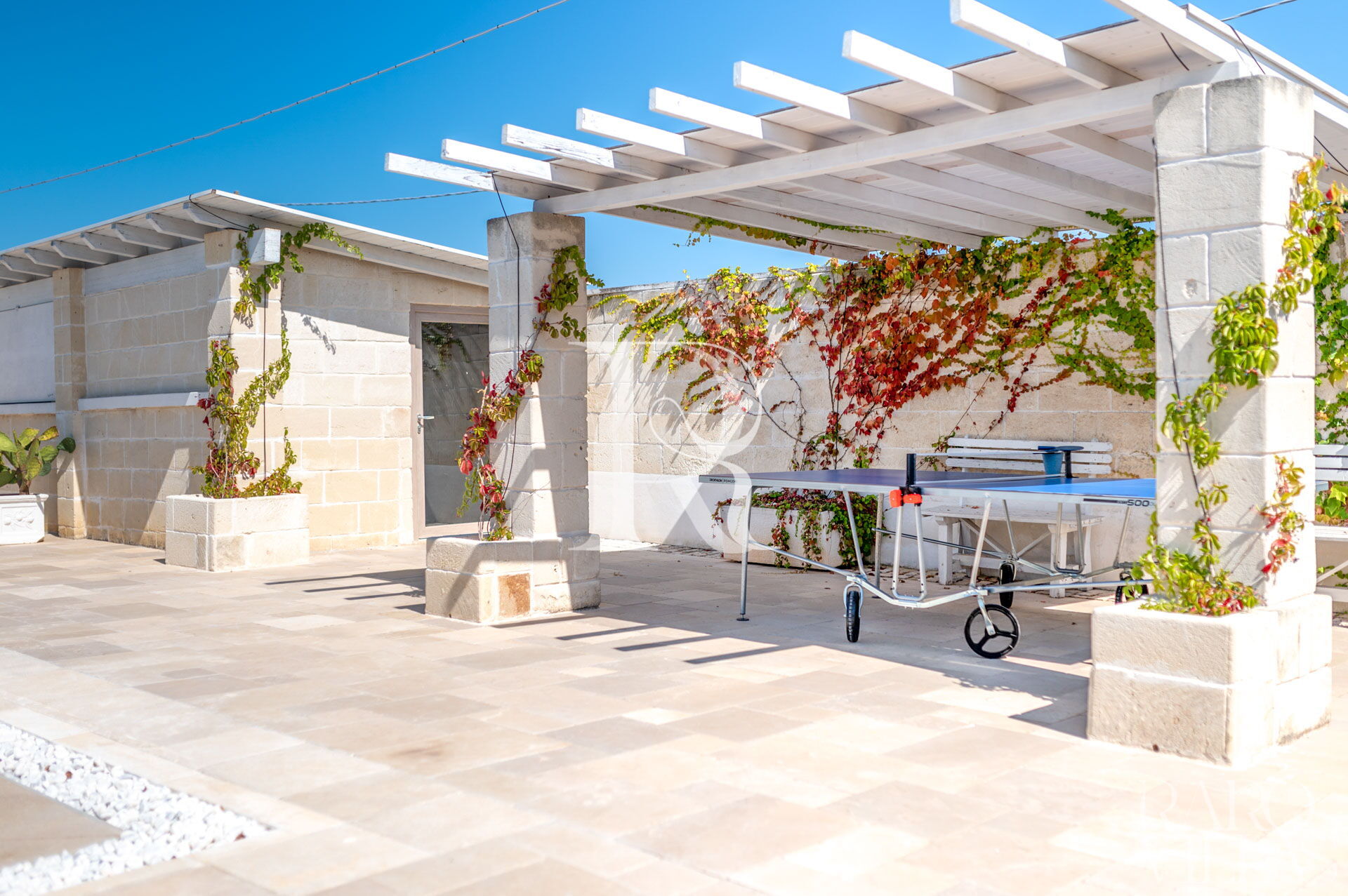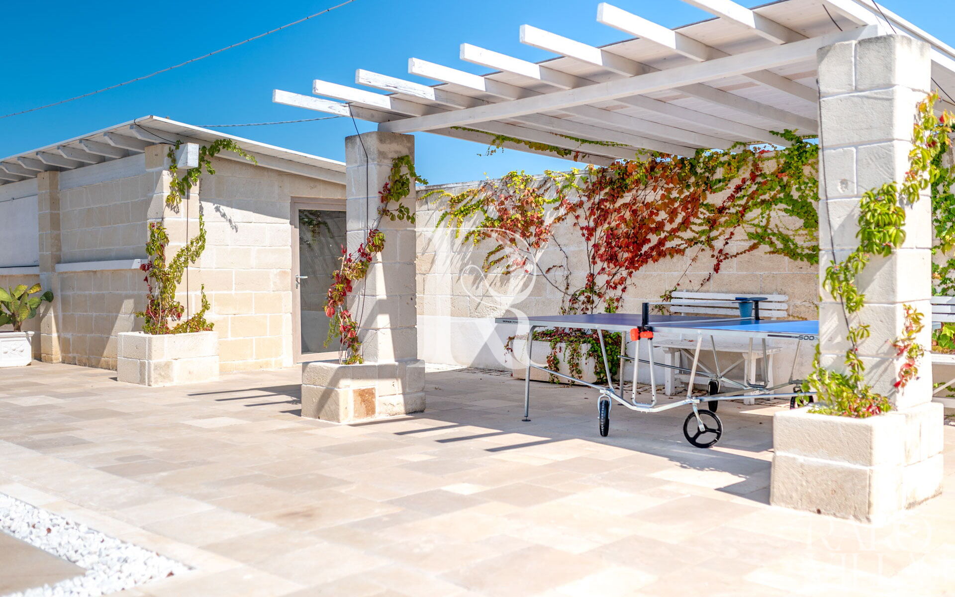 Sono presenti tre verande che ospitano due zone pranzo con tavolo ed una zona relax per il Thé o il caffè. In corrispondenza è presente la zona barbecue.