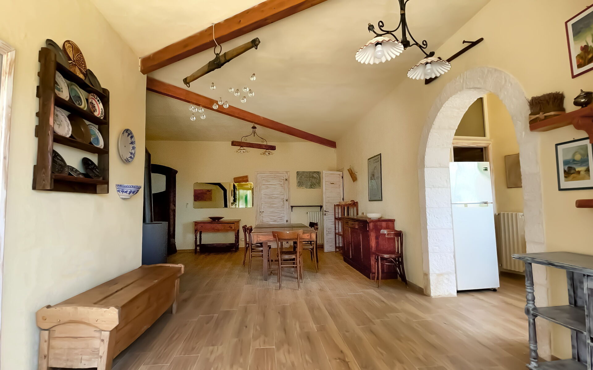Soggiorno: divano (persone: 5), scrivania, caminetto, internet WIFI, televisione, zanzariere, ventilatore portatile, stereo hifi, uscita sulla veranda.
