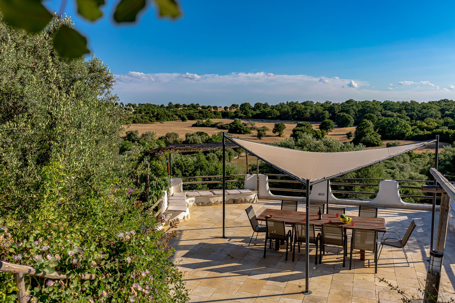 Una volta arrivato troverai una incantevole casa vacanze pulita e in ottime condizioni con vista sulle colline, perfetta per una rilassante vacanza in Puglia. A prescindere da come trascorrerai le tue giornate - visitando i più famosi musei della zona, facendo shopping, imbarcandoti in gite fuori porta o semplicemente guidando nell'entroterra, quando arriverai a casa la sera avrai la possibilità di riposarti con famiglia e amici a bordo piscina concludendo in bellezza un altro fantastico giorno di vacanza in Puglia. Avrai a tua disposizione fuori anche una vasca idromassaggio, un barbecue e un patio. Pranzare o cenare in compagnia di famiglia e amici è un grosso aspetto della cultura italiana. Approfitta della cucina ben accessoriata per preparare pasti utilizzando prodotti locali freschi e genuini mentre ti trovi in vacanza. La cucina è provvista di macchinetta del caffè, tostapane, fornelli e frigorifero, così come un numero sufficiente di stoviglie e posate per un massimo di 11 persone. Pranza o cena all'aperto, la veranda completamente accessoriata è la cornice ideale per godersi del buon cibo, la compagnia della propria famiglia o gruppo di amici e il bellissimo clima italiano.