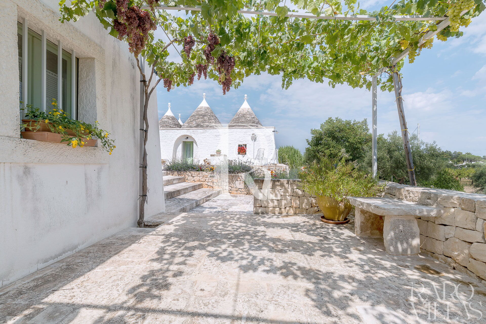 Appena arrivati si potrà ammirare lo splendido paesaggio, alberi di ulivi secolari tutto intorno alla proprietà e trulli sparsi per tutta la valle verdeggiante. Un paesaggio da mozzare il fiato, una pace dove vivere nel pieno relax le proprie vacanze estive, alla ricerca delle bellezze che questa meravigliosa terra può offrire.