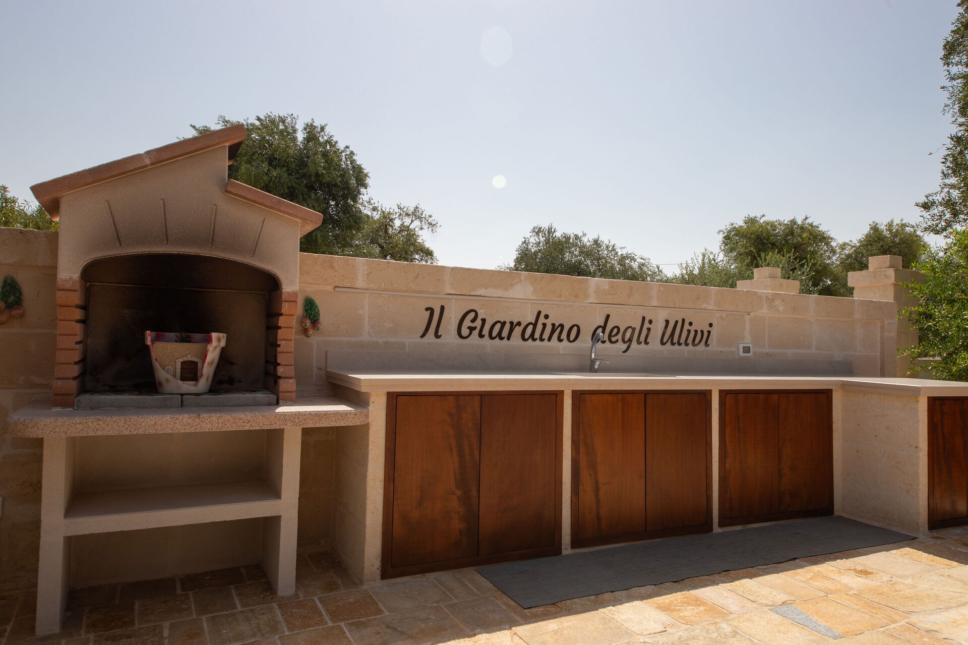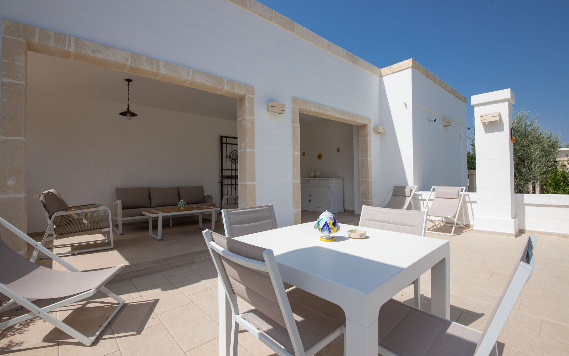 Nel giardino, oltre alla piscina privata ad uso esclusivo degli ospiti, si trova un moderno pergolato.