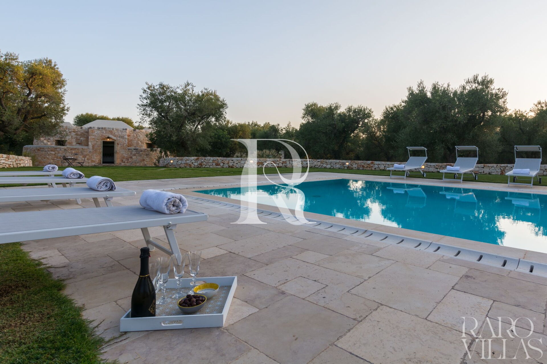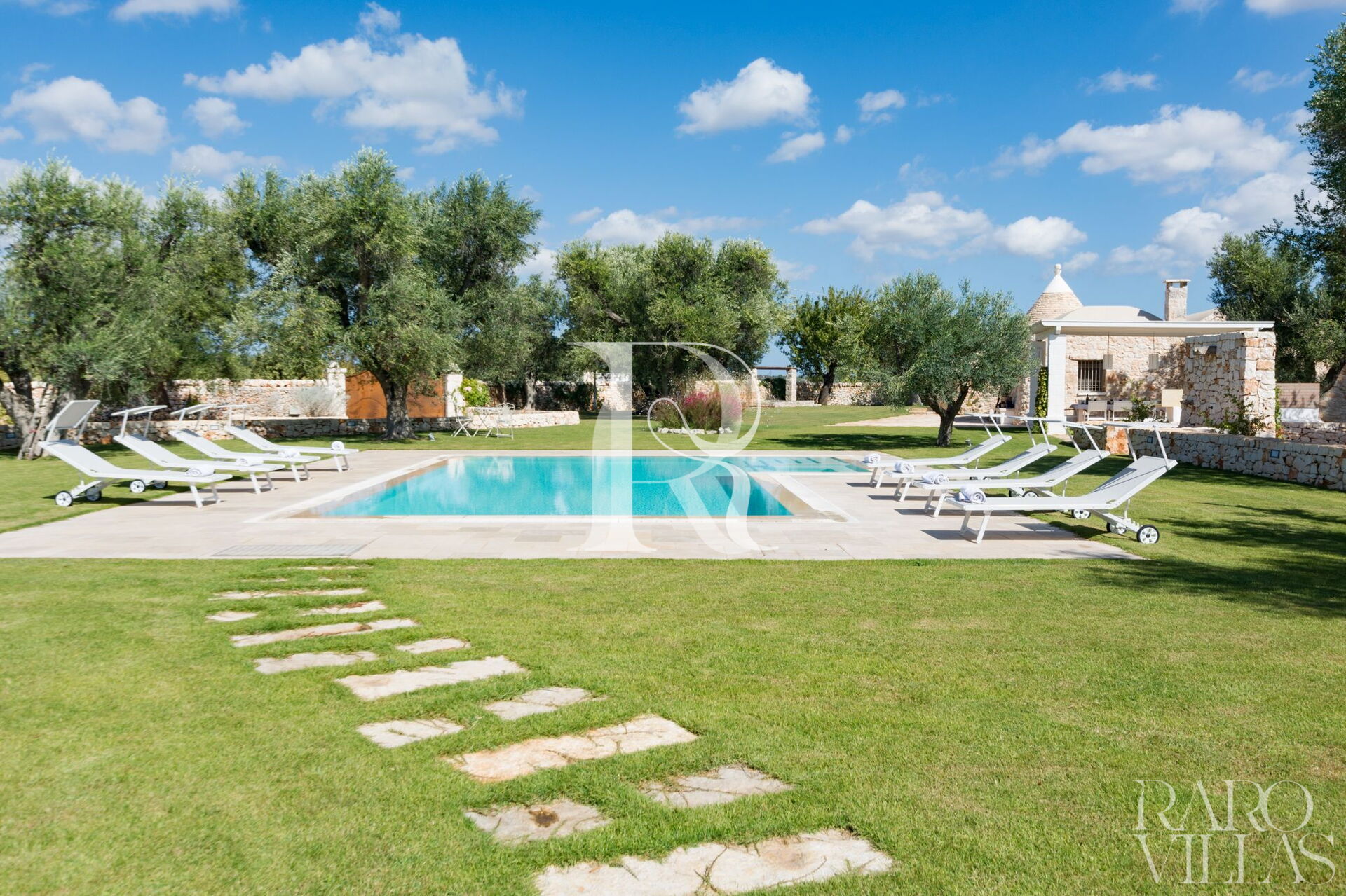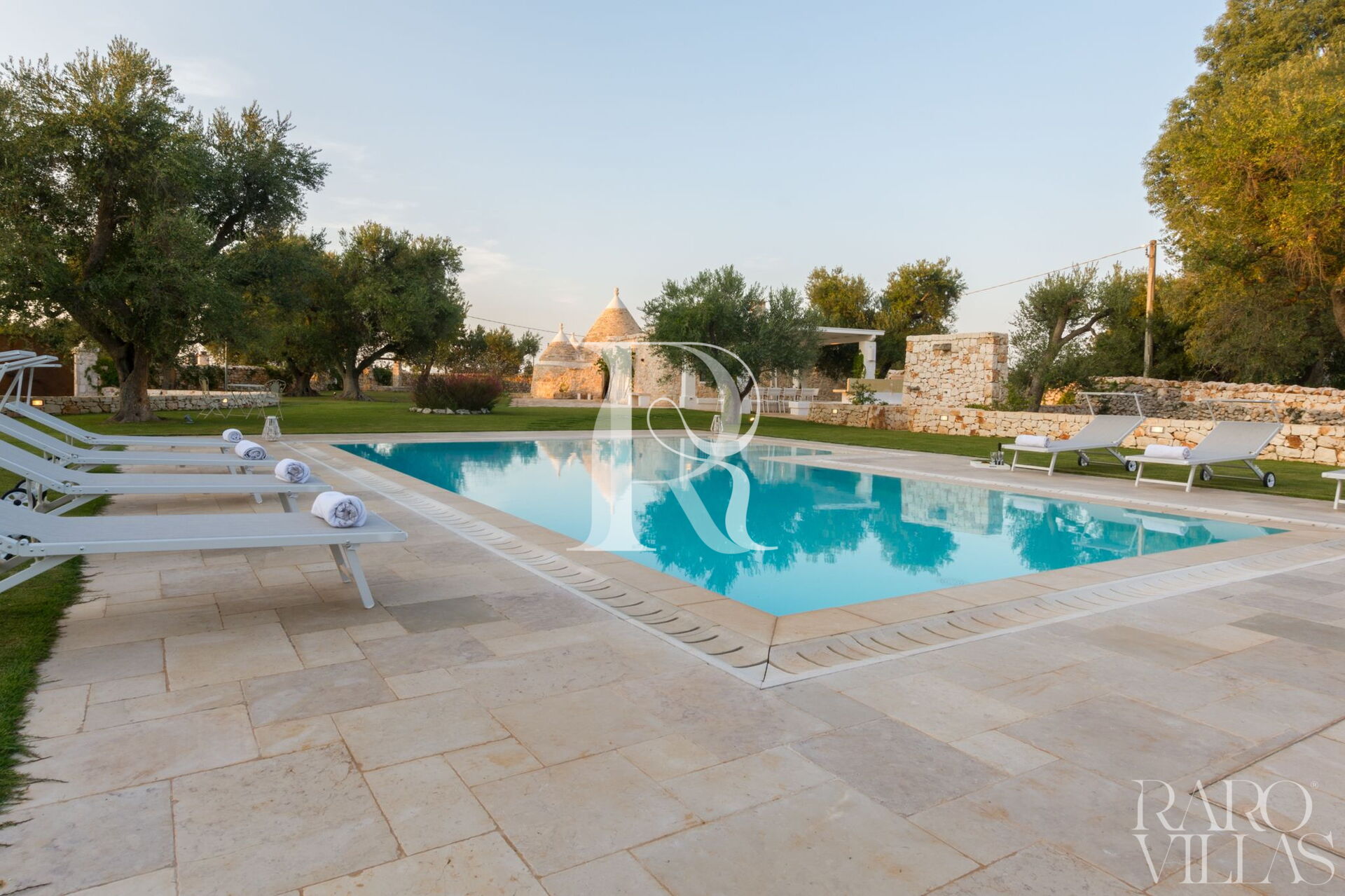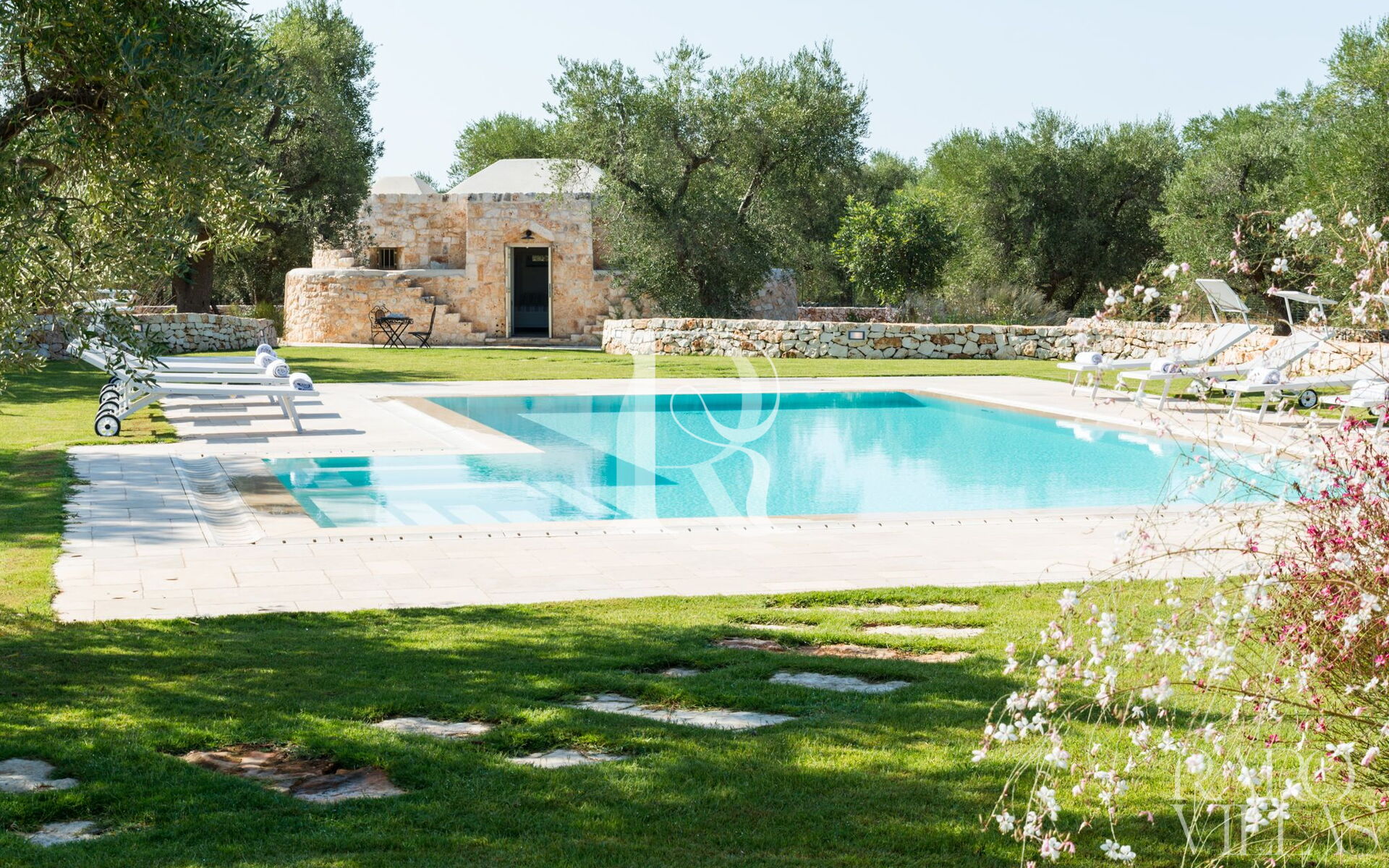 Circondata da diversi ulivi secolari che consentono l'ombra naturale se lo si desidera.