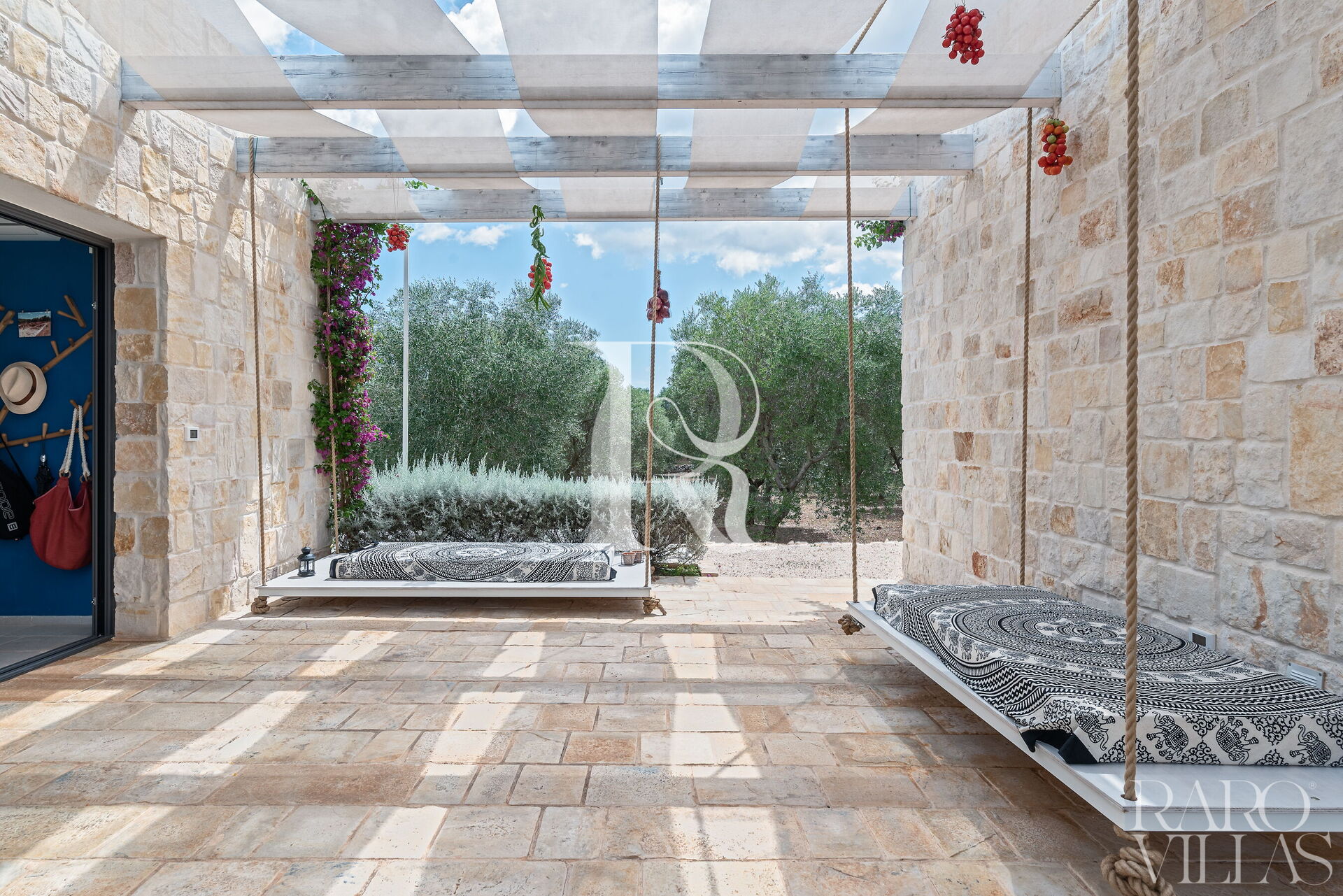 Nella proprietà vi sono diverse zone al fresco, impreziosite da numerose sedute in sedia e divanetti, alcuni dei quali sospesi ad altalena.