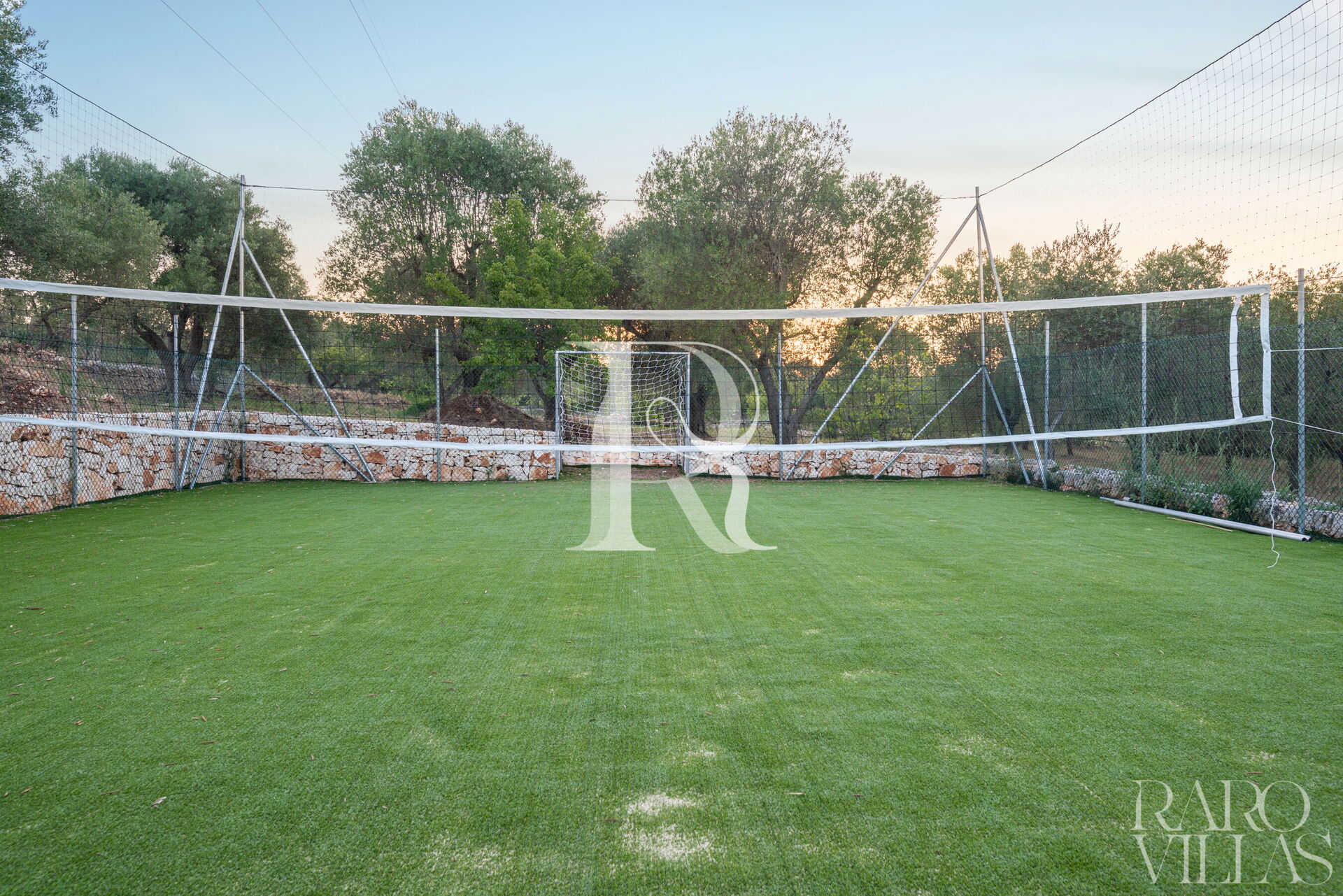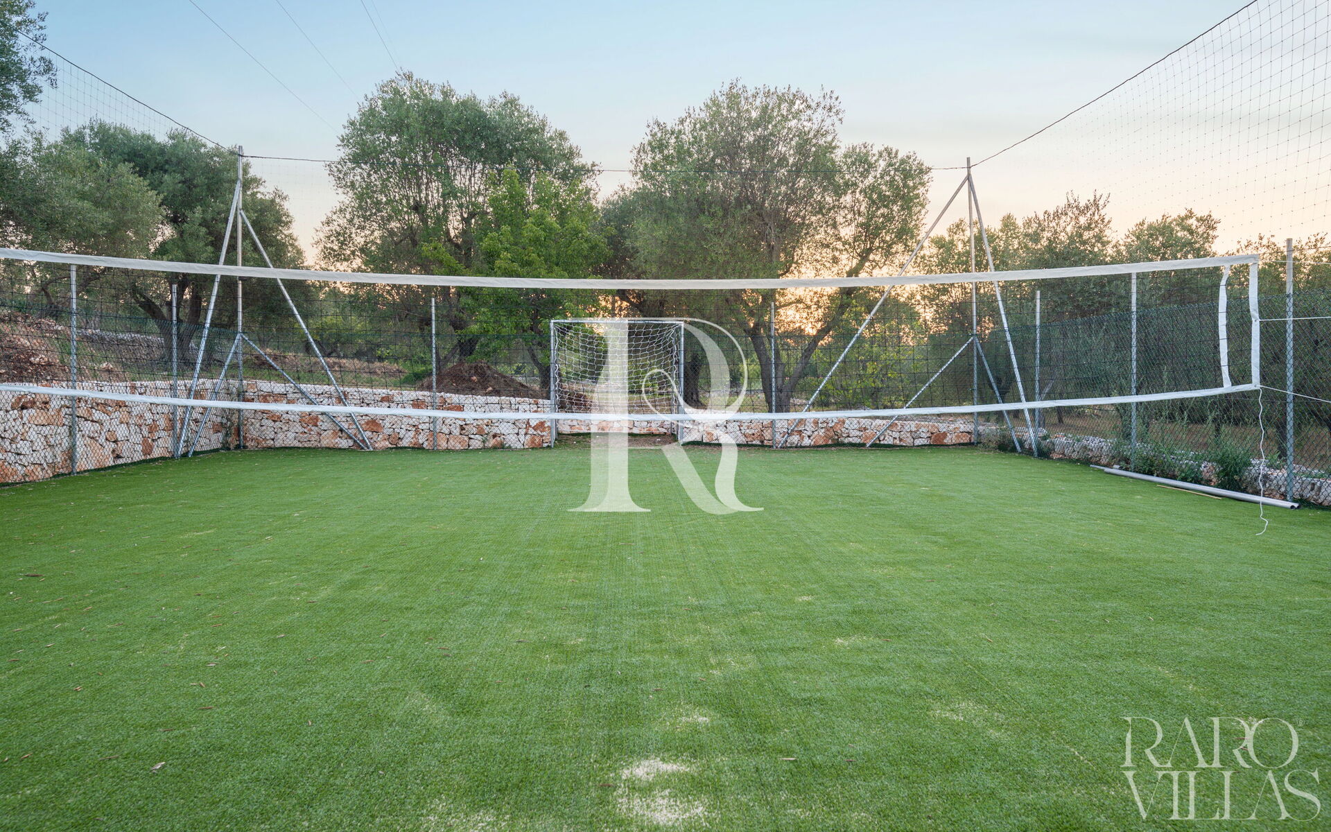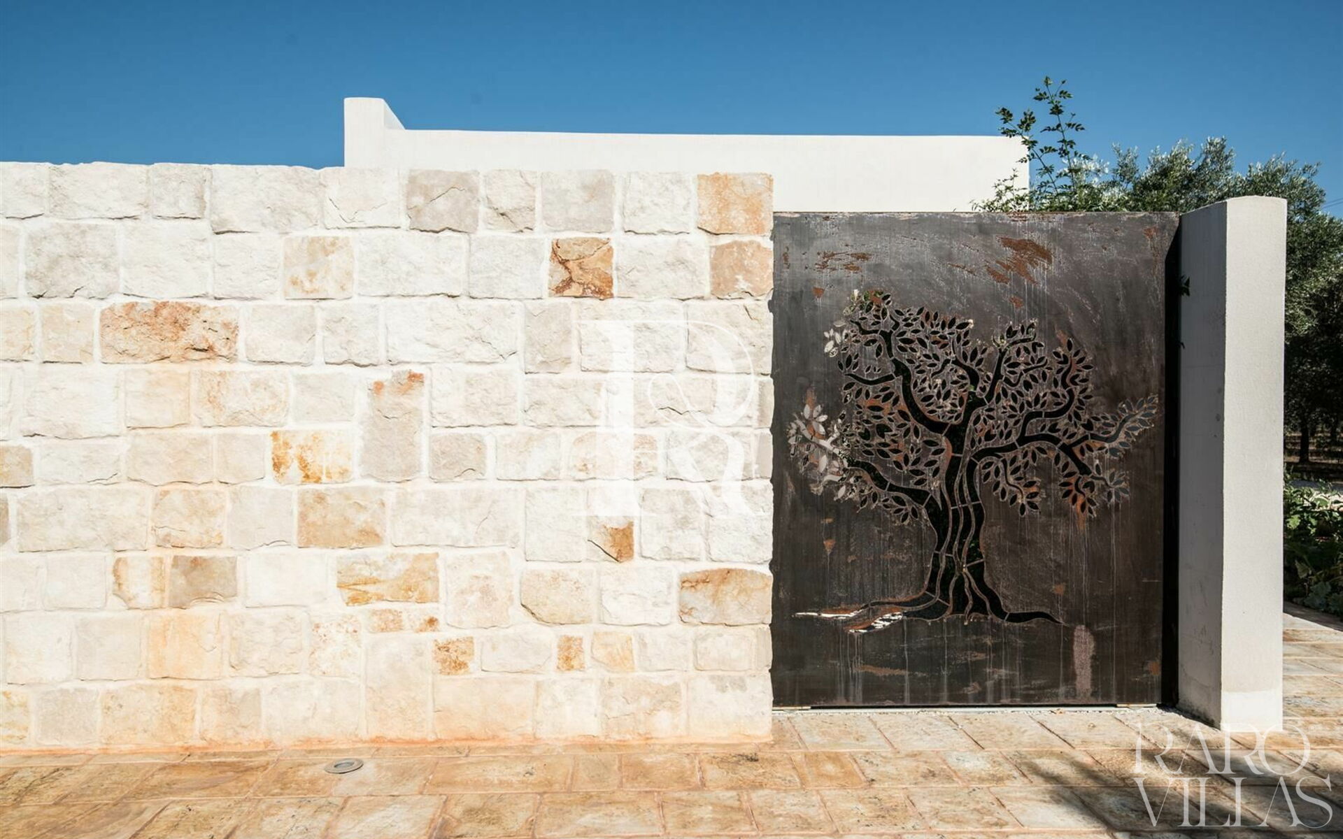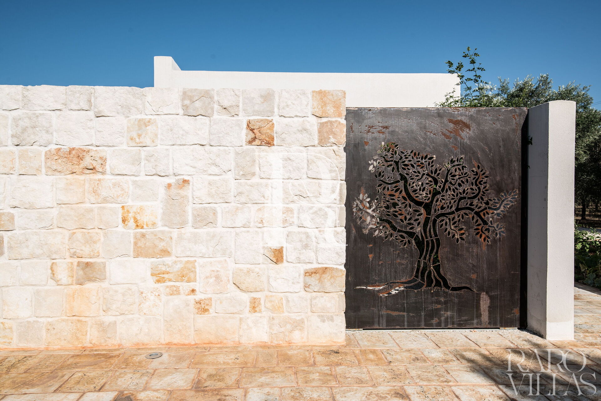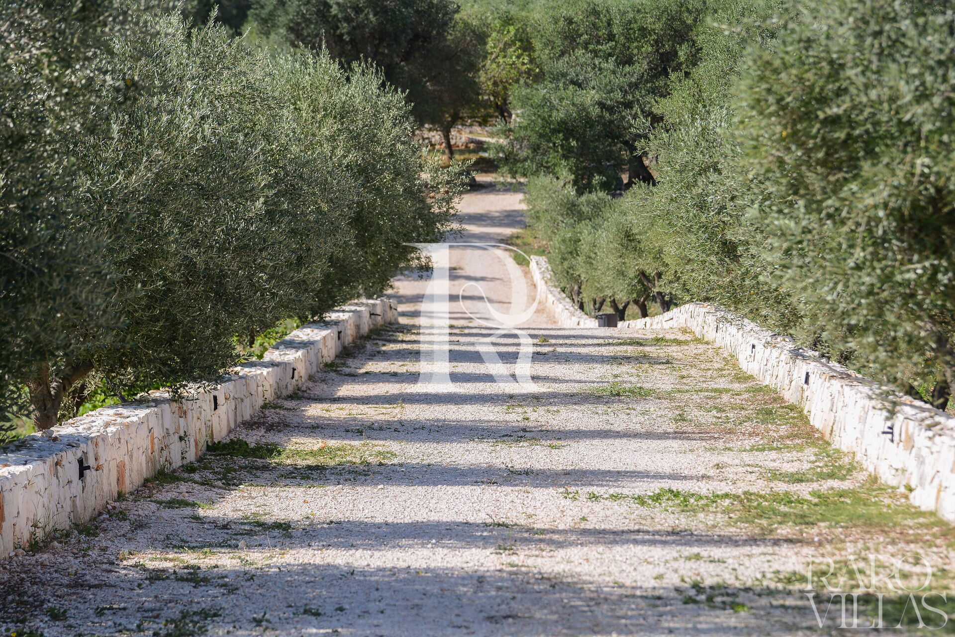 L’ingresso in villa avviene dal cancello elettrico posto a circa 300 mt dalla struttura. Villa Badessa si trova in posizione dominante con vista delle campagne della Valle D’Itria, ed intorno ad essa prevale il verde del prato inglese e dei maestosi alberi di olive.