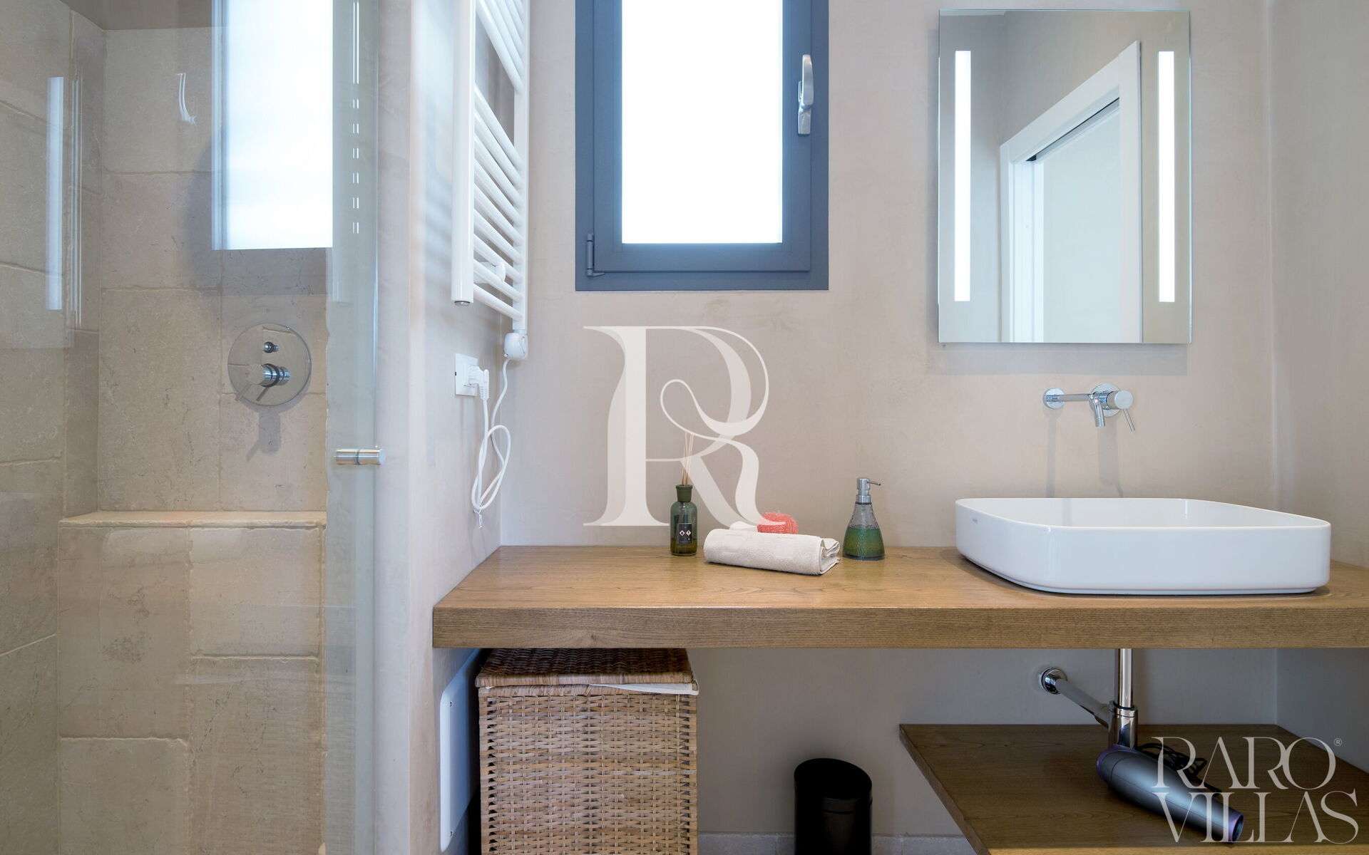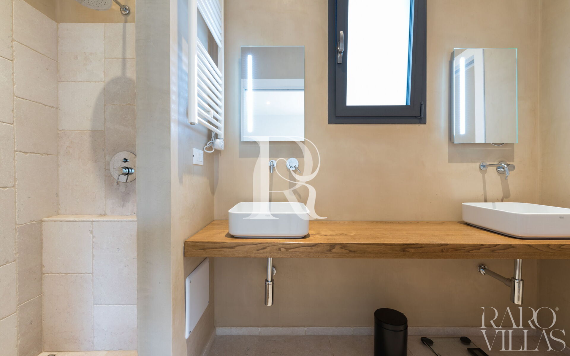 Ciascuna camera della zona moderna ha il bagno completo di doppio lavabo e specchi, wc, bidet, doccia interno ad esso collegato, ed è raffrescata con climatizzatori.