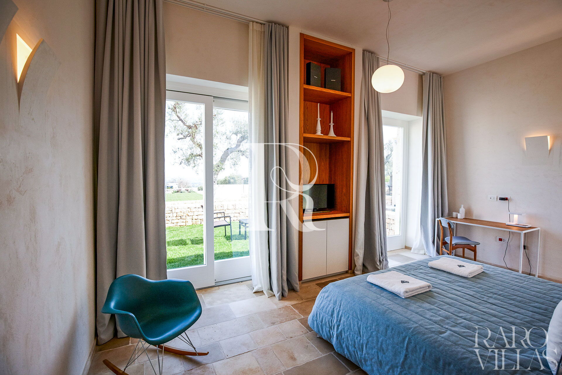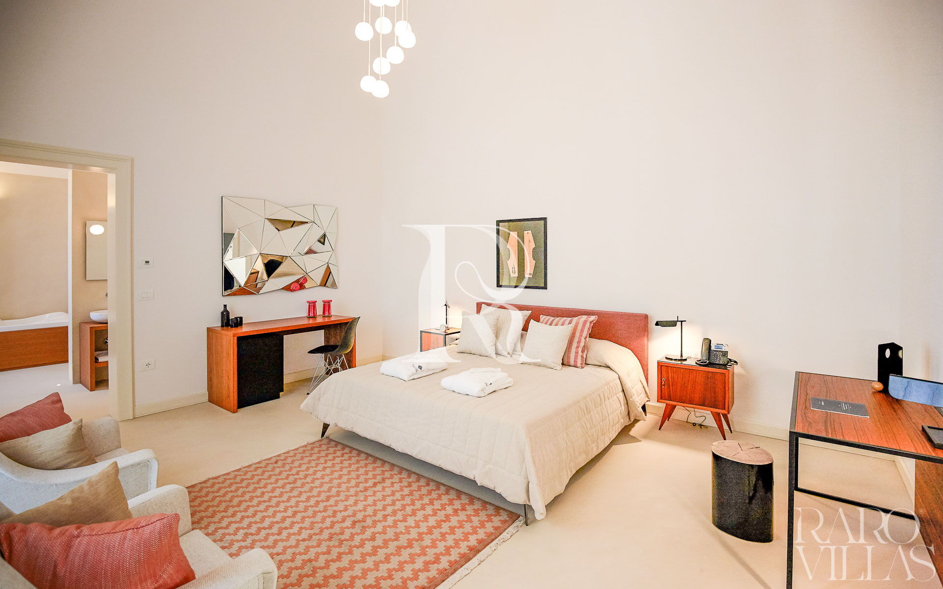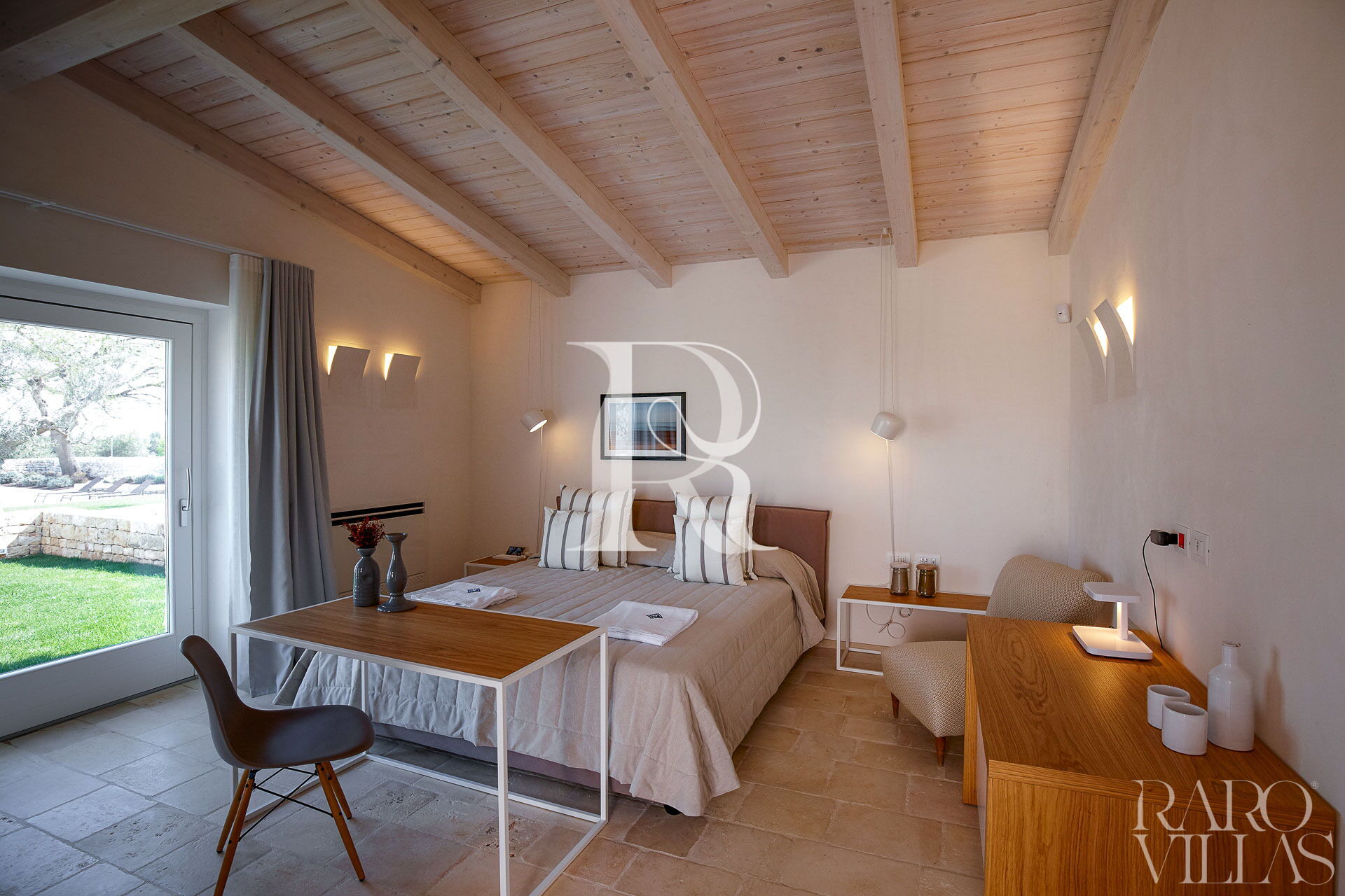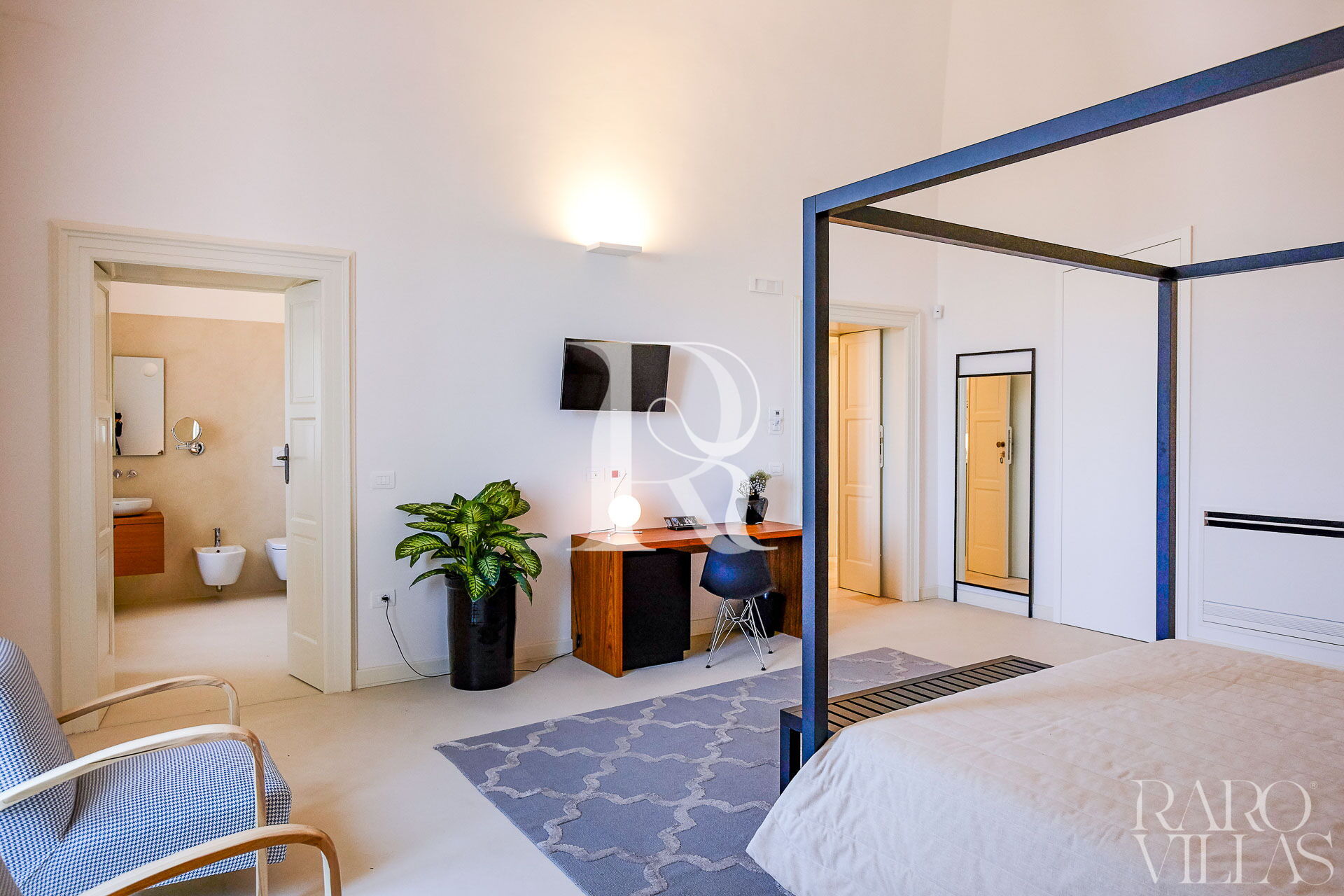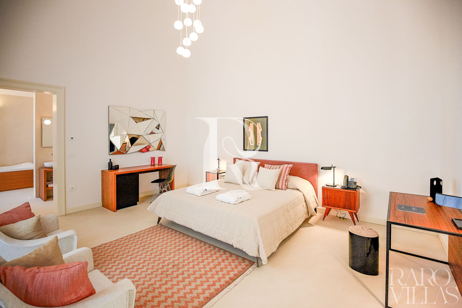 Situata a pochi passi dal corpo centrale della villa per assicurare riservatezza e tranquillità è caratterizzata da arredi eleganti e di design. Ha accesso al giardino privato.