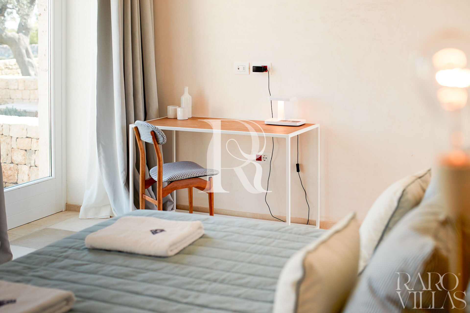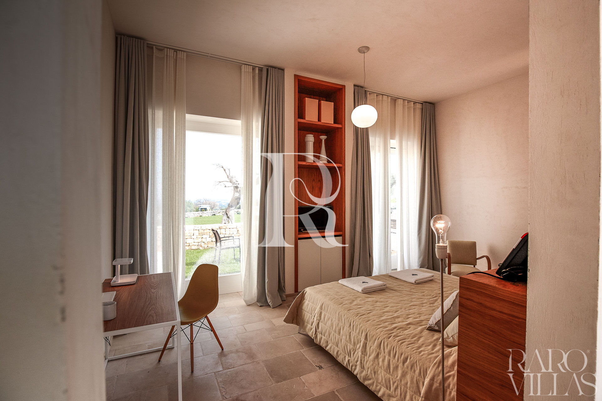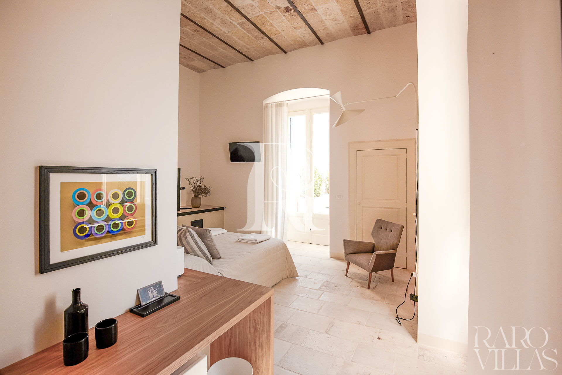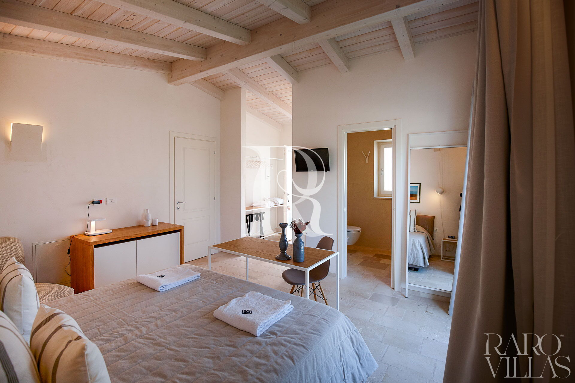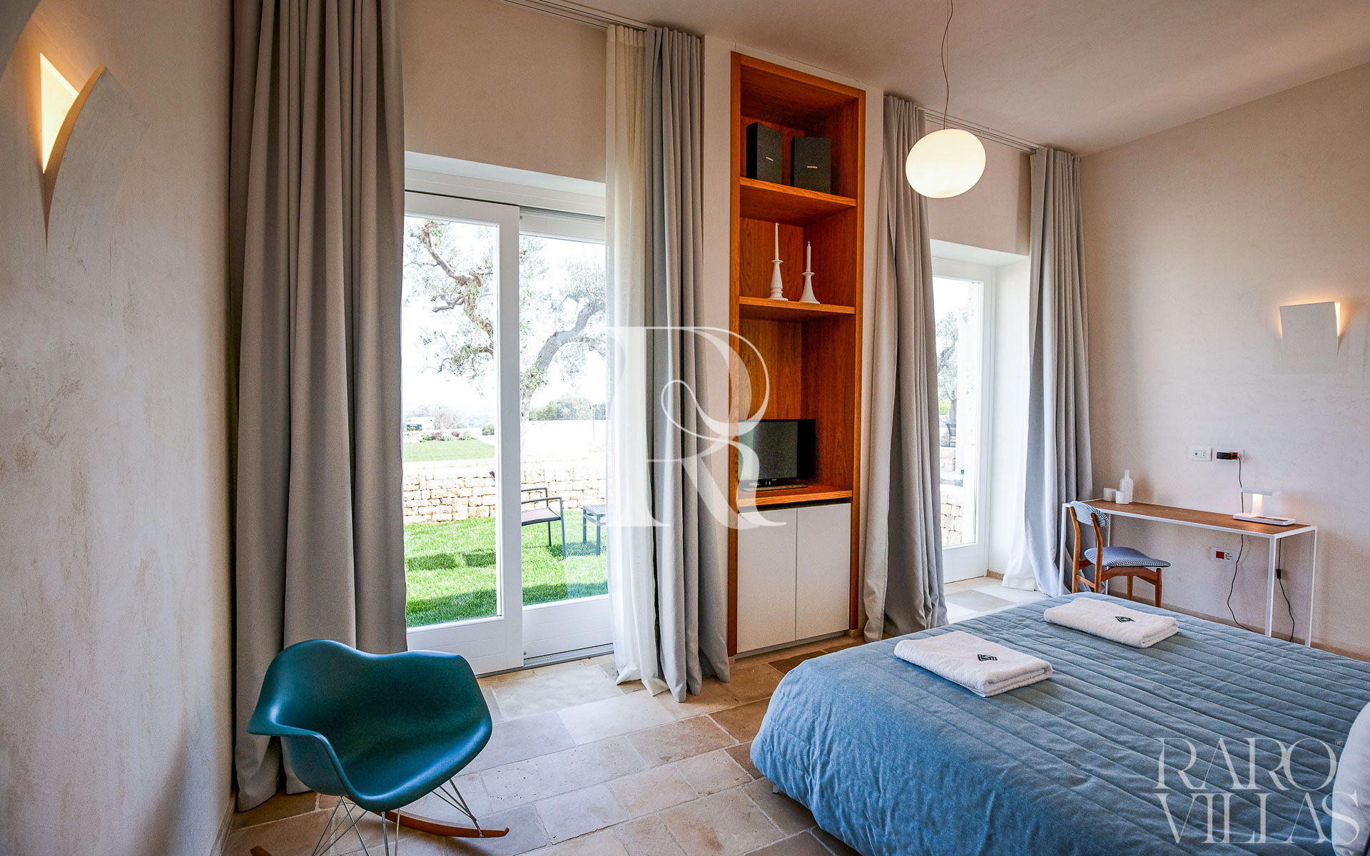 Situata a pochi passi dal corpo centrale della villa per assicurare riservatezza e tranquillità è caratterizzata da arredi eleganti e di design. Ha accesso al giardino privato.