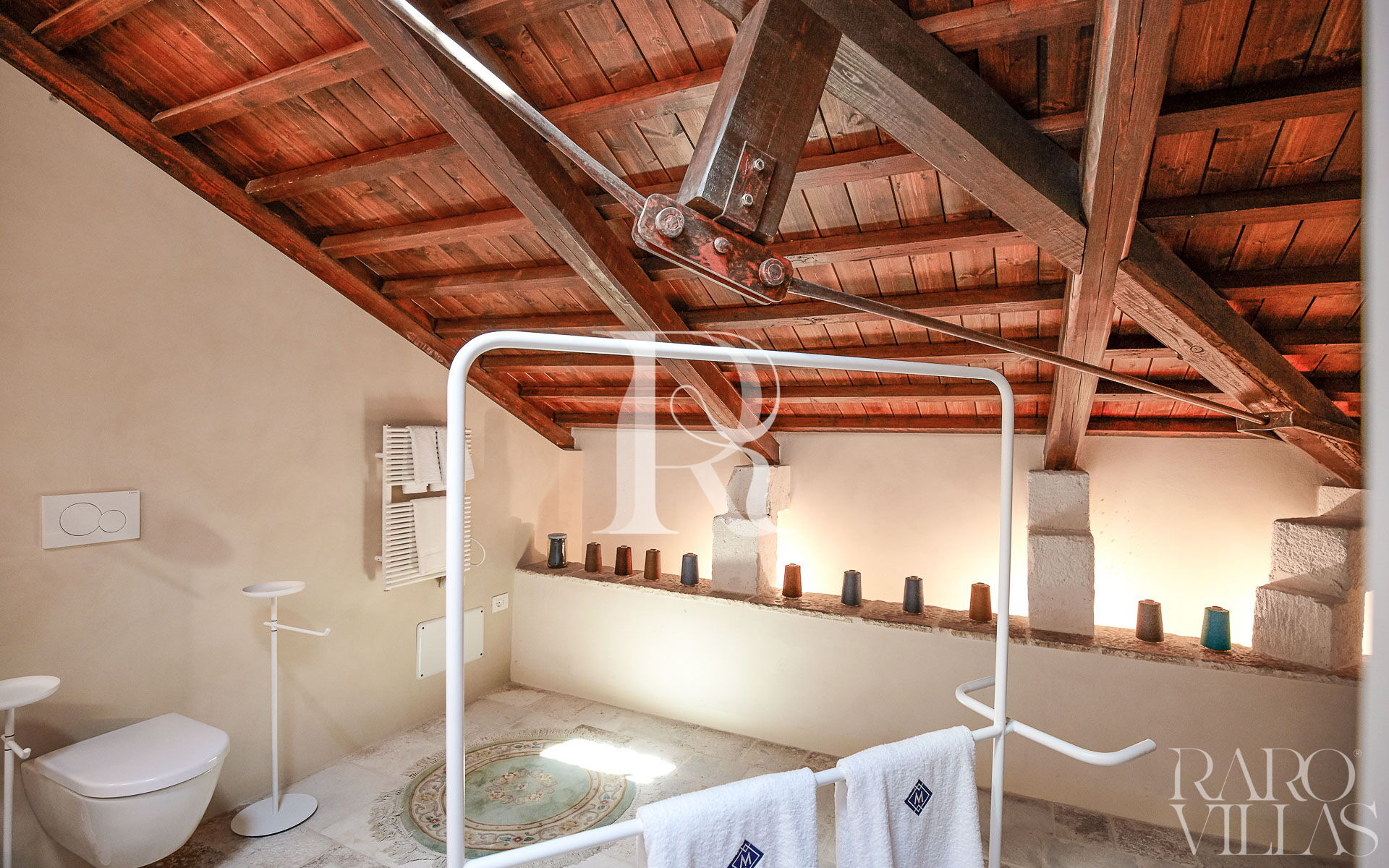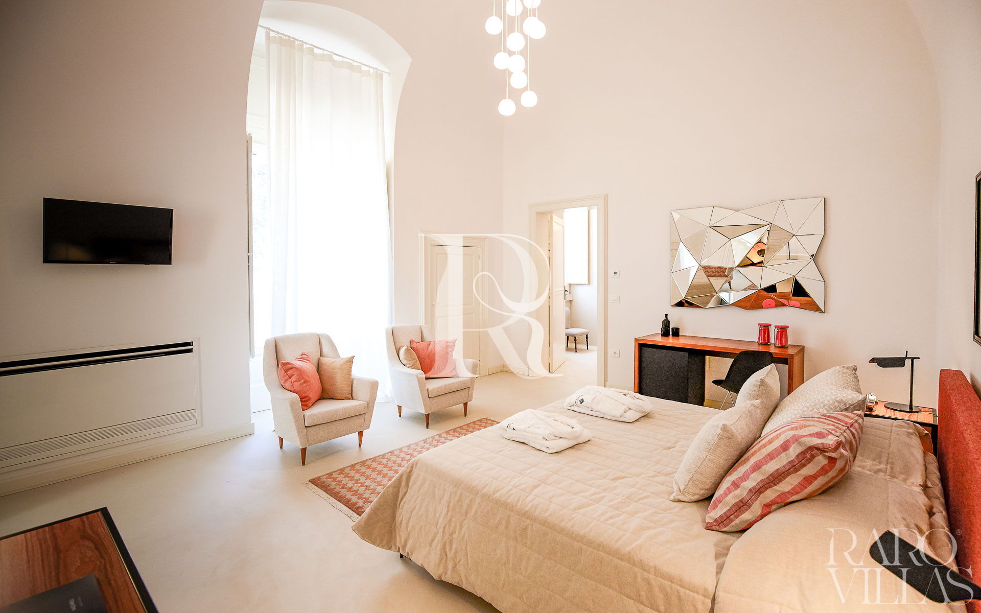 La Suite Royal è una meravigliosa suite matrimoniale che si trova nella villa padronale e ha un accesso esclusivo alla torre panoramica del Resort, spazio più alto della villa.