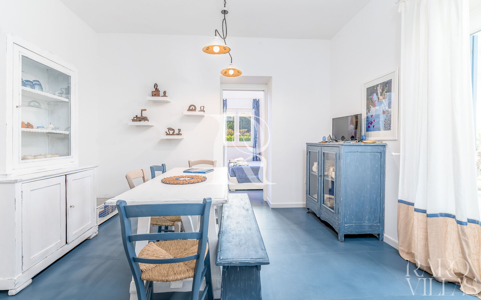 La villa è composta da 2 camere da letto con letti matrimoniali e bagno, una cucina ben attrezzata con forno e lavastoviglie, ed una sala da pranzo con tavolo e poltrone.