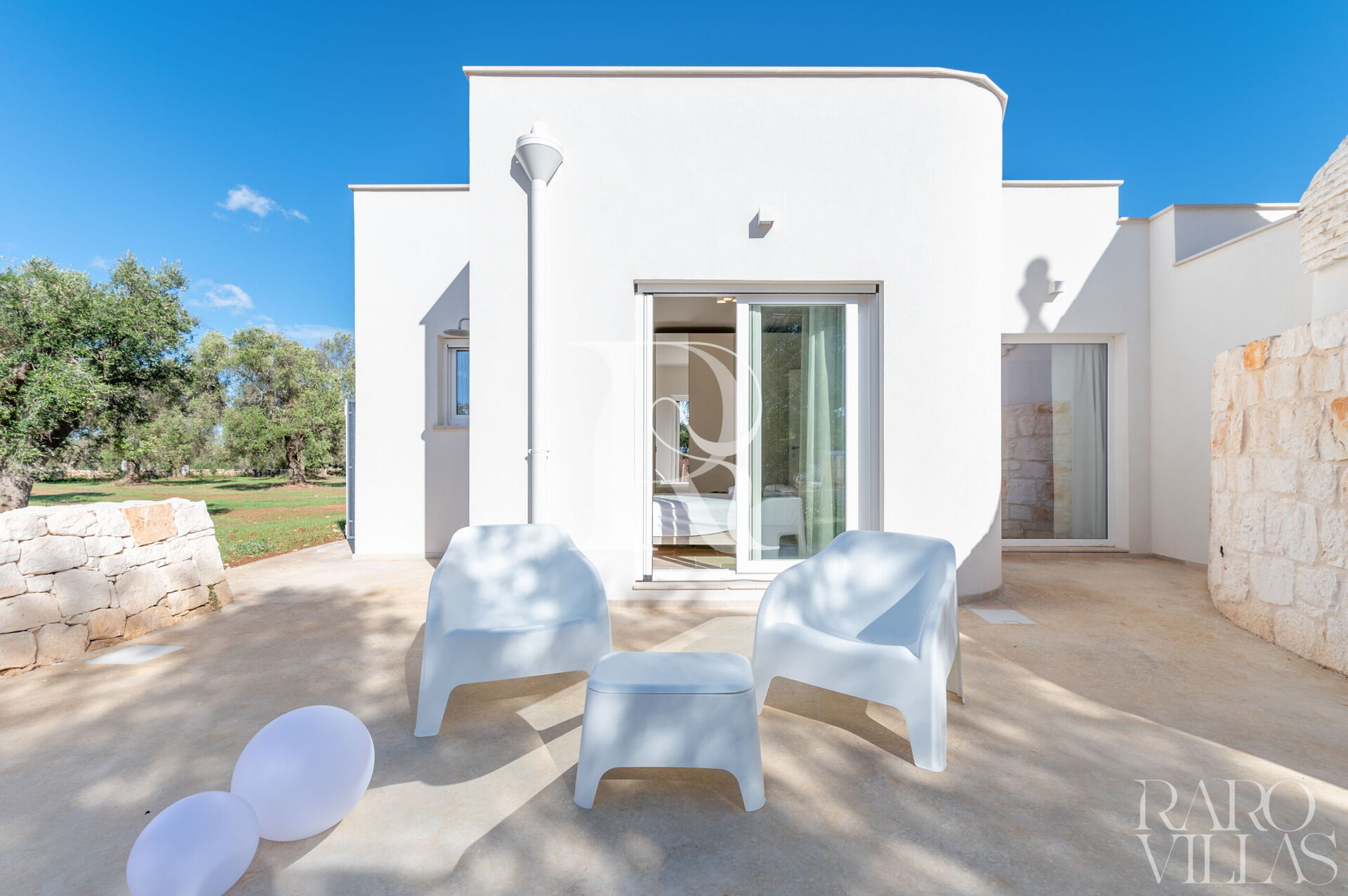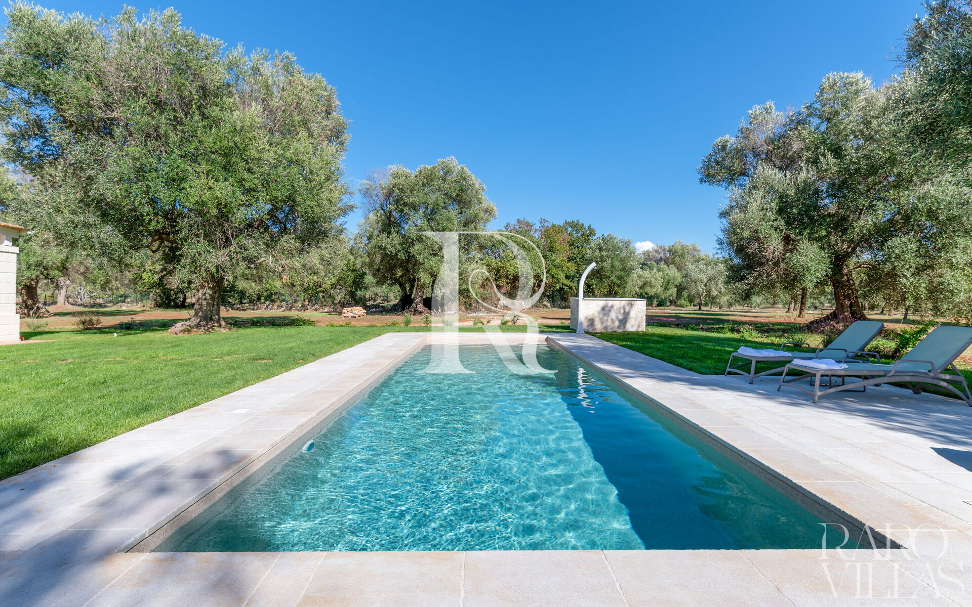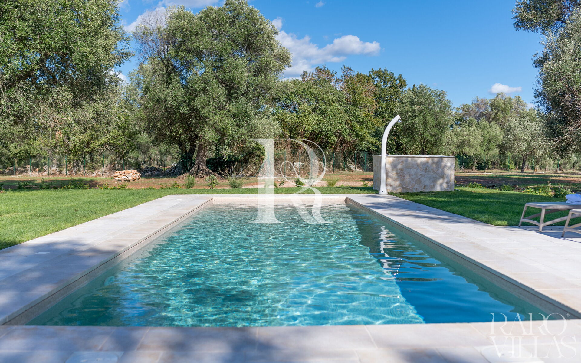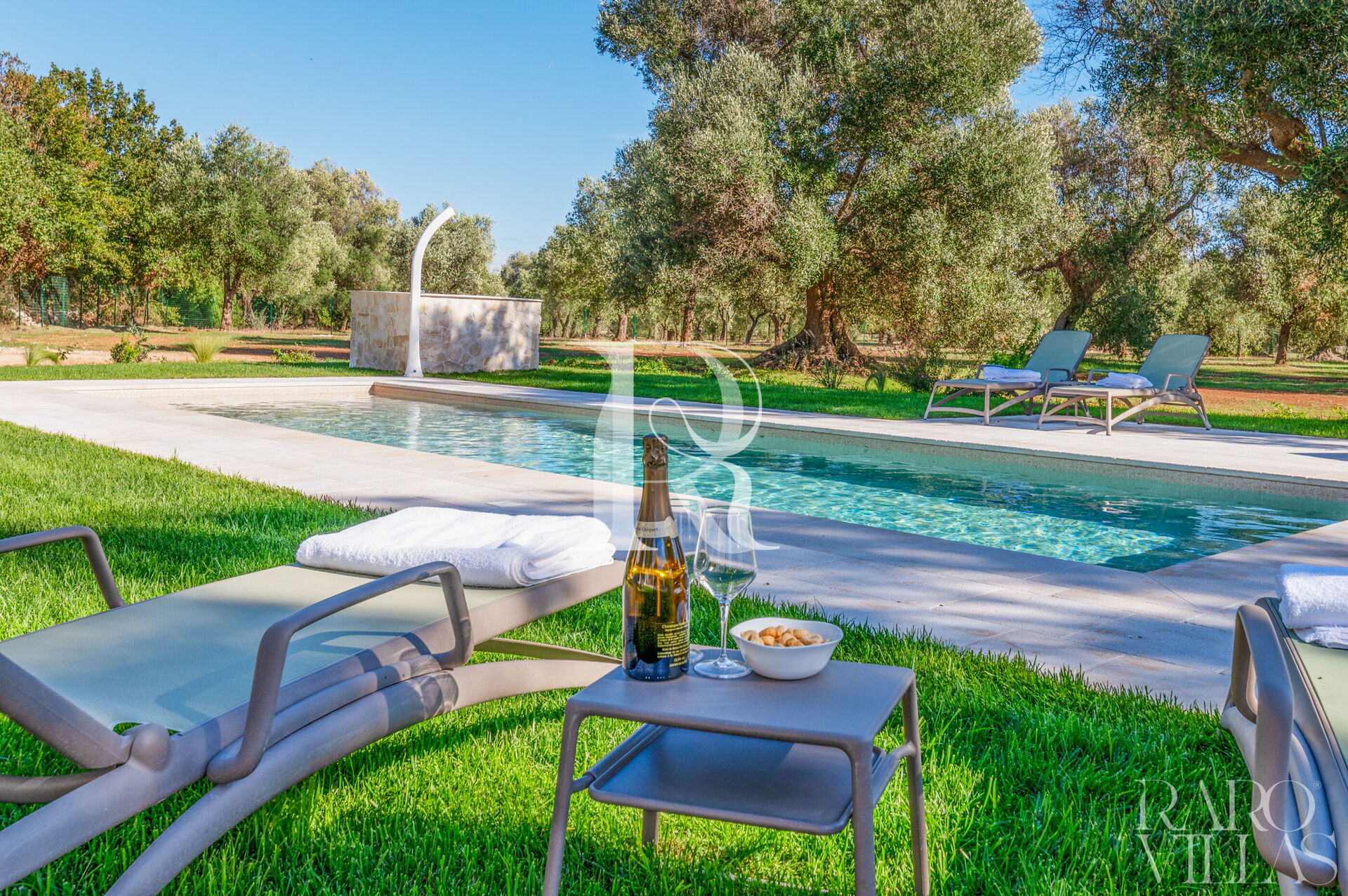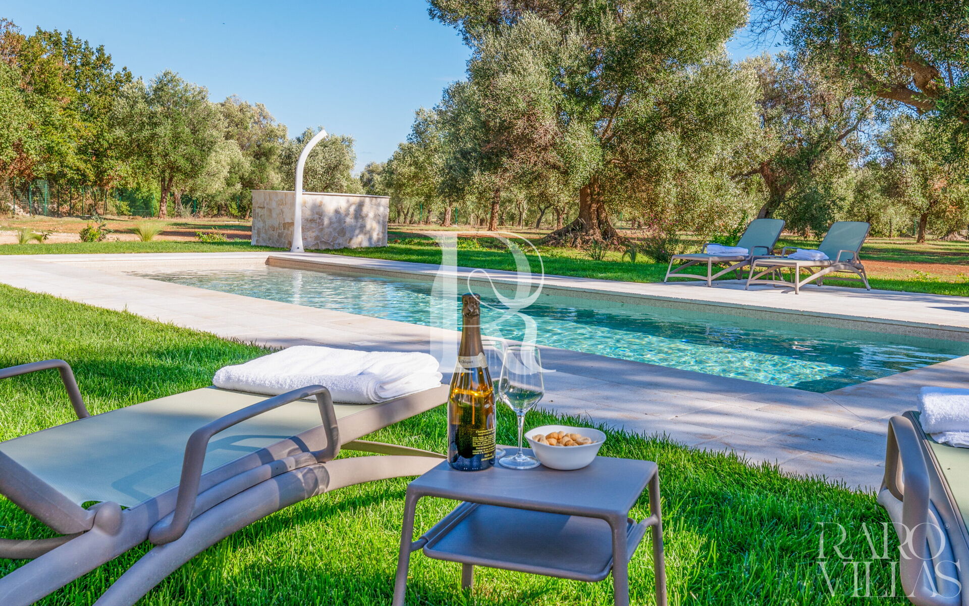 - Piscina privata: circondata da lettini prendisole, perfetta per rilassarsi sotto il sole pugliese.
