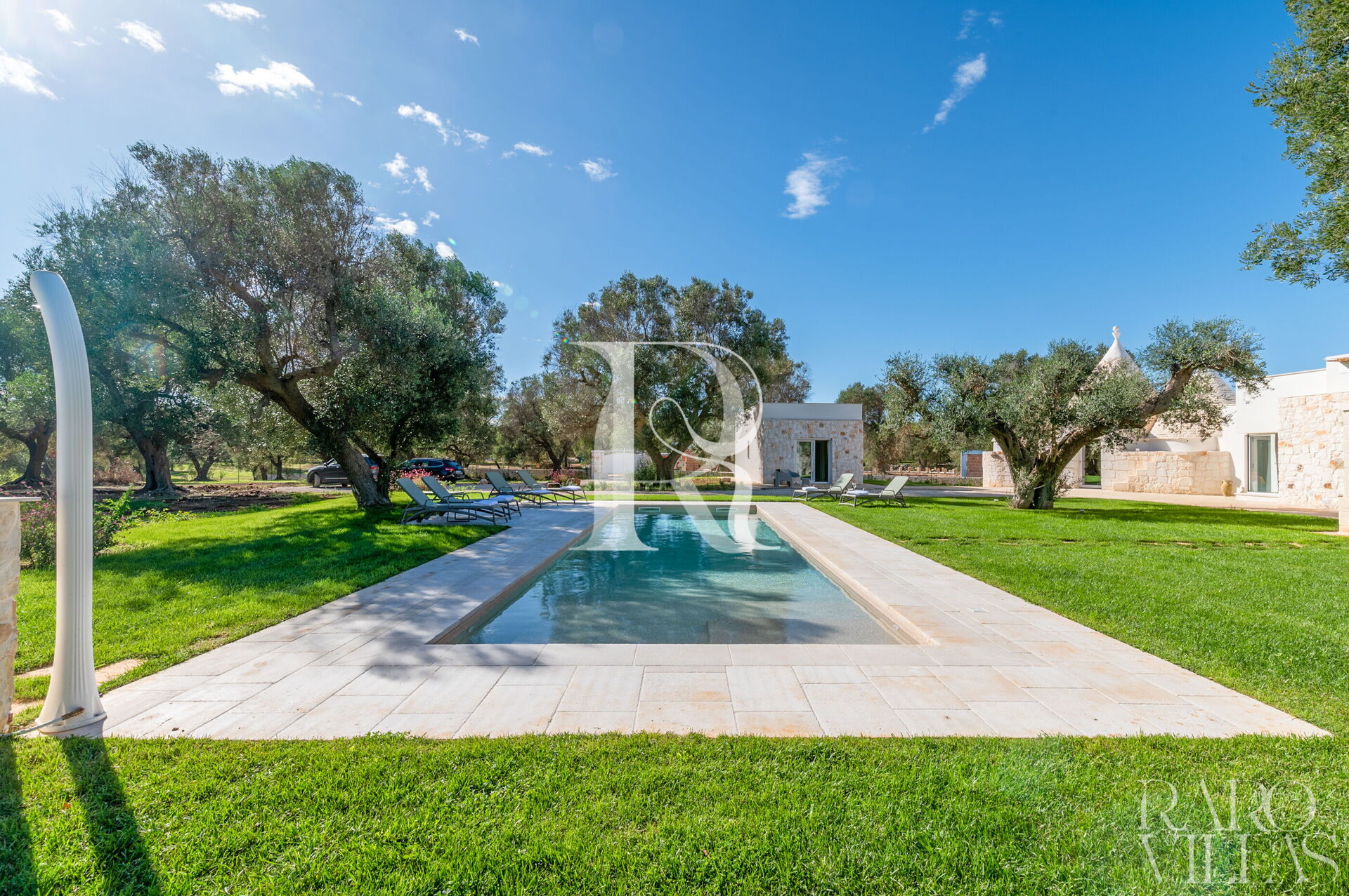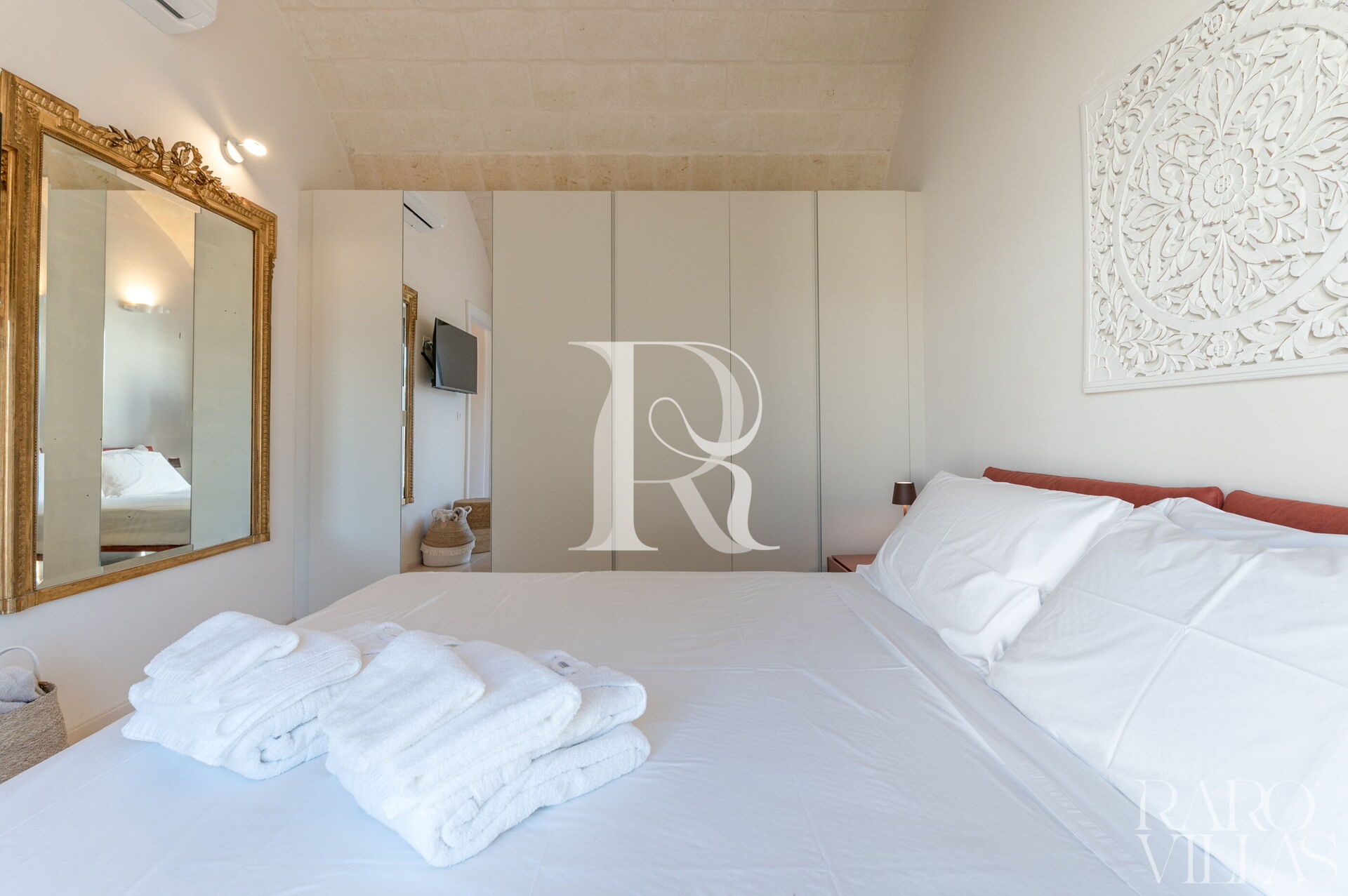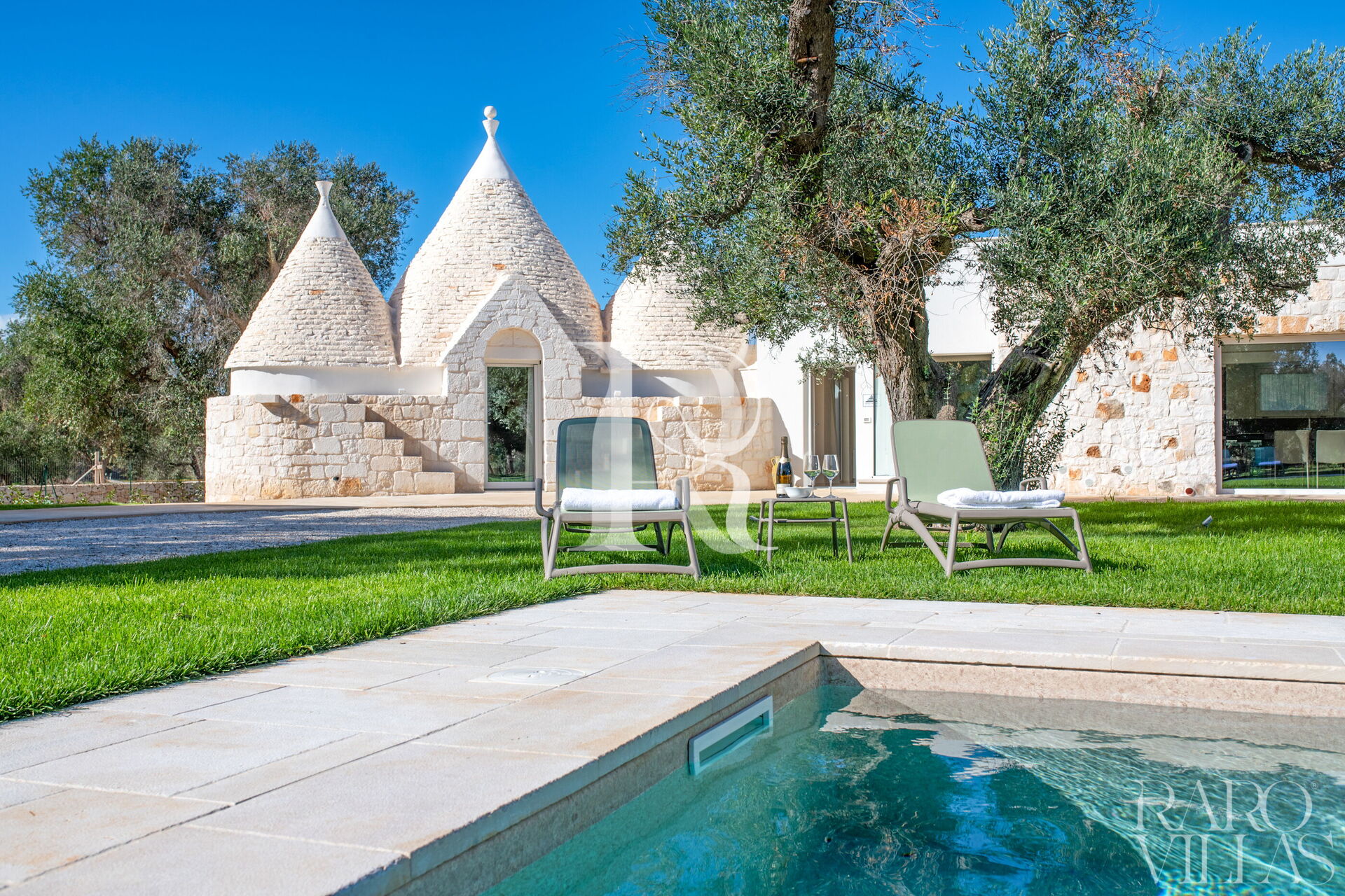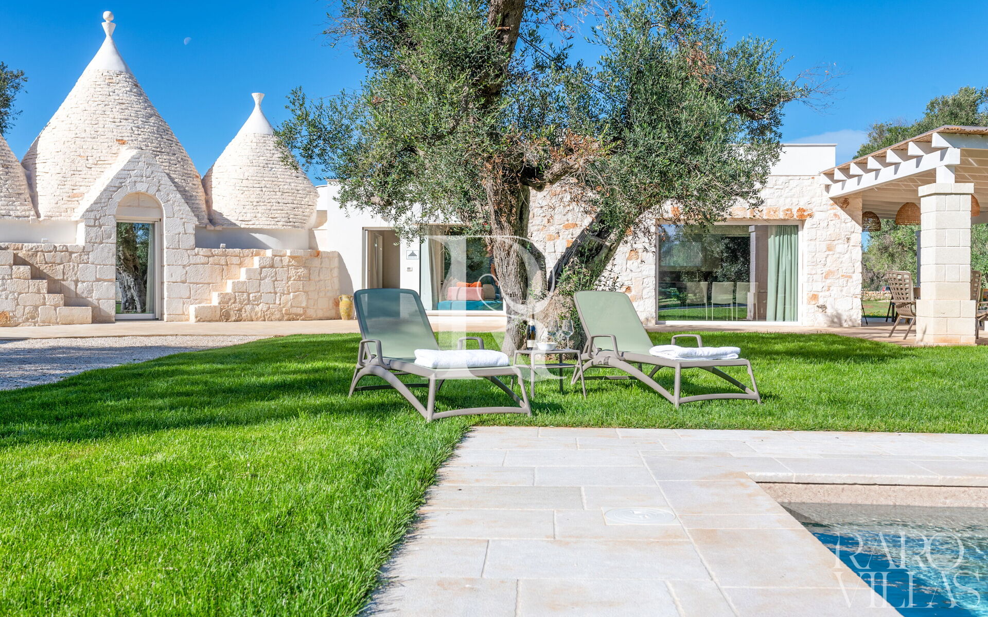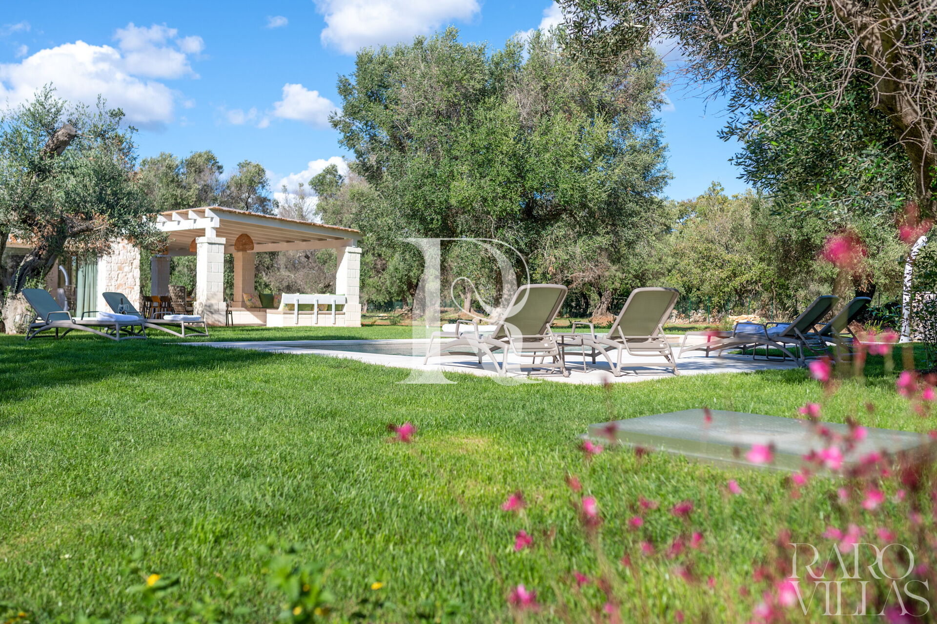 - Piscina privata: circondata da lettini prendisole, perfetta per rilassarsi sotto il sole pugliese.