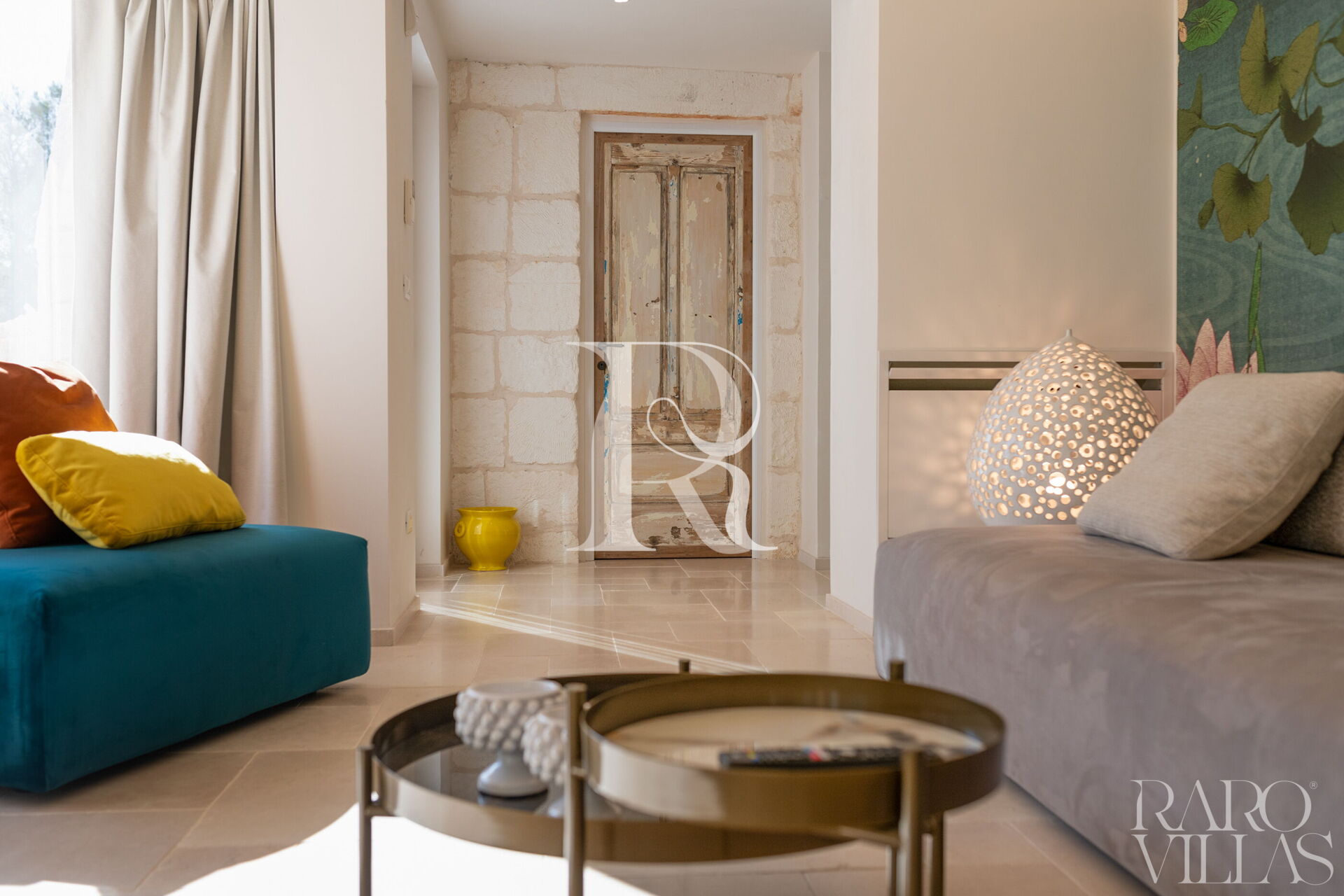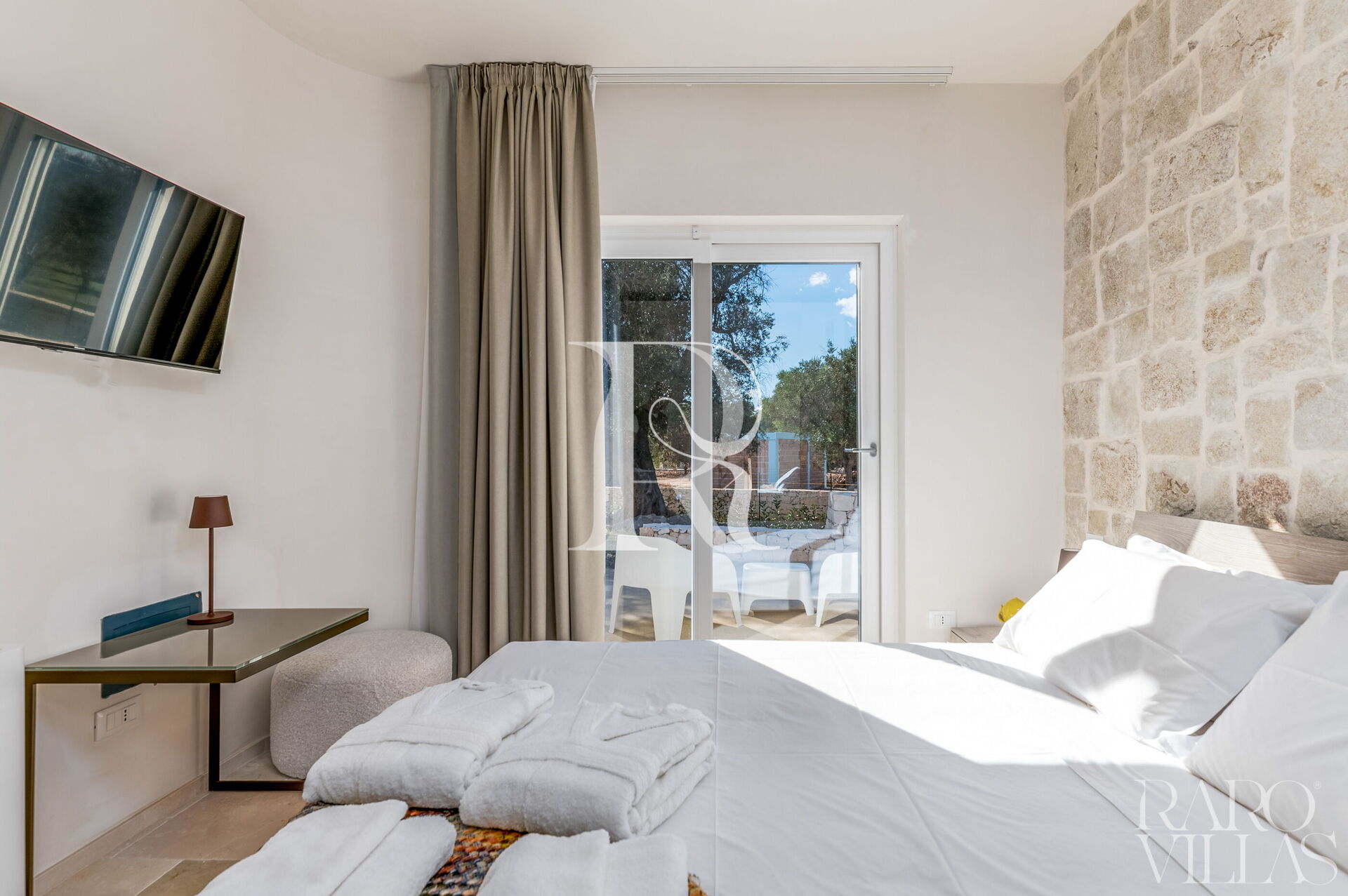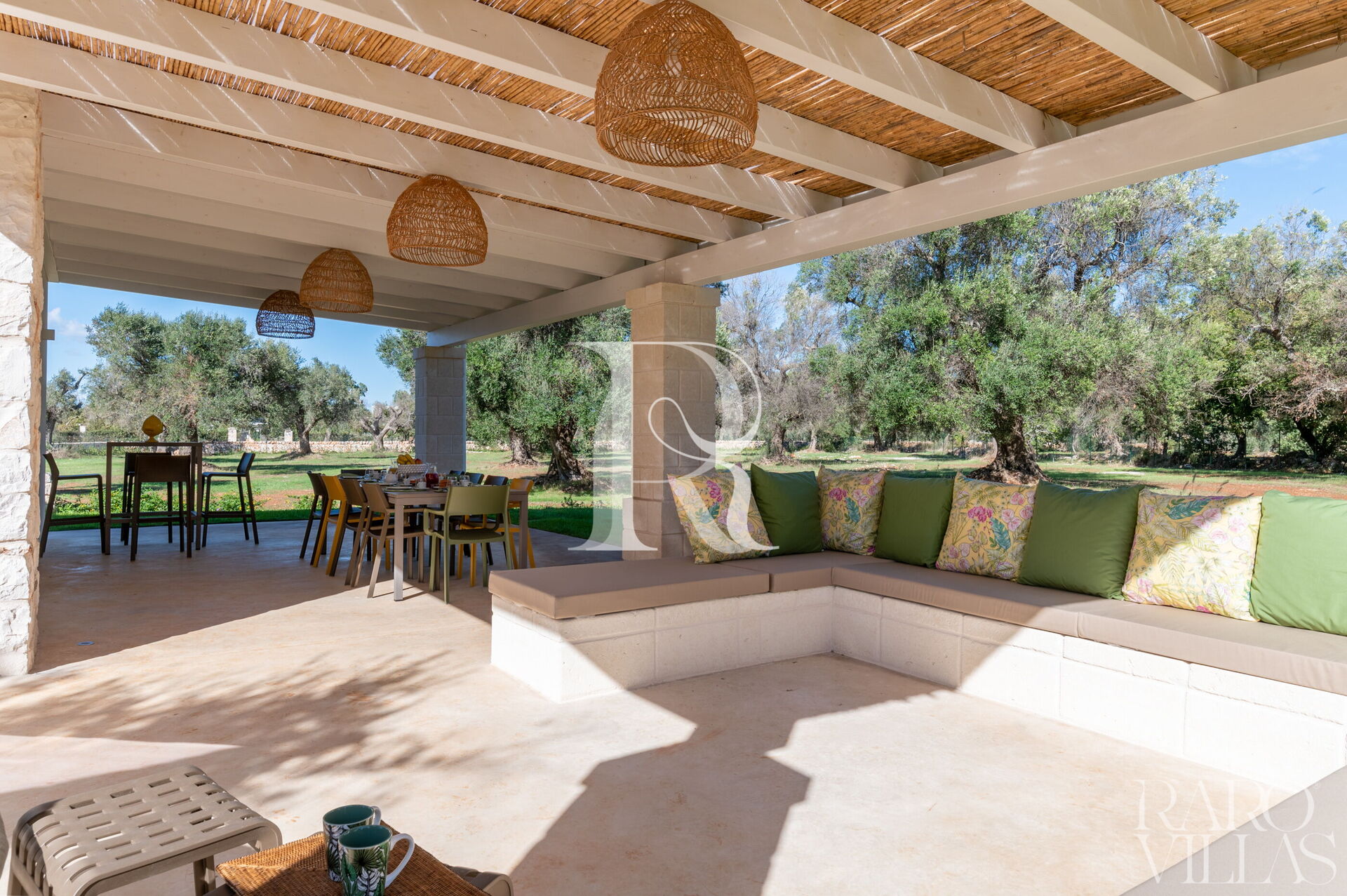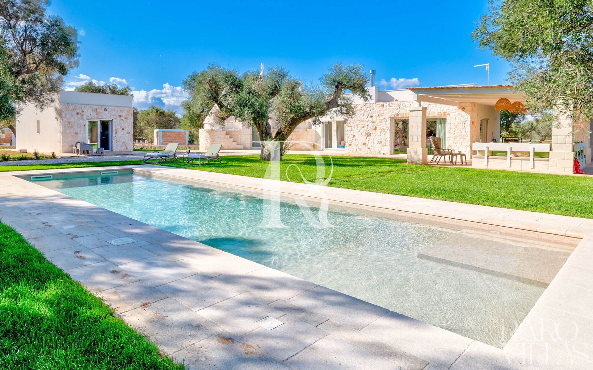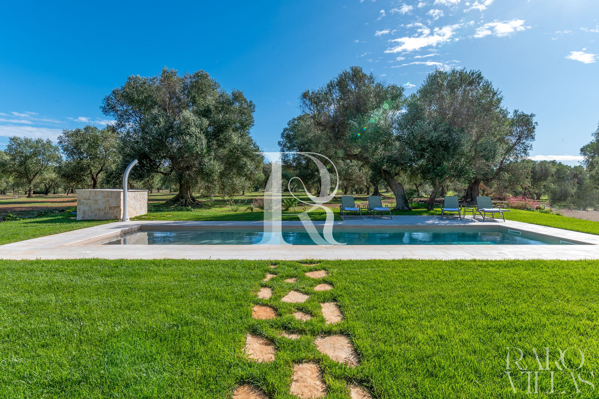 - Piscina privata: circondata da lettini prendisole, perfetta per rilassarsi sotto il sole pugliese.