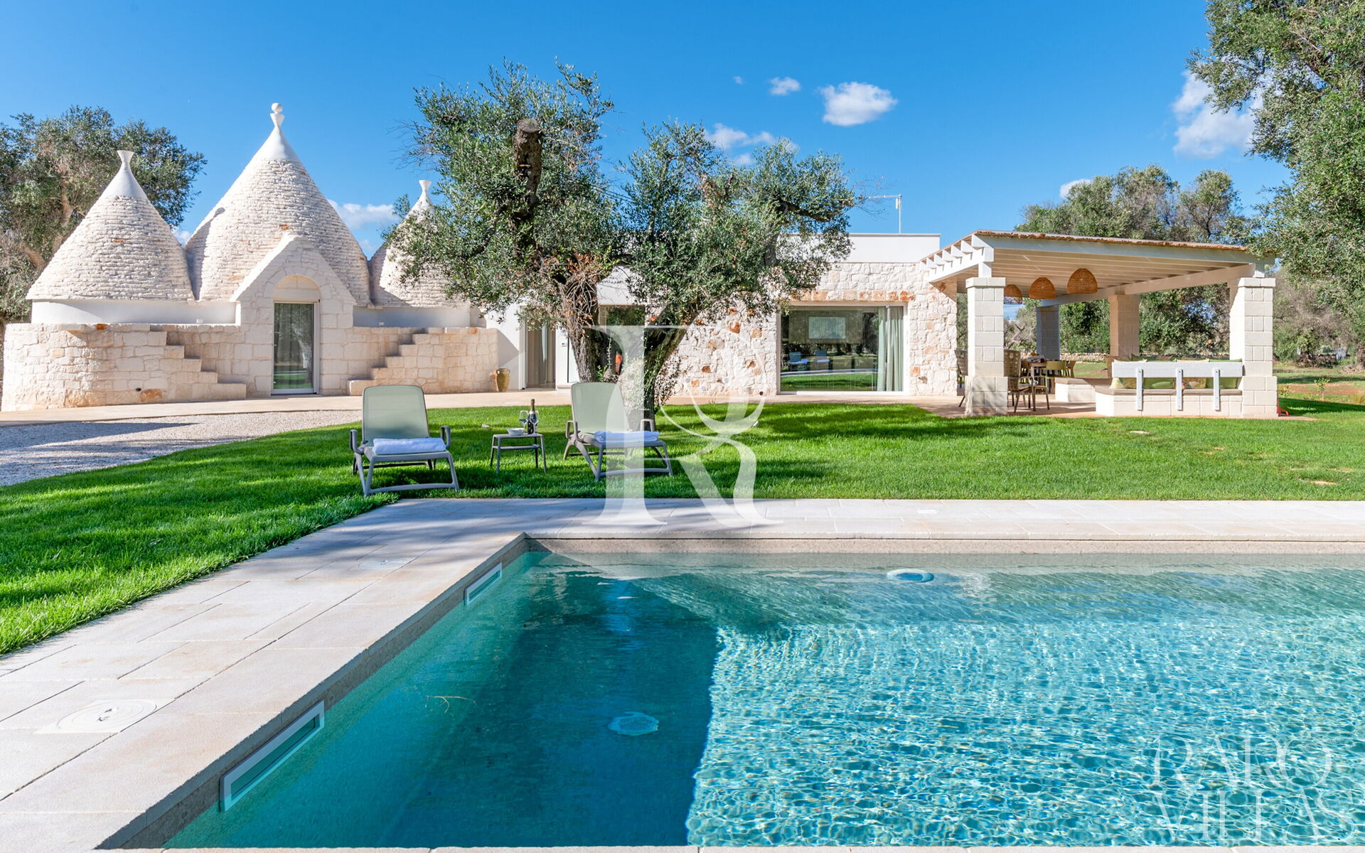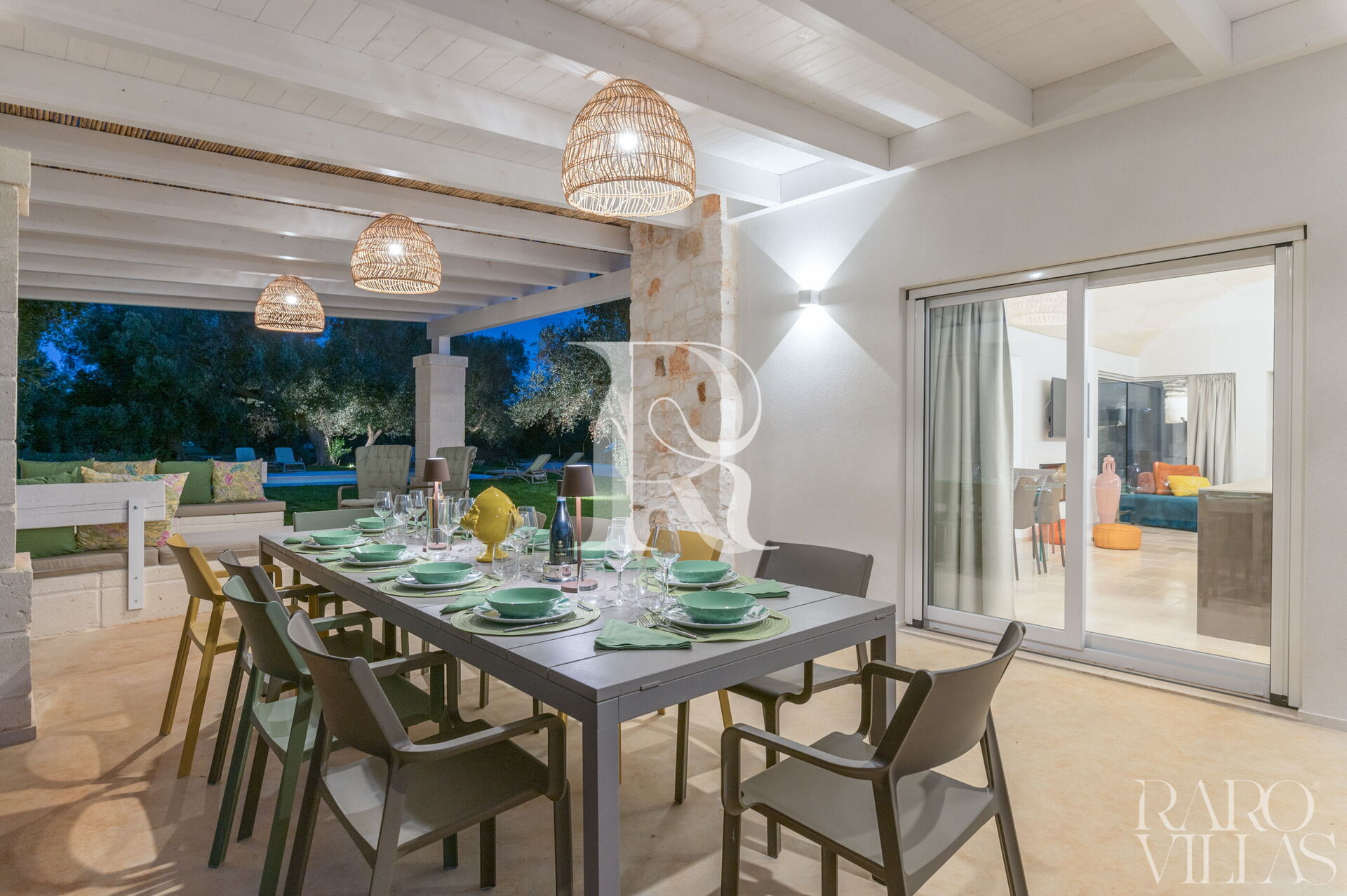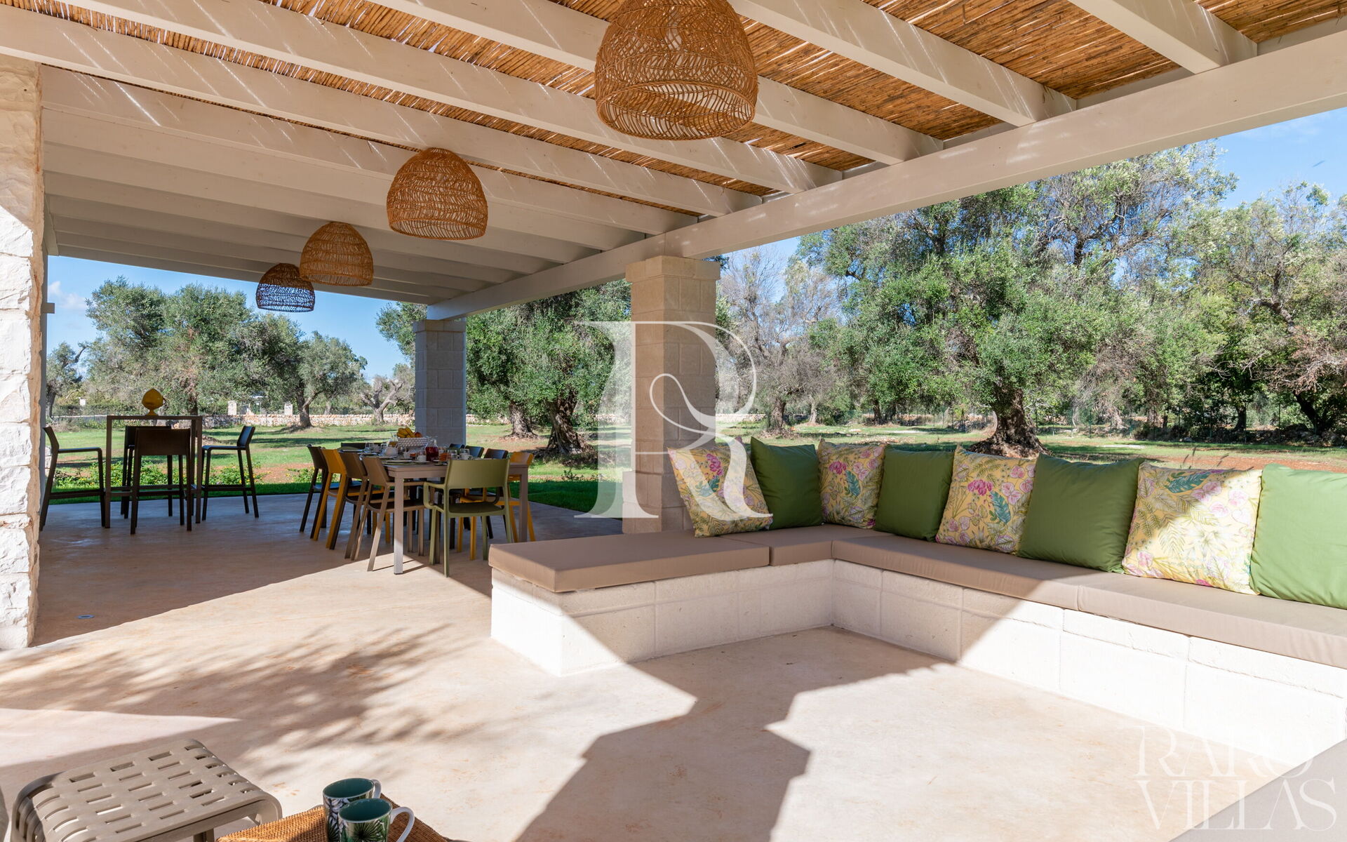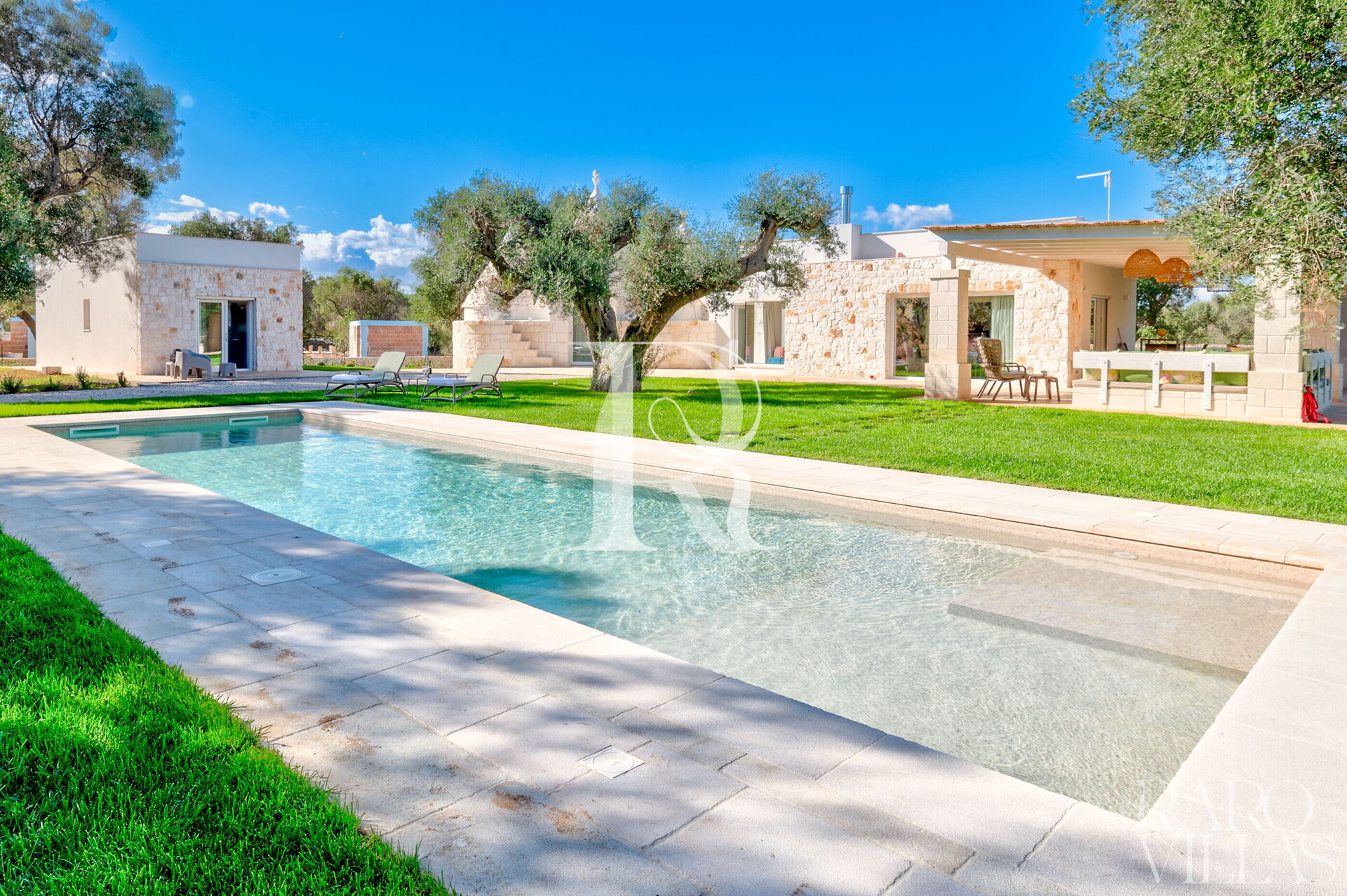 - Piscina privata: circondata da lettini prendisole, perfetta per rilassarsi sotto il sole pugliese.