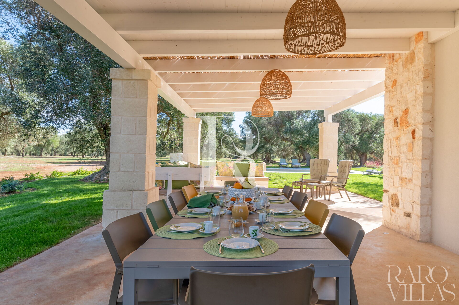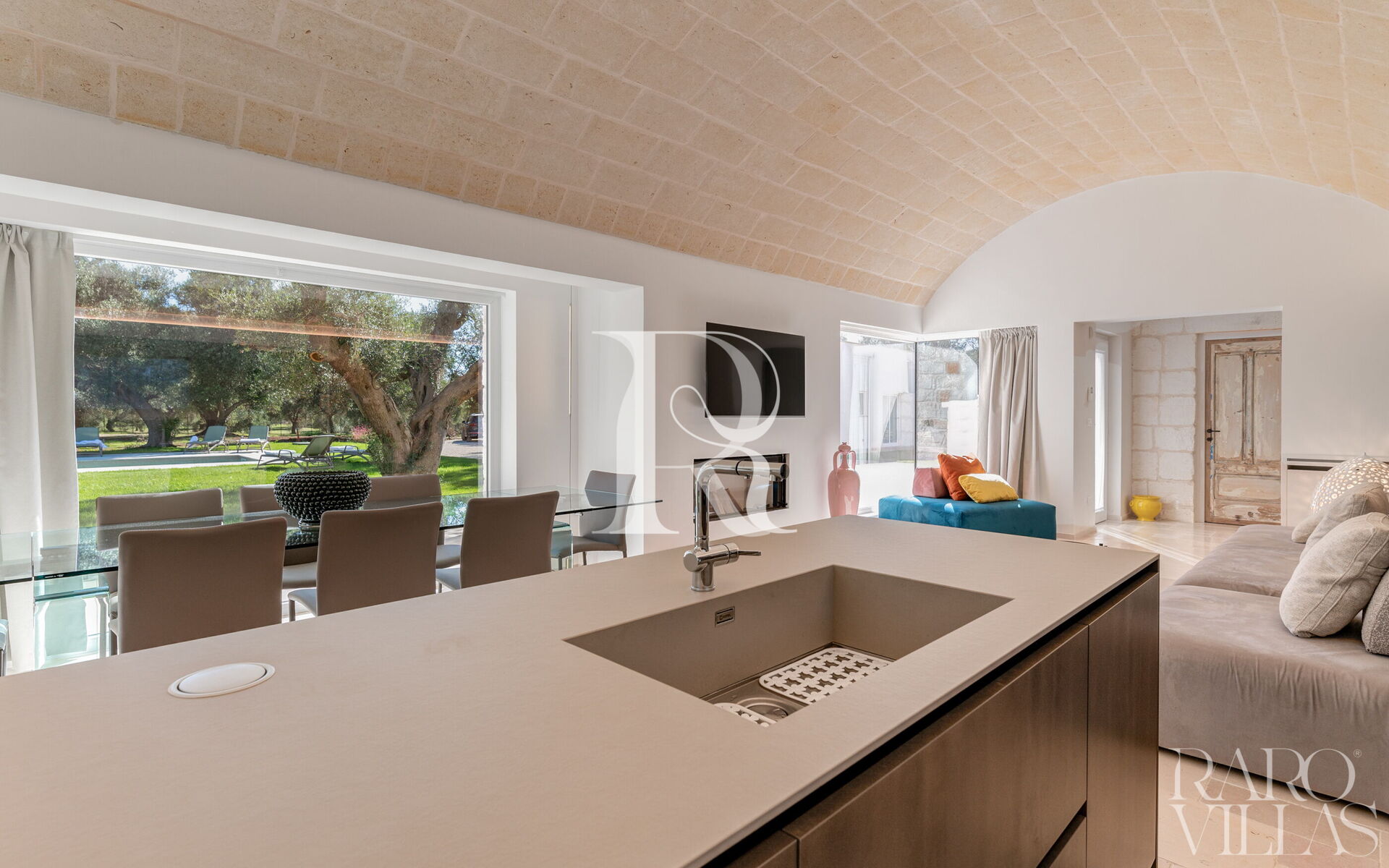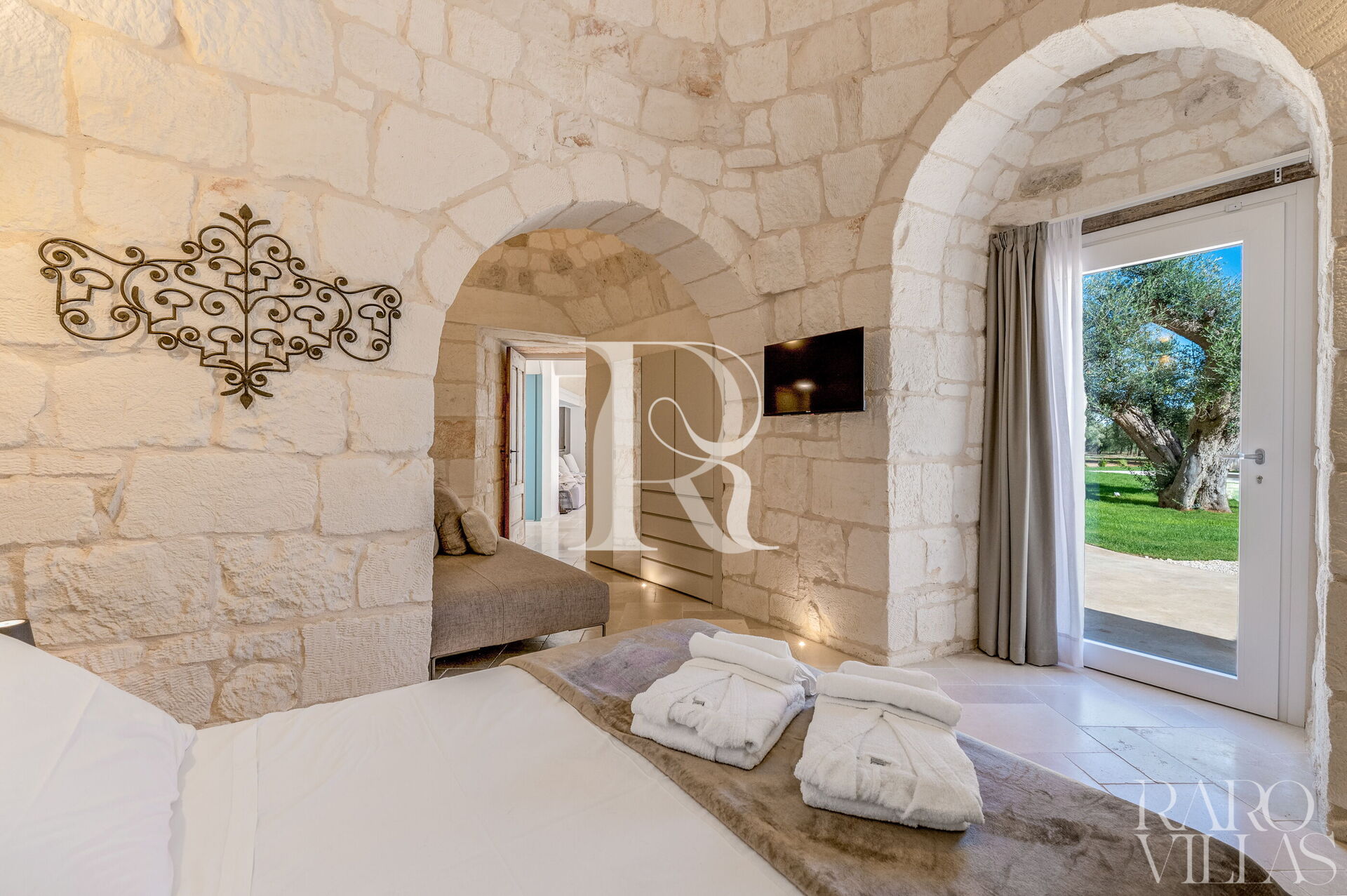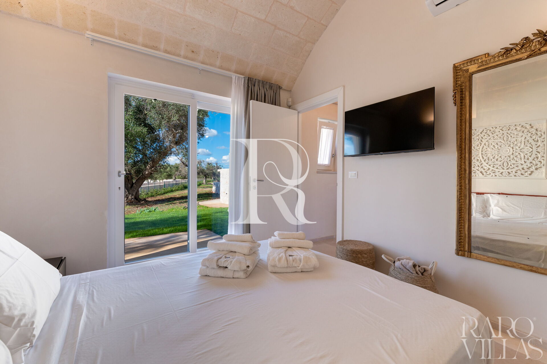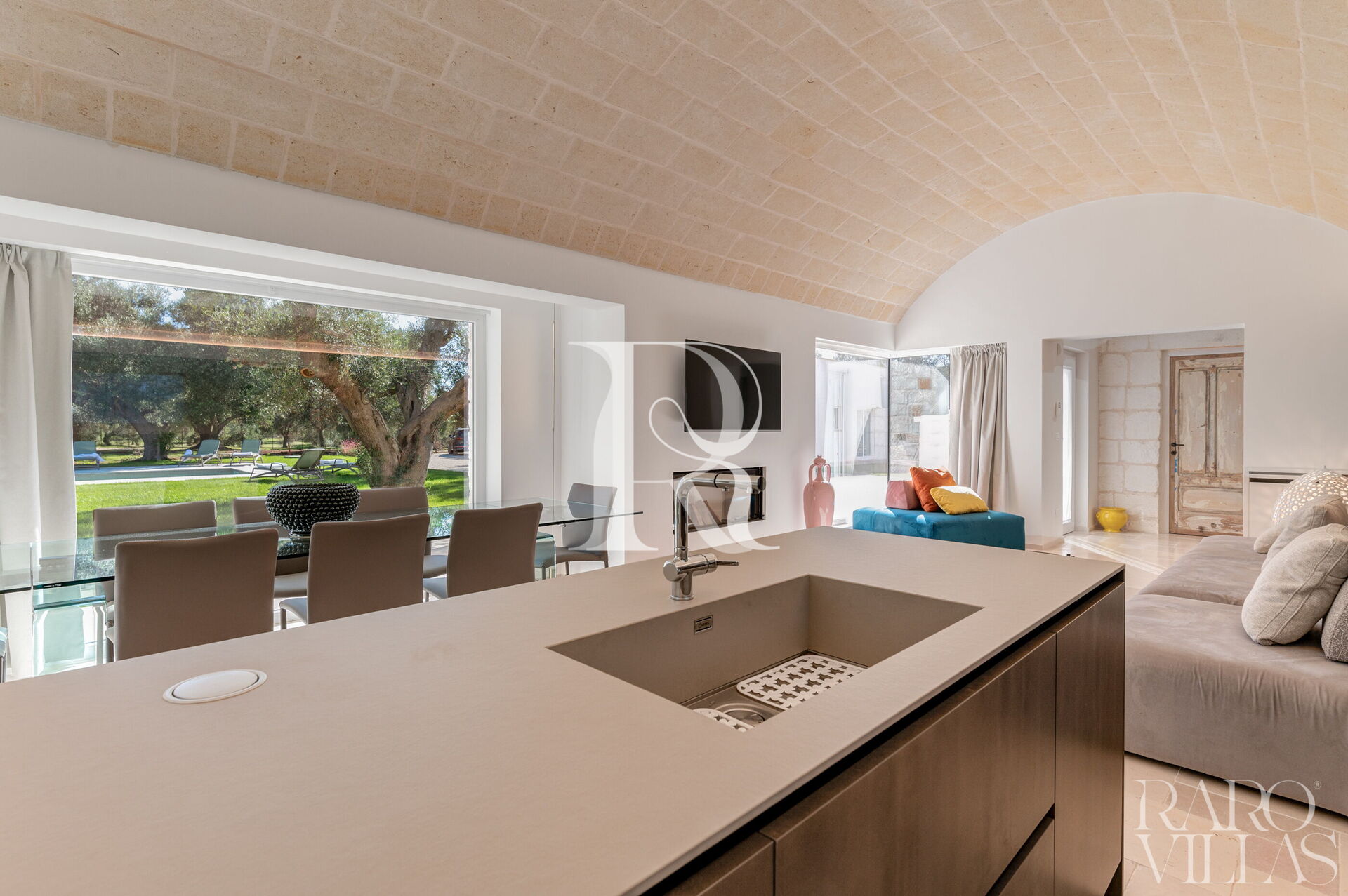 - Piscina privata: circondata da lettini prendisole, perfetta per rilassarsi sotto il sole pugliese.