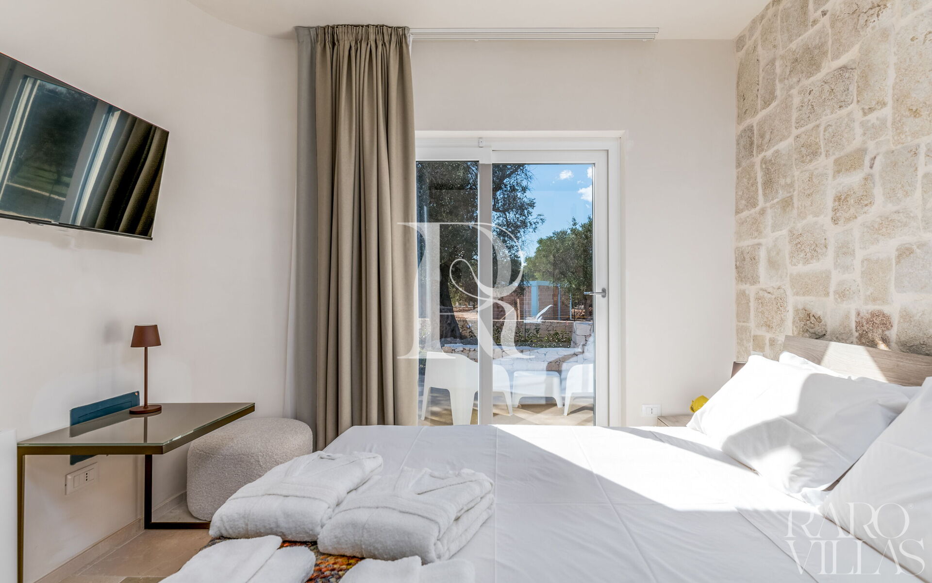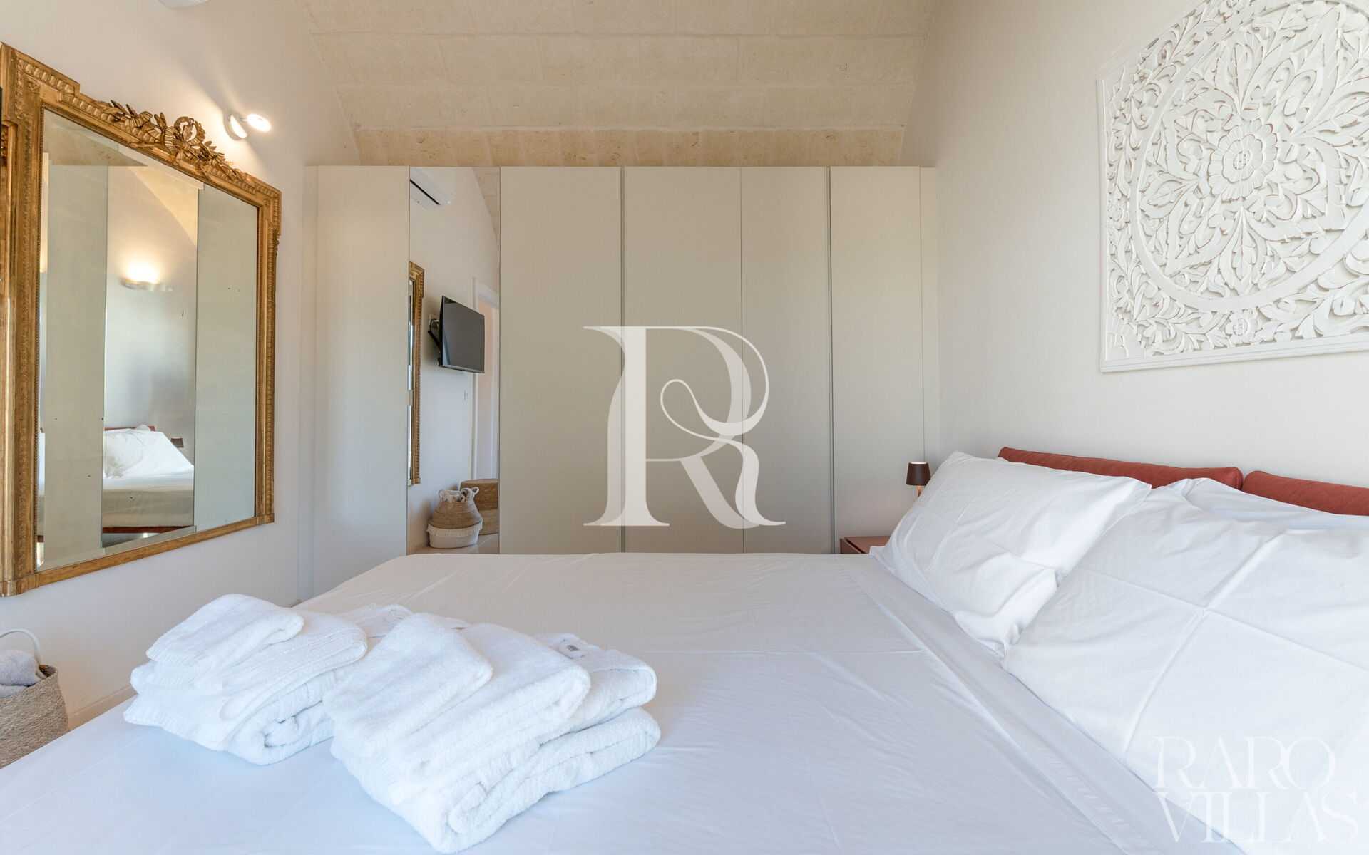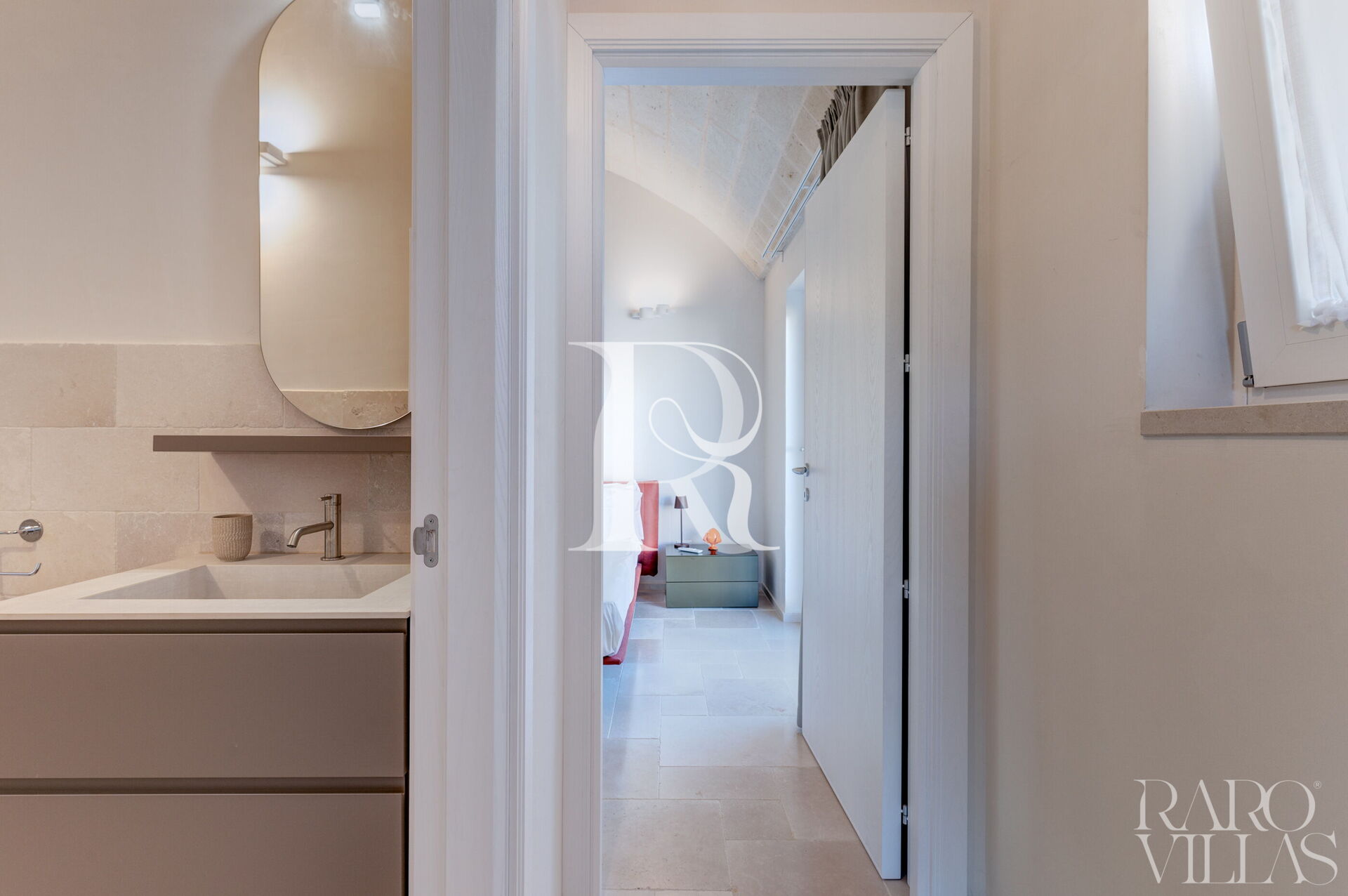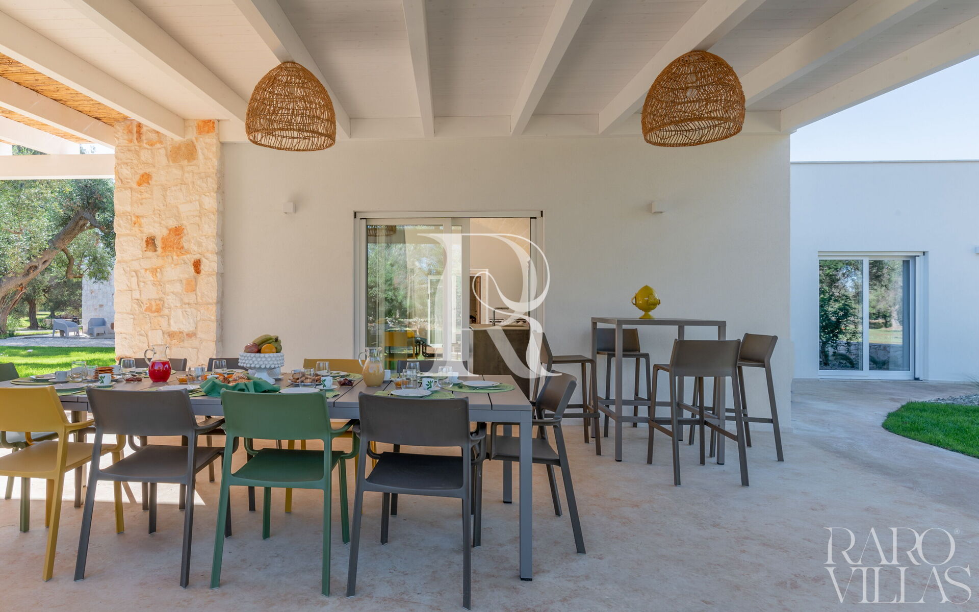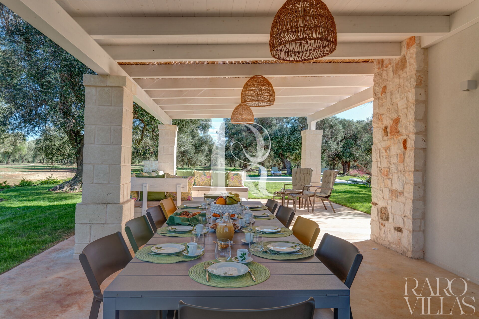 - Piscina privata: circondata da lettini prendisole, perfetta per rilassarsi sotto il sole pugliese.