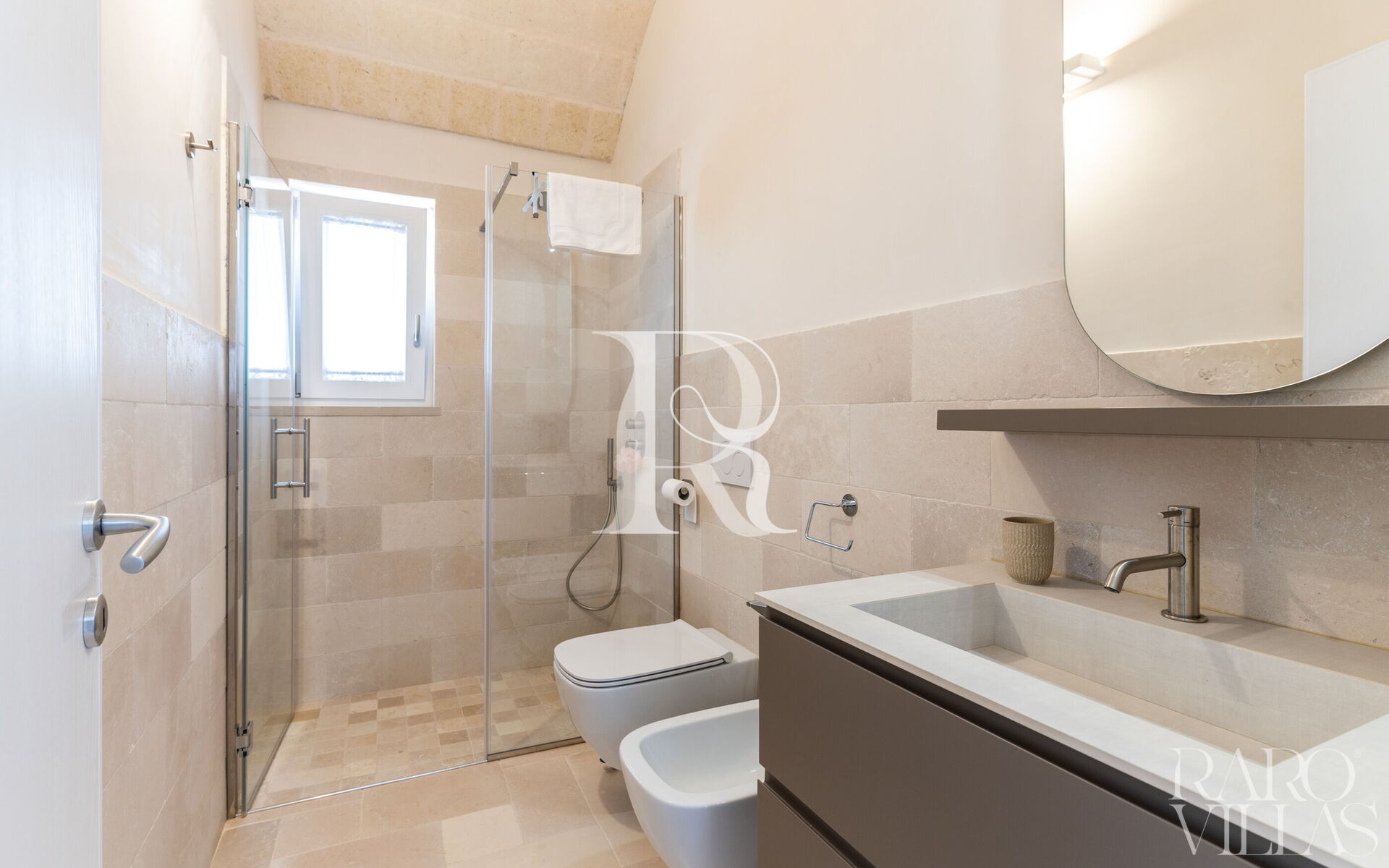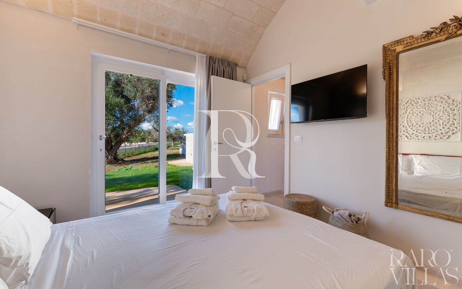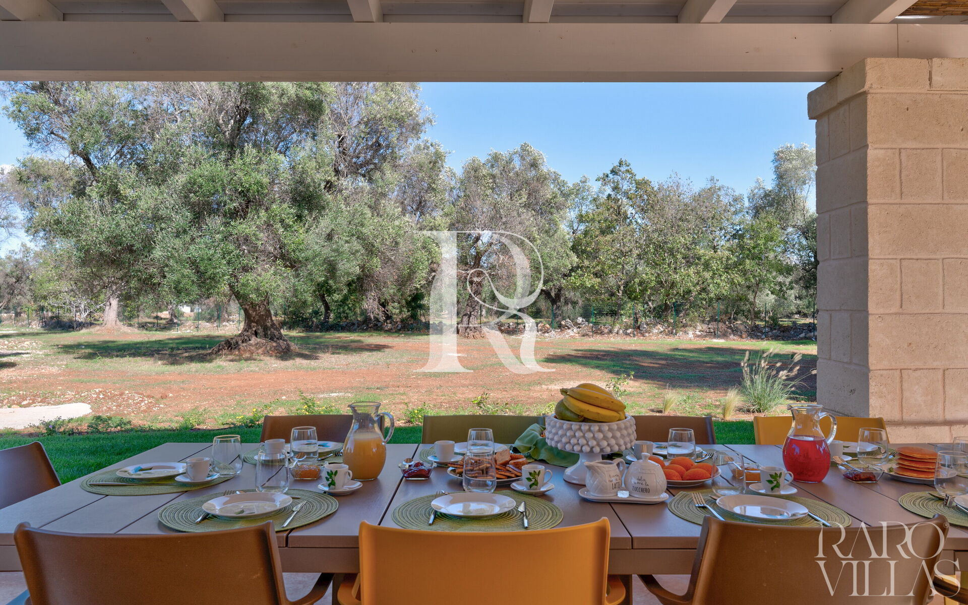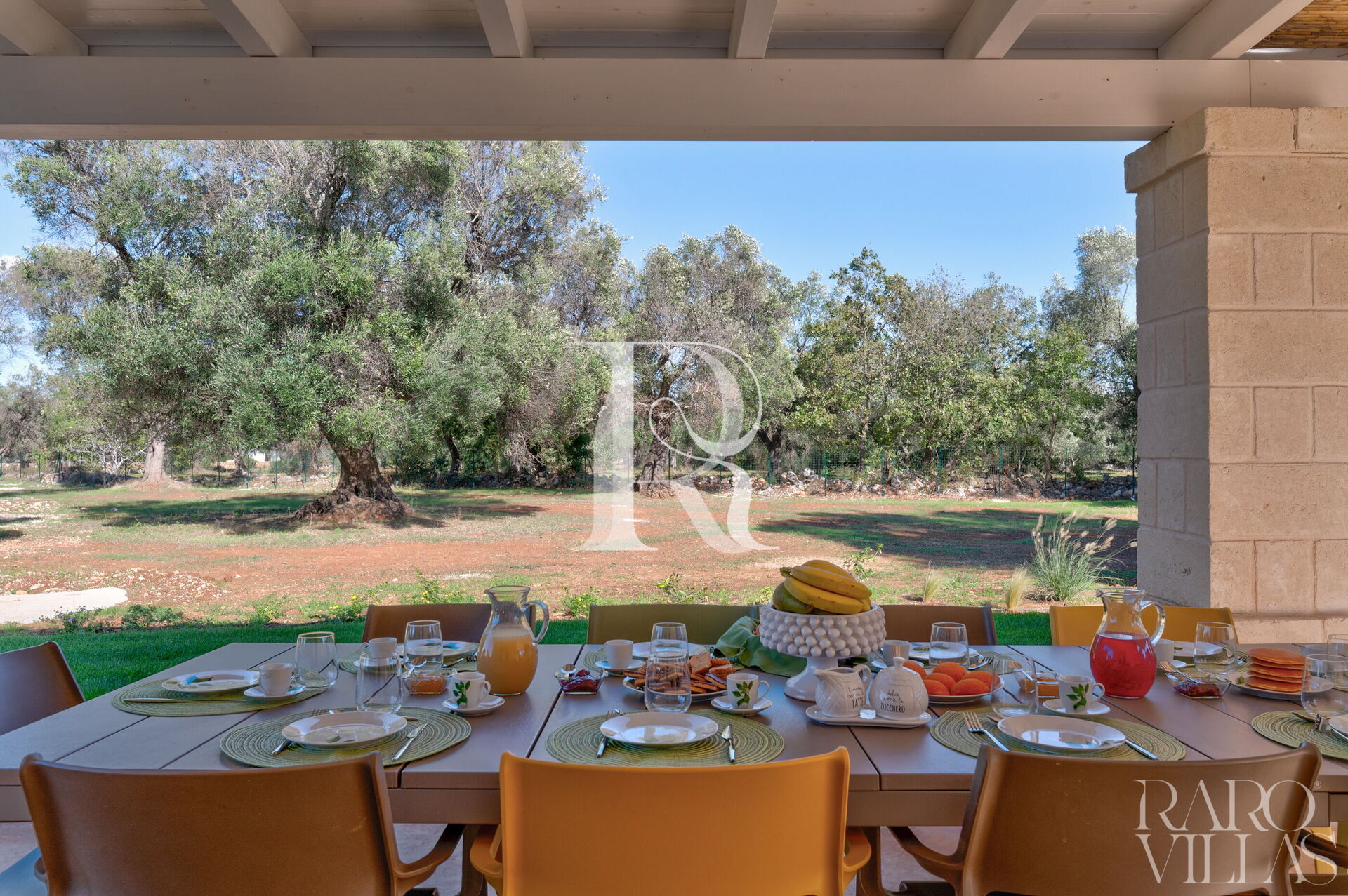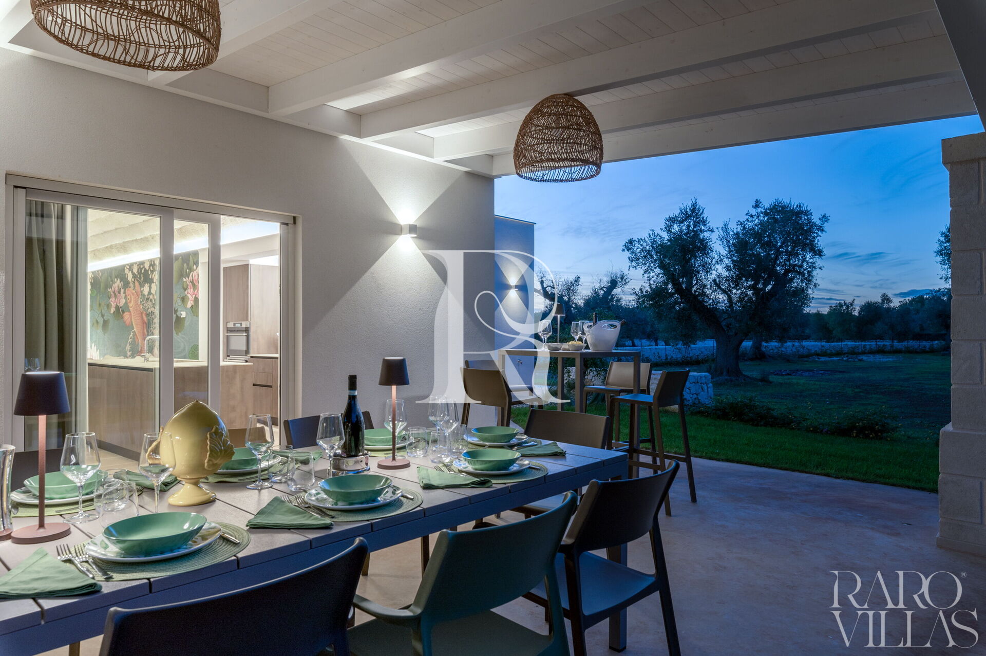 - Piscina privata: circondata da lettini prendisole, perfetta per rilassarsi sotto il sole pugliese.