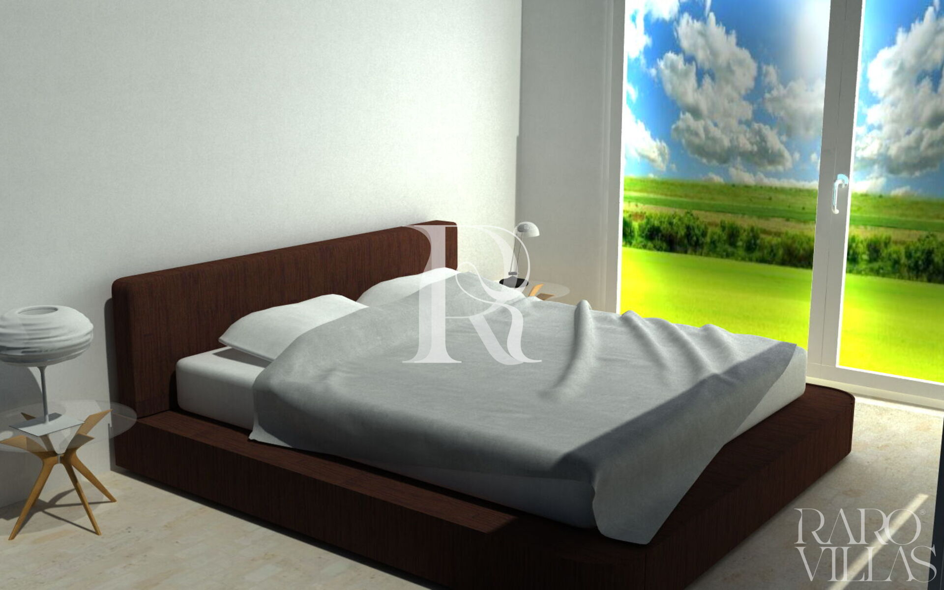 Camera da letto con bagno 2 (22.2 m2): aria condizionata, bidet, doccia, internet WIFI, lavandino, letto matrimoniale (larghezza: 1.6m, lunghezza: 1.9m), uscita sul giardino, wc, zanzariere.