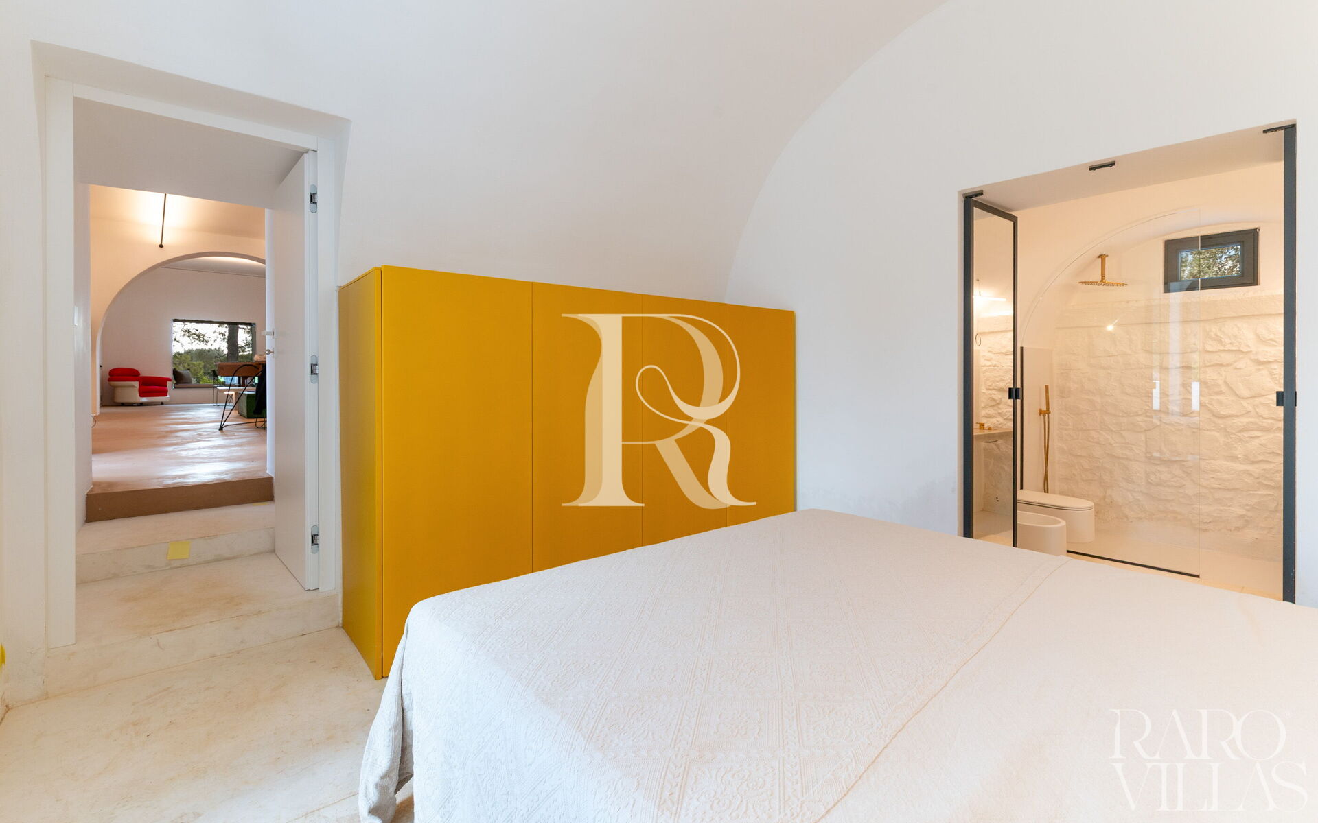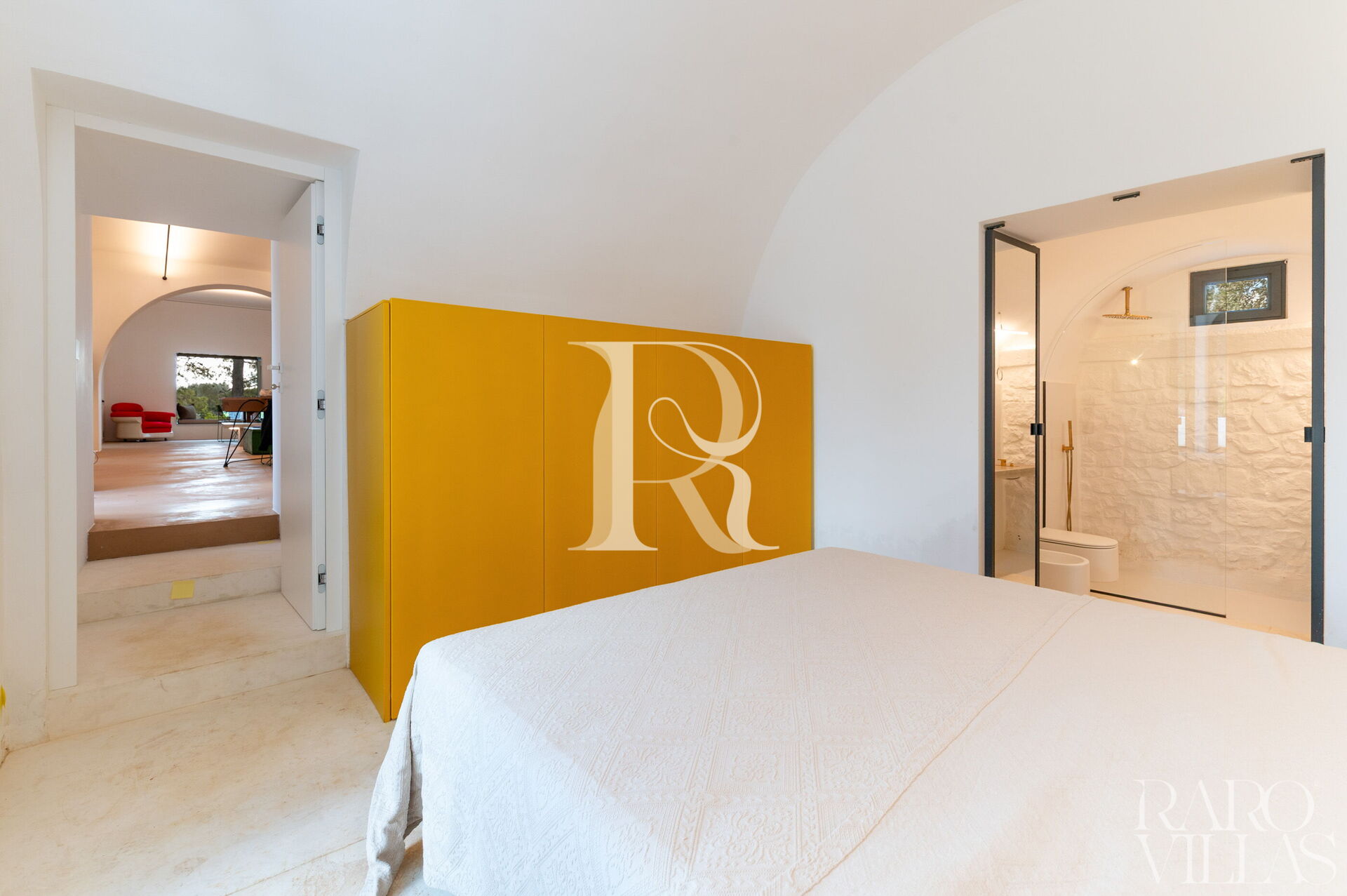 La villa è progettata per garantire il massimo comfort e privacy:Camera da Letto con Bagno Privato 1: Un lussuoso letto matrimoniale (1,8 m x 2 m), con uscita diretta sul giardino. Il bagno privato include bidet e doccia.