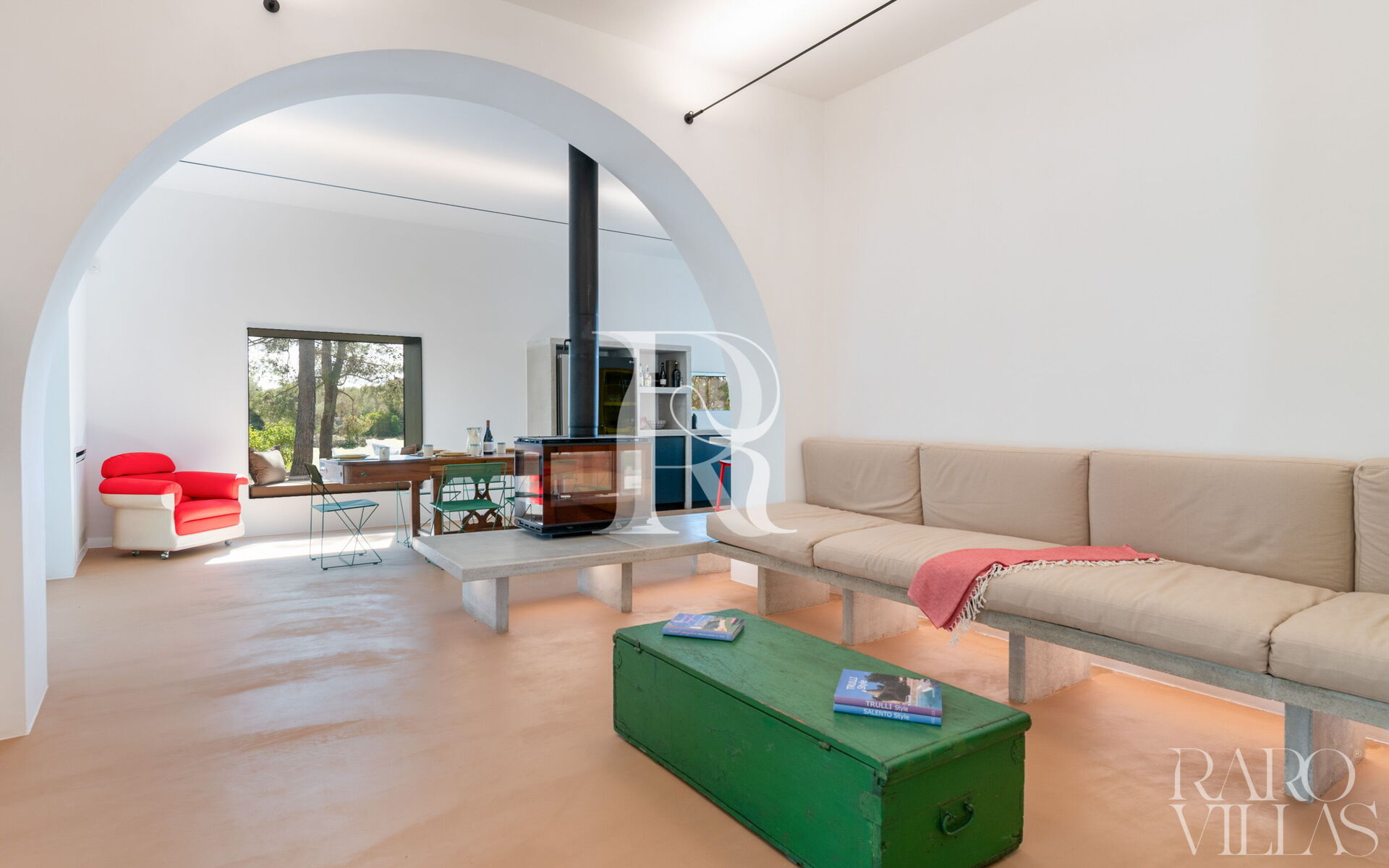 Il cuore della casa è lo spazioso soggiorno e cucina a pianta aperta, uno spazio conviviale perfetto per la vita di gruppo. Qui troverete una TV, un comodo divano per 6 persone e un tavolo da pranzo per 8. La cucina è completamente attrezzata con piano cottura, forno, macchina da caffè italiana e microonde.Un ripostiglio separato è dotato di lavatrice e ferro da stiro. L'intera villa dispone di aria condizionata e connessione Wi-Fi.