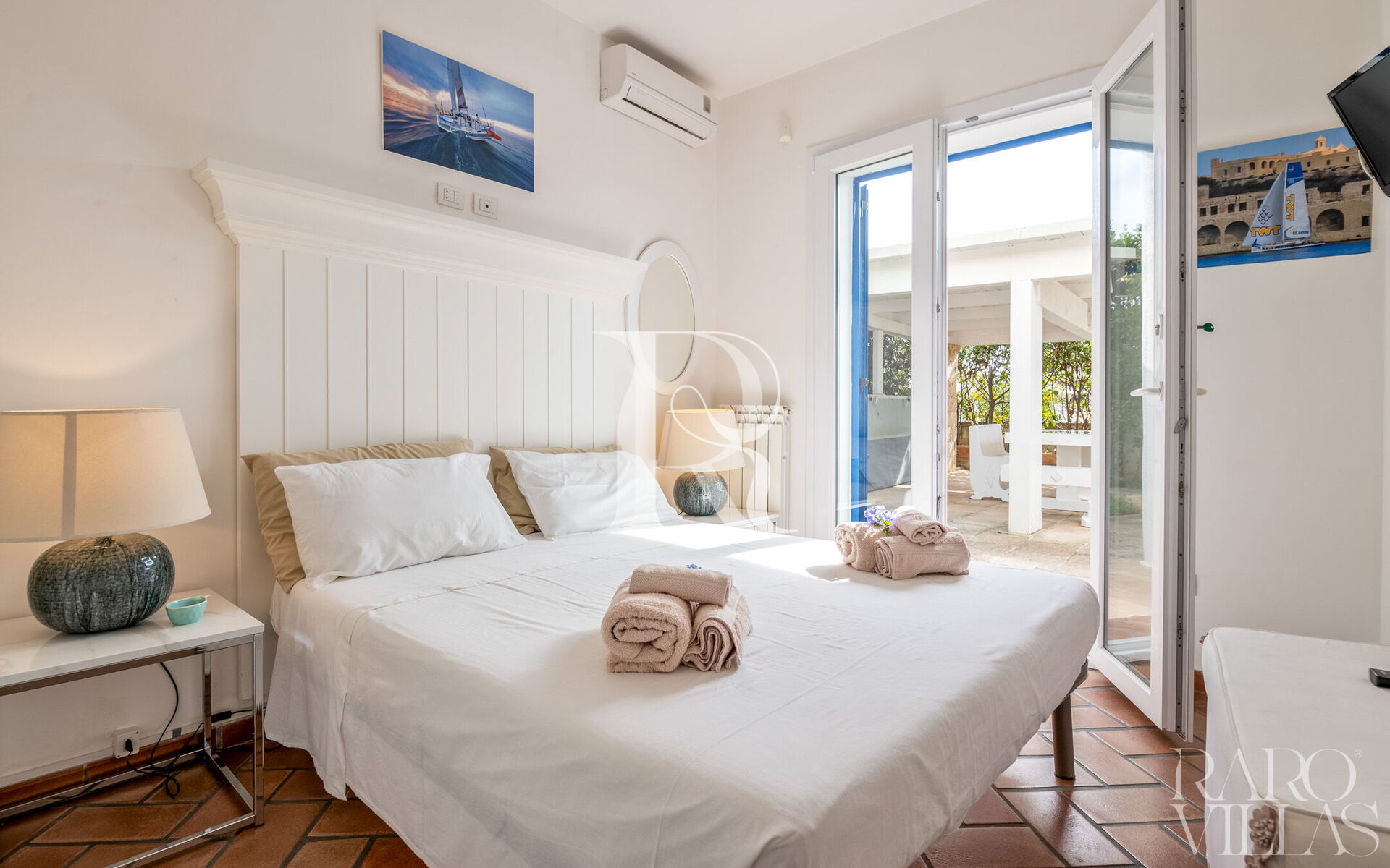 Il giardino è un’oasi di verde, arricchito da palme e vegetazione mediterranea che creano un’atmosfera tranquilla e riservata. Ti regala inoltre viste spettacolari sul mare e sui dintorni, rendendola ideale per aperitivi al tramonto o momenti di relax serale sotto le stelle.